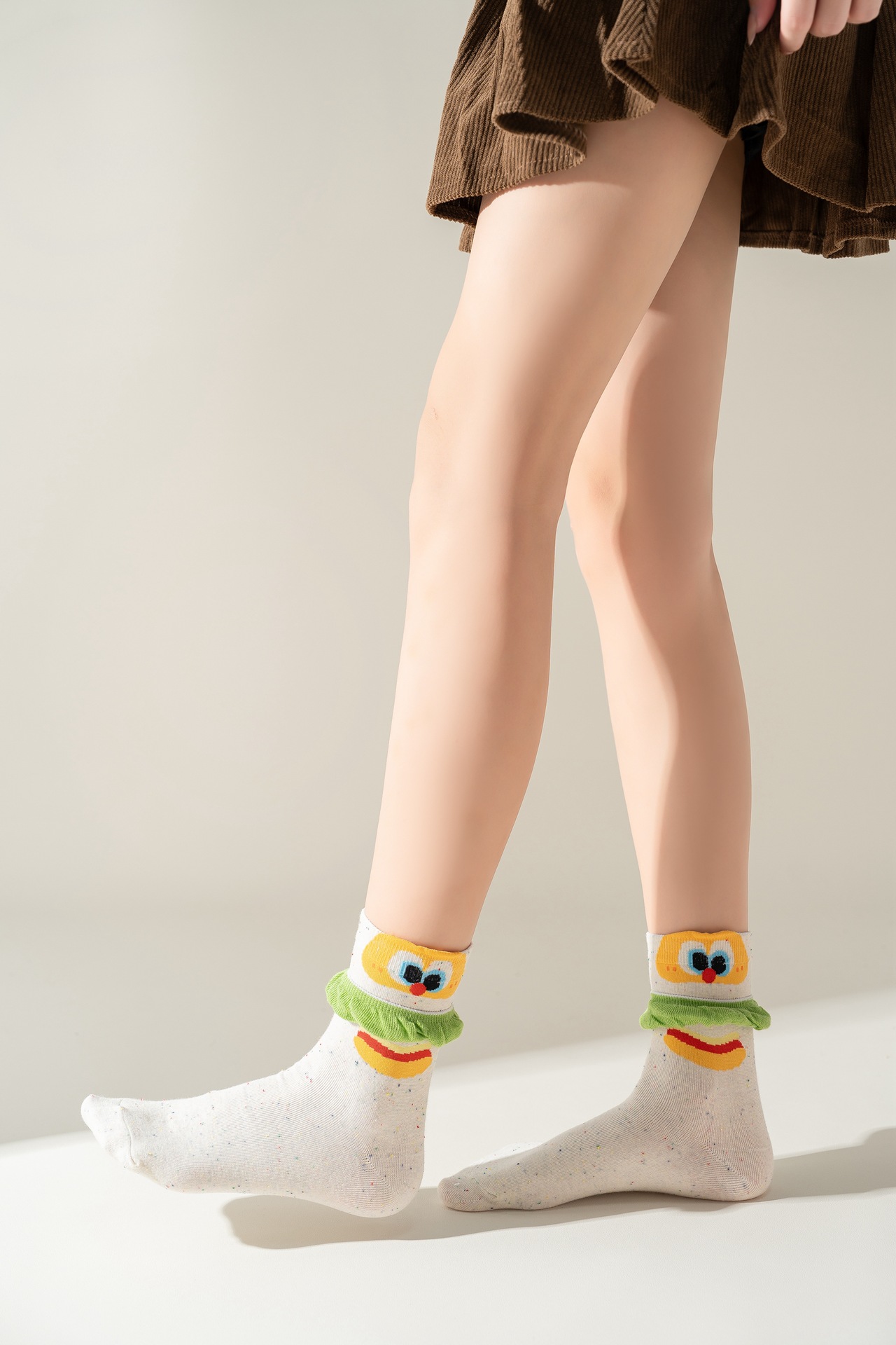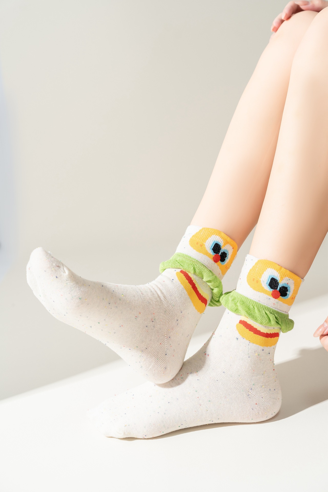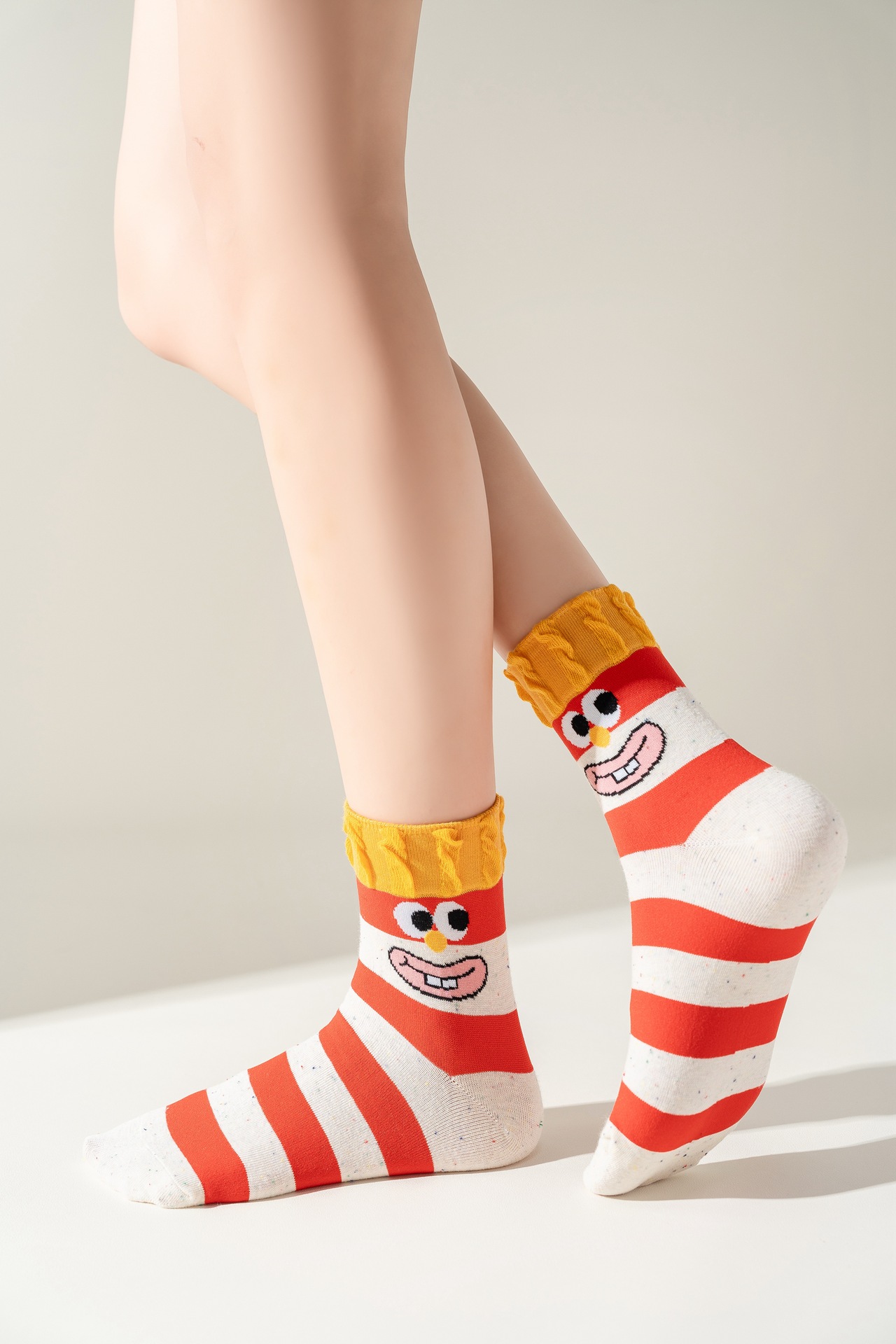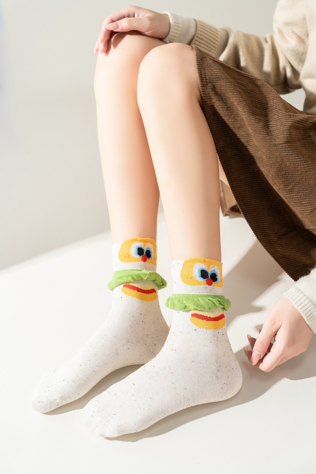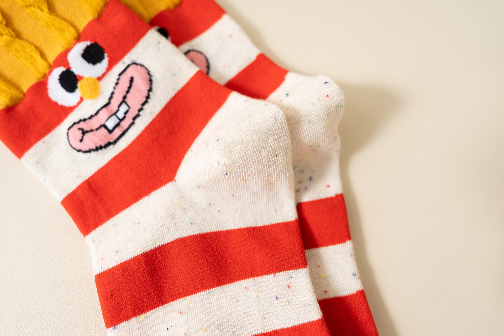 프랑스 프라이 양말 여성의 봄과 가을 귀여운 만화 코튼 중간 길이의 양말 재미 유행 디자인 센스 니쉬 스타킹