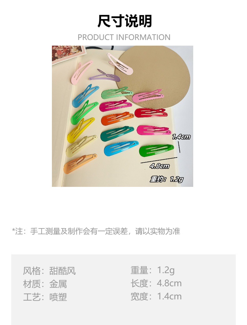 컬러 베이킹 페인트 더 밝은 BB 클립 어린이 헤어 클립 드롭 클립 DIY 뱅이 클립 캔디 컬러 메탈 헤드웨어 헤어 액세서리