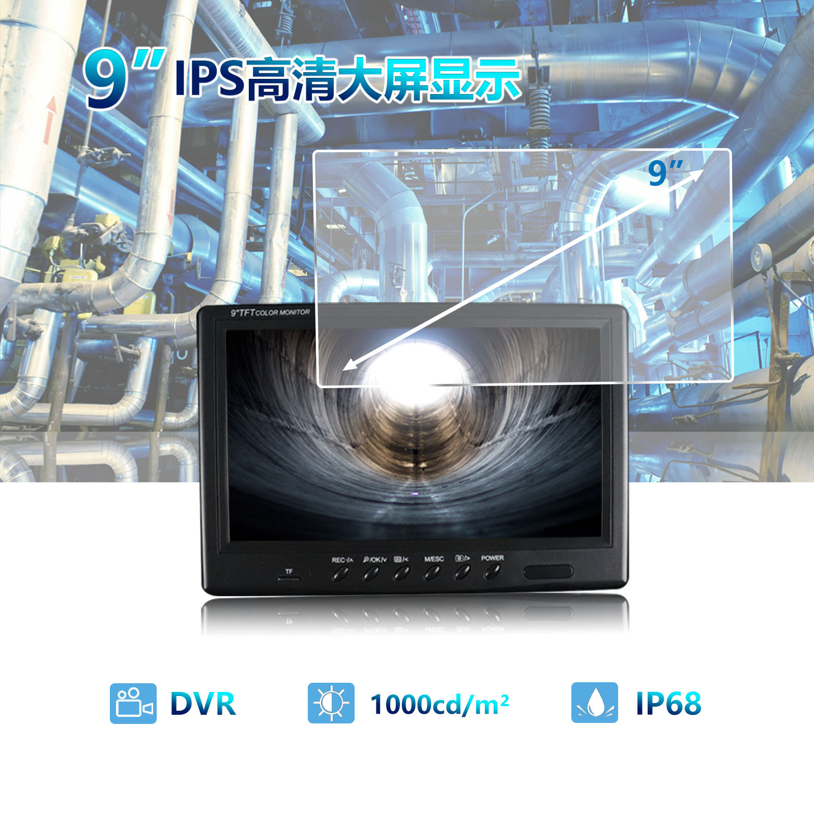 국경을 넘는 인기 상품 9inch 산업용 내시경 고화질 산업용 등급 파이프라인 내시경 산업용 하수관 검사기
