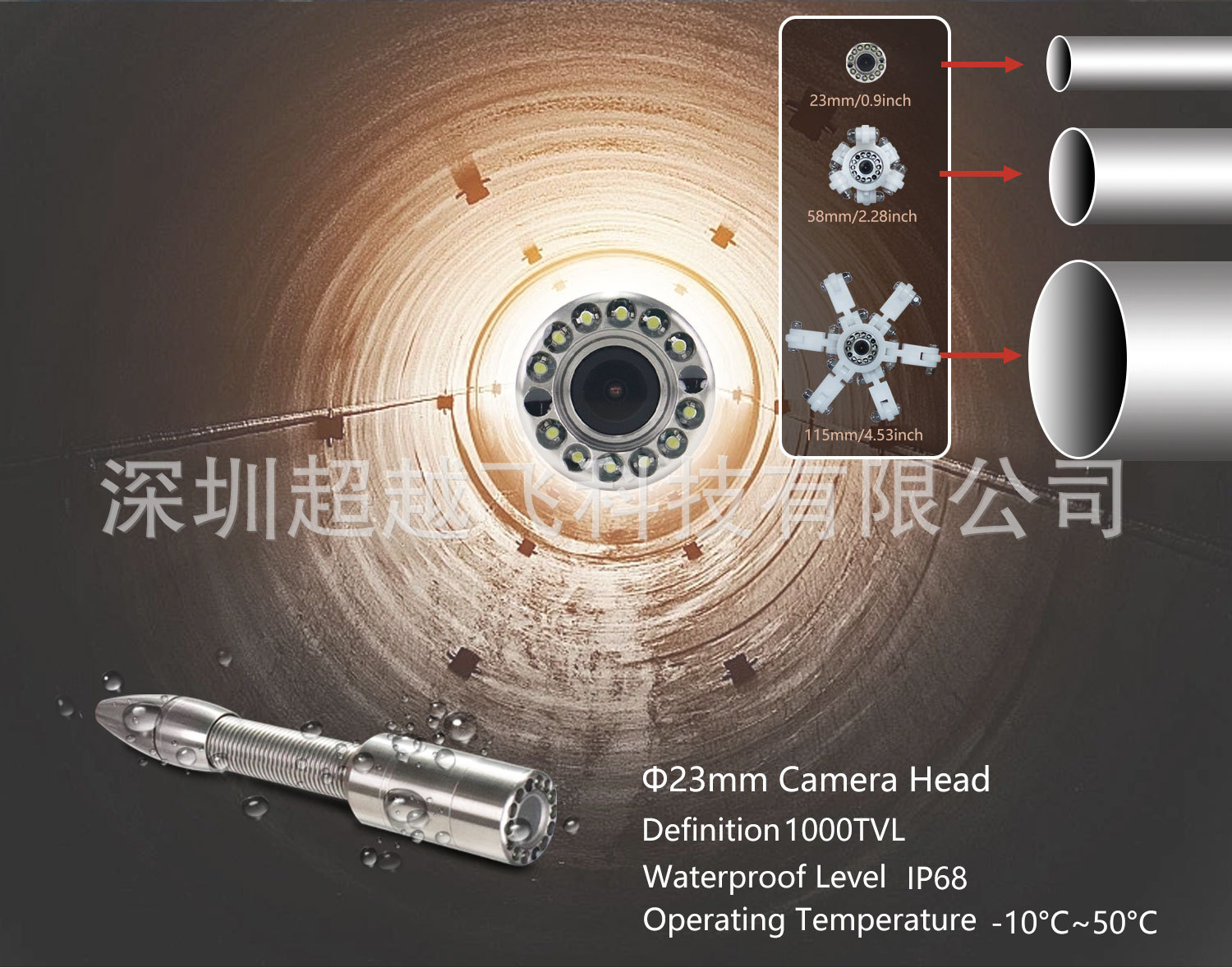 摄像头尺寸 : 直径:23毫米,长:120毫米, 像头长: 45毫米,