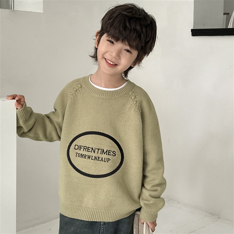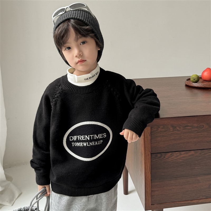 2025년 신상 남아 패션 아동복 겨울용 이너웨어 스웨터 라운드넥 풀오버 니트 한국 스타일 아동용스토어 가기