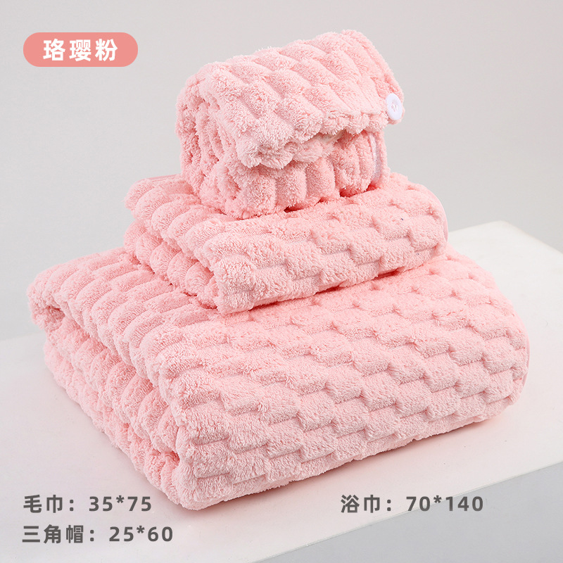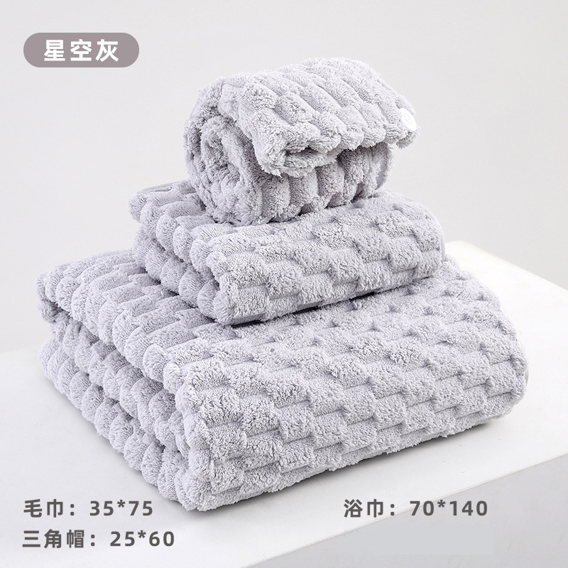 슬럽 양털 대형 목욕 타월 흡수 빠른 건조 비치 타월 가정용 프랑스 스타일 퍼프 산호 양털 포장 타월 뷰티 살롱 3 피스 세트