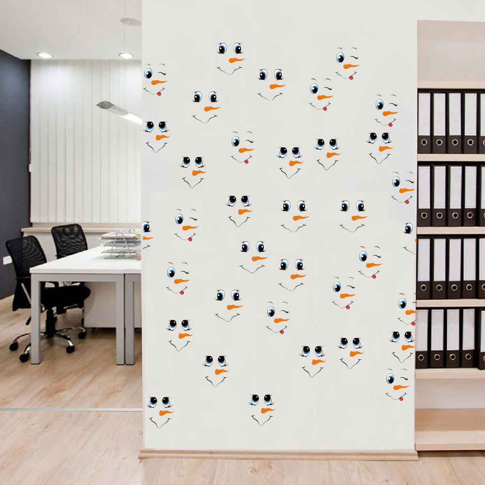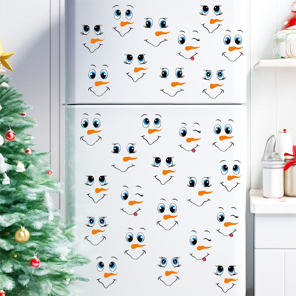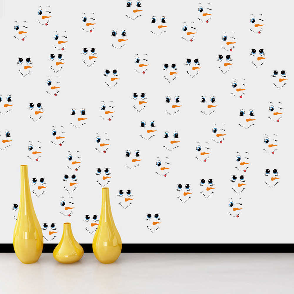 국경 간 만화 크리스마스 벽 스티커 눈사람 표현 스티커 냉장고 스티커 DIY 눈송이 창 스티커 벽 장식 벽 스티커