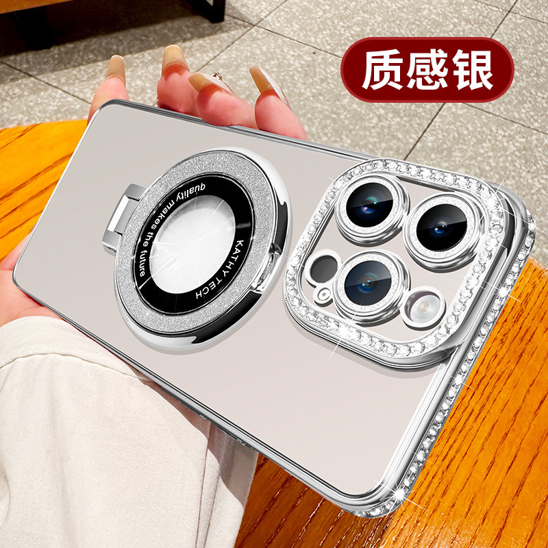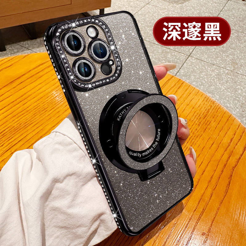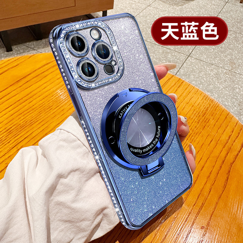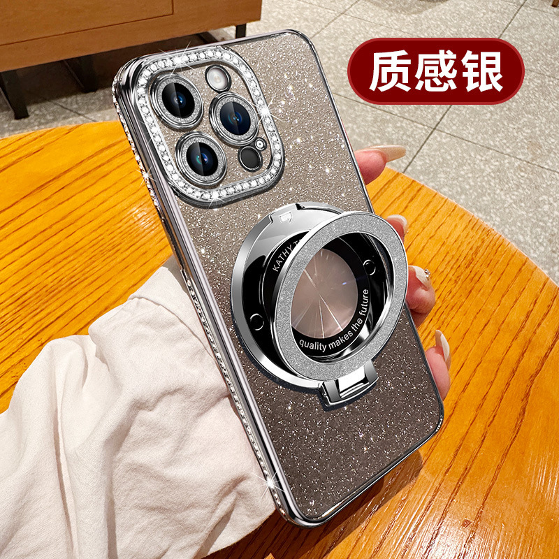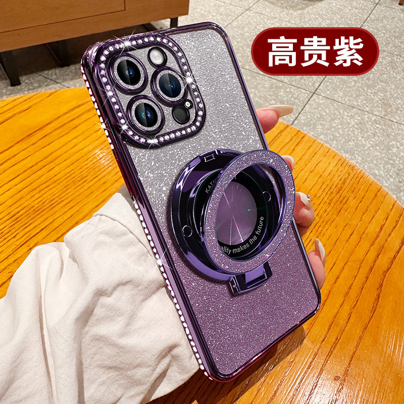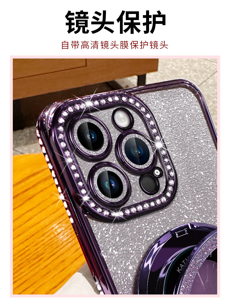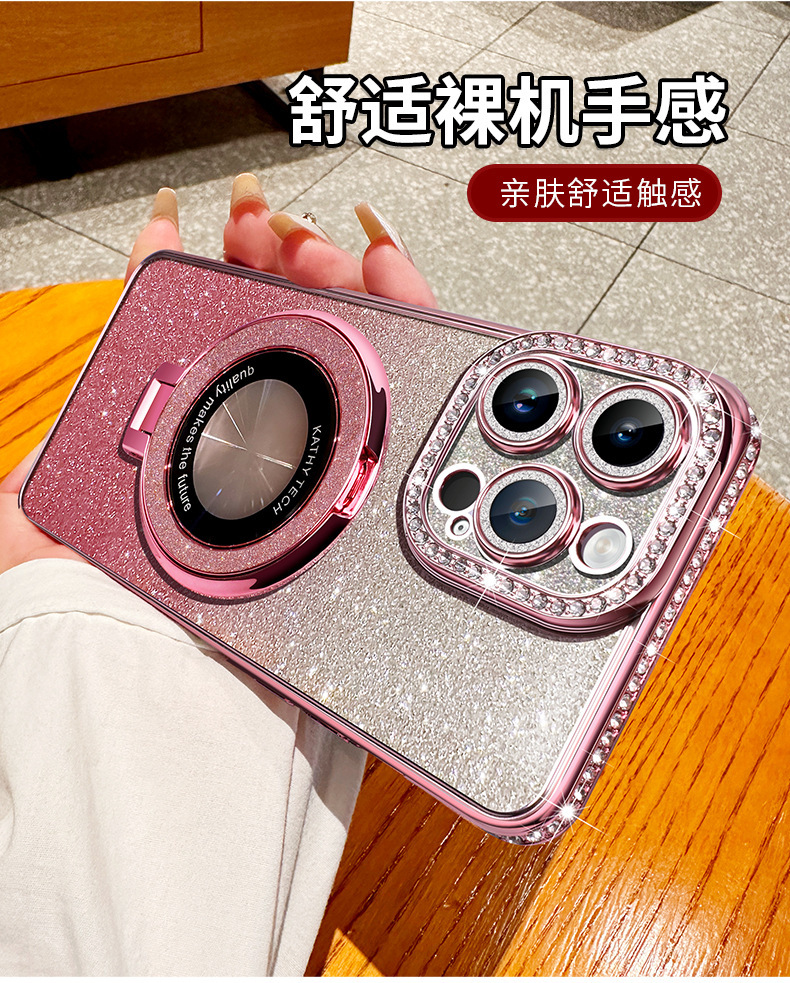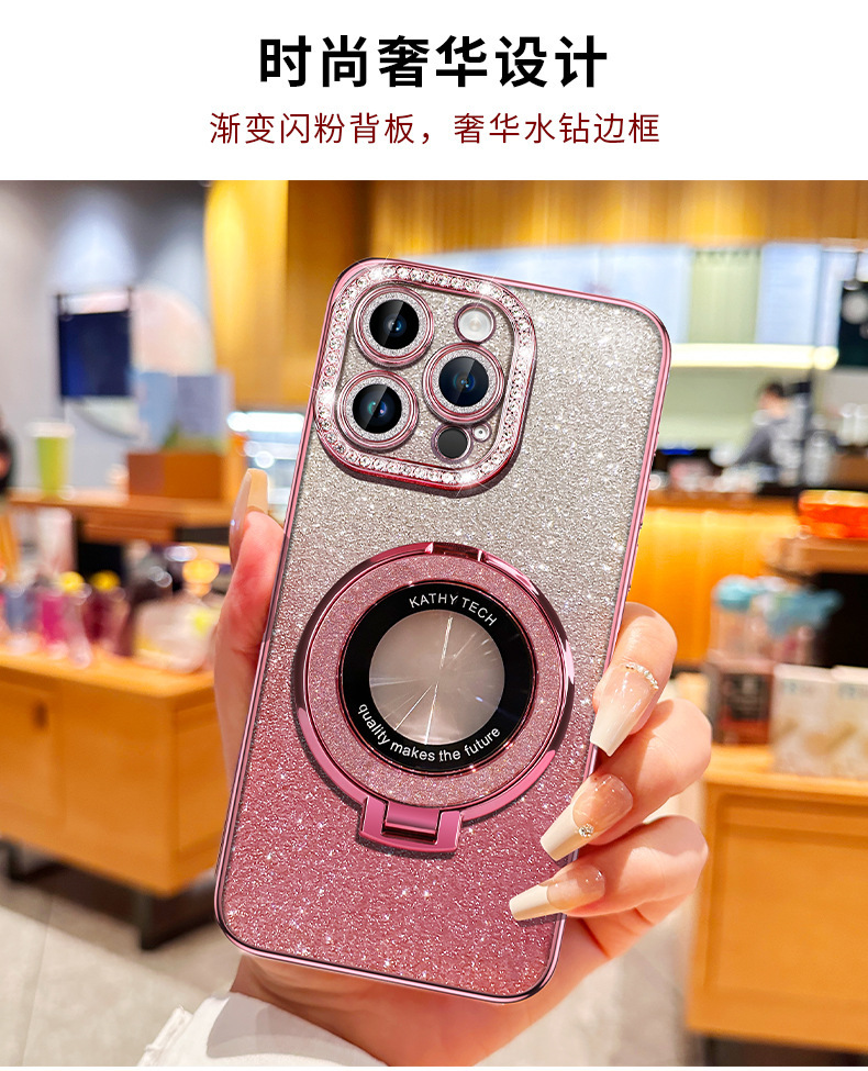 适用iPhone16边排水钻电镀手机壳苹果15pro渐变闪粉透明防摔套女