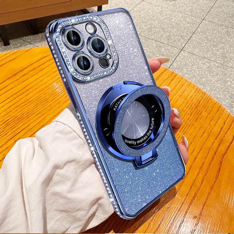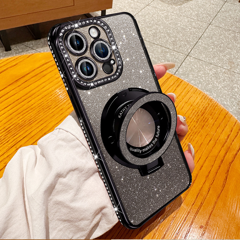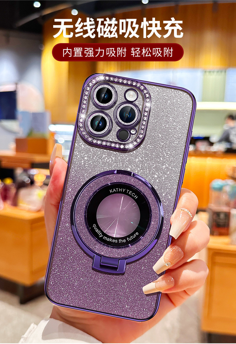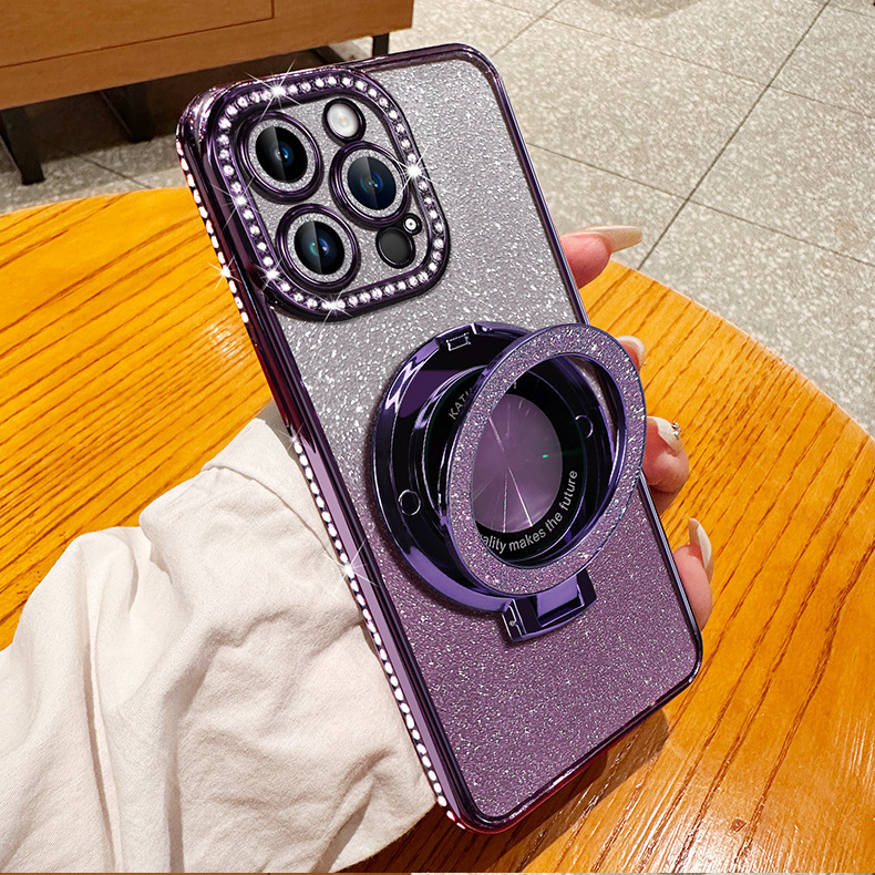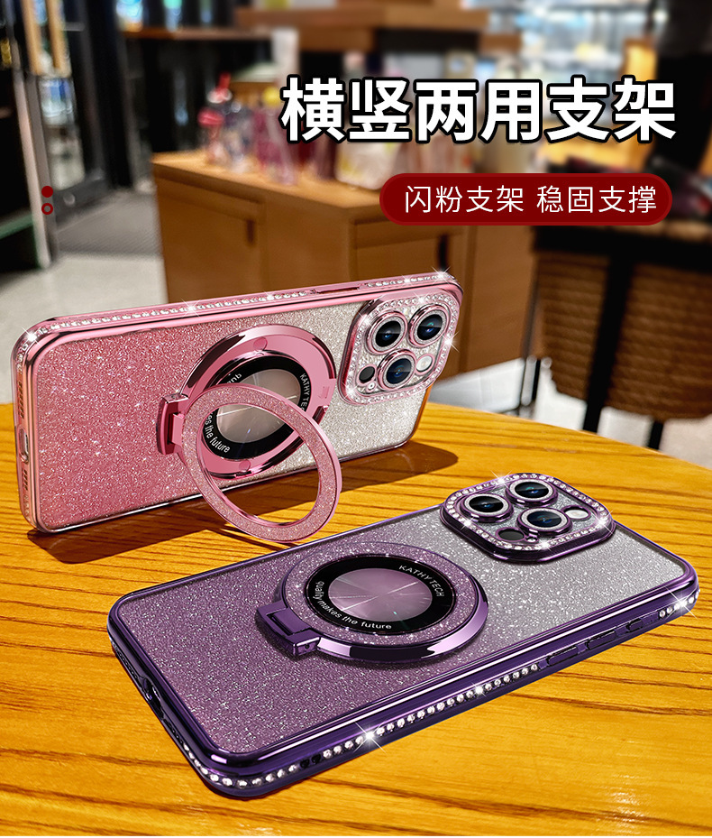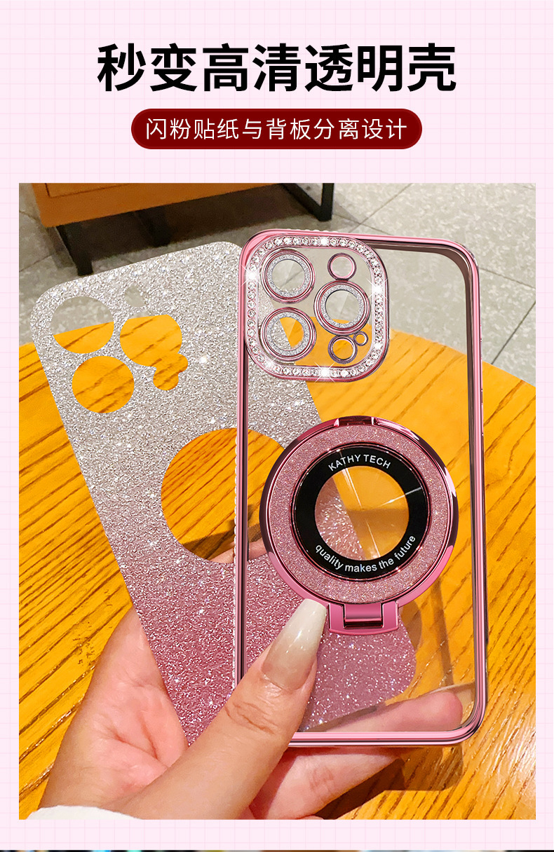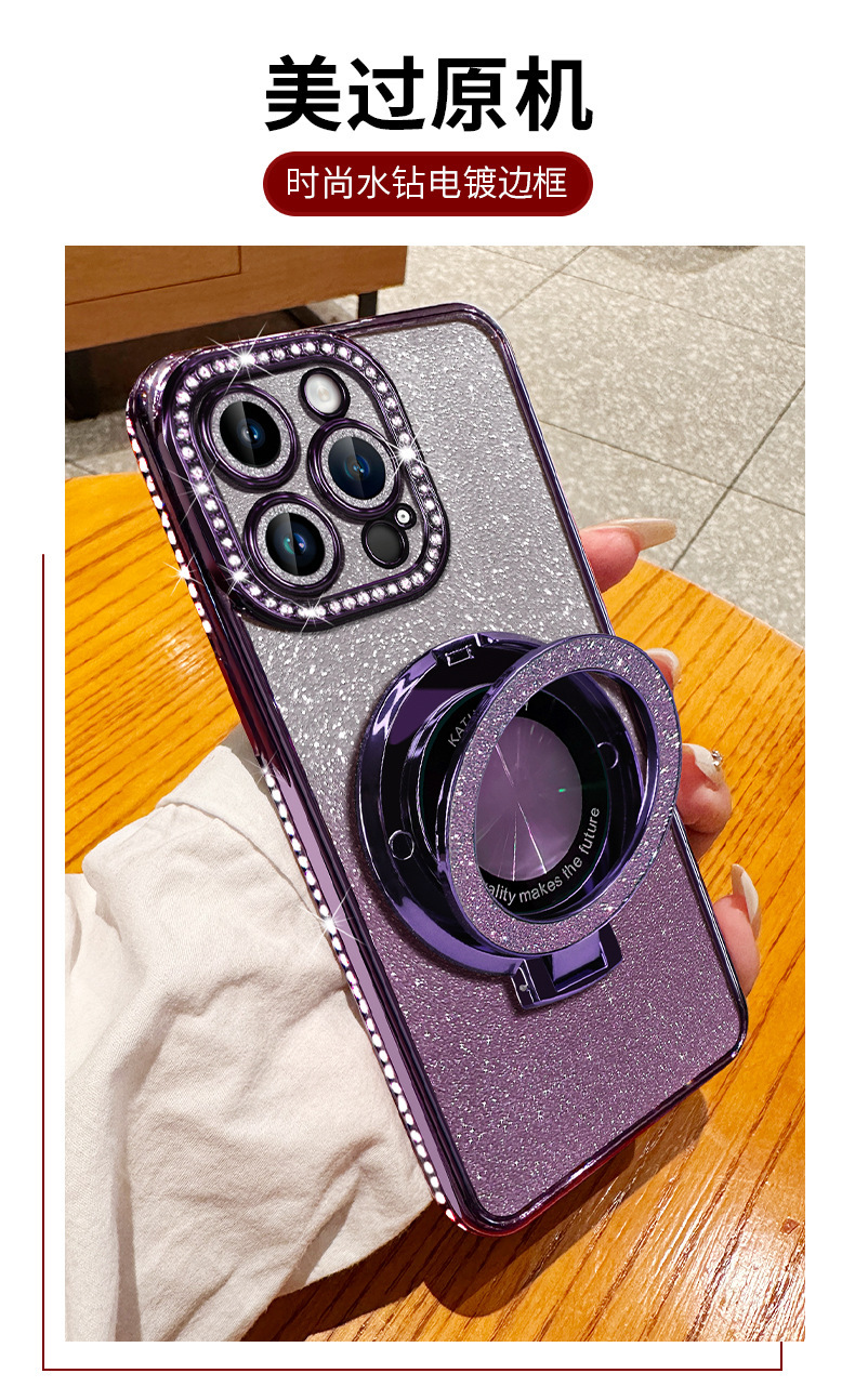 Iphone16 전화 케이스 사이드 라인 스톤 전기 도금 애플 15Pro 그라디언트 반짝이 투명 낙하 방지 케이스스토어 가기