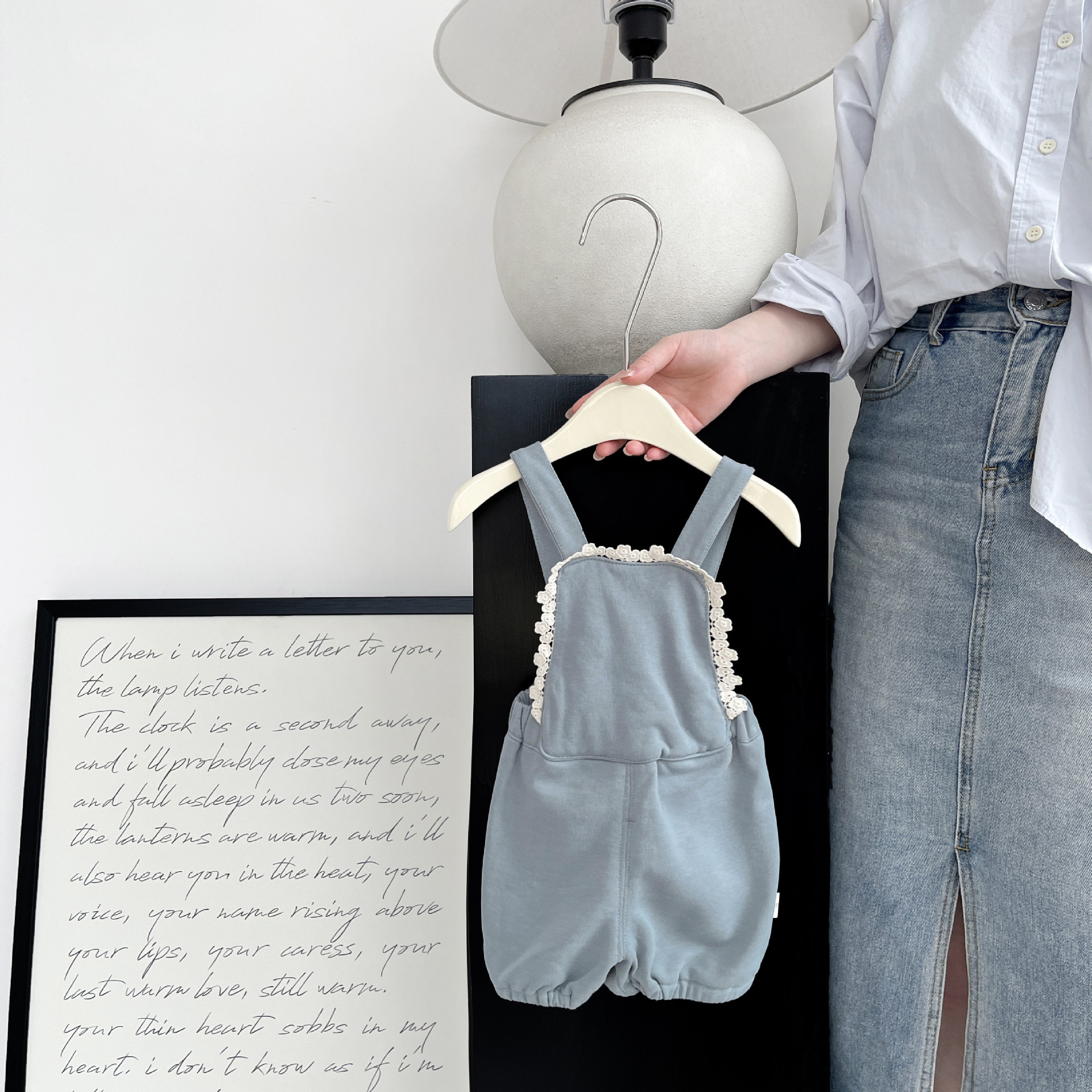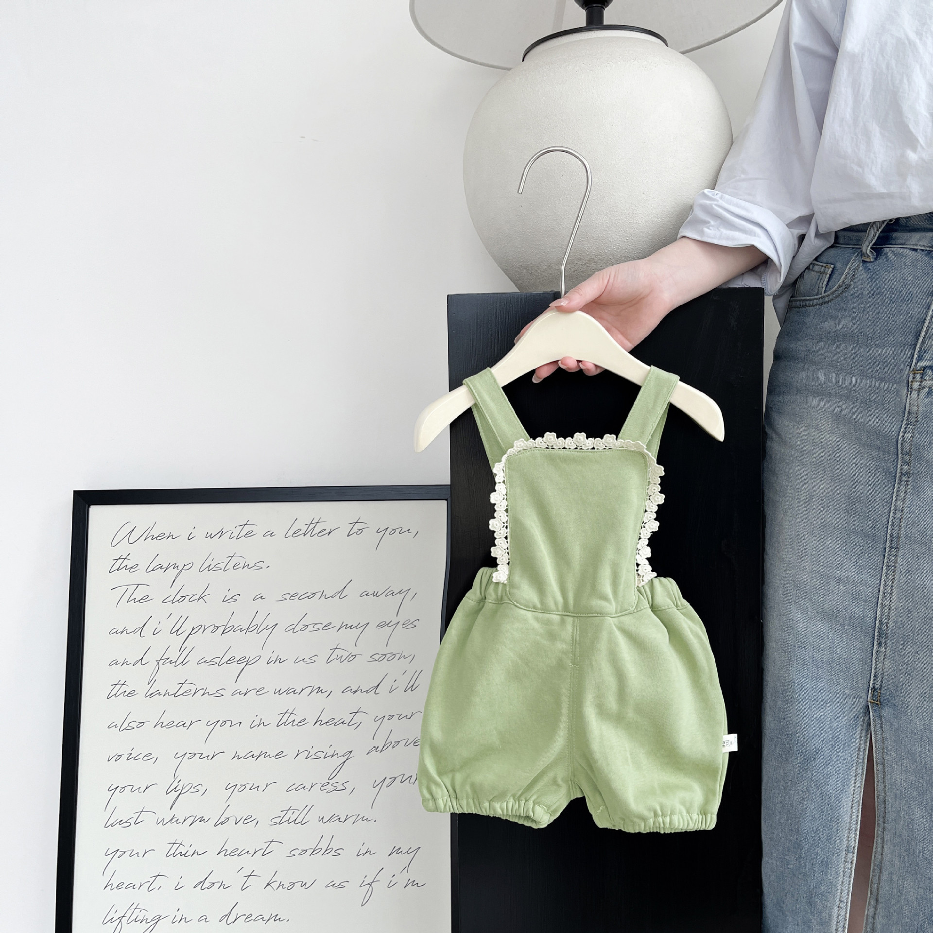 프랑스 레이스 스트랩 소녀 아기 솔리드 컬러 패션 올 매치 2024 봄과 가을을위한 세련된 바지스토어 가기