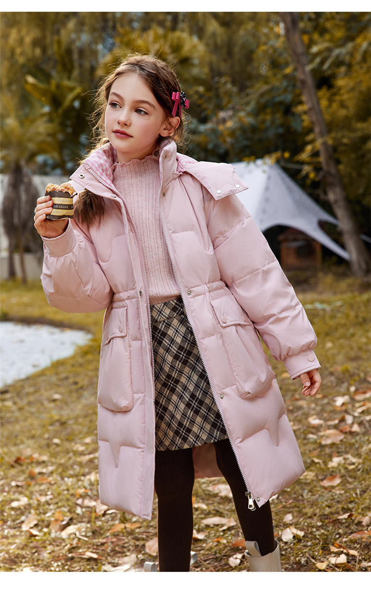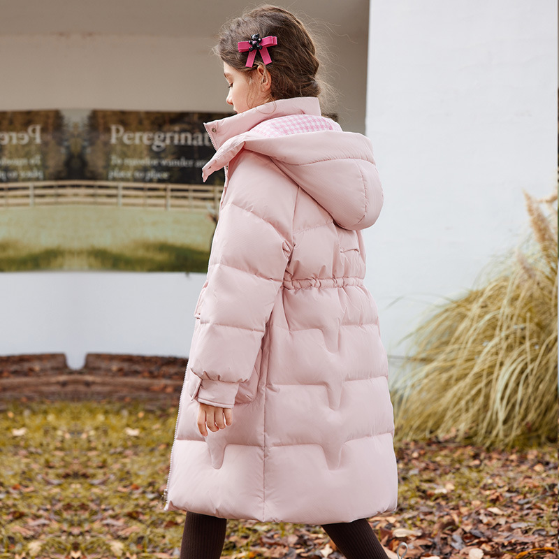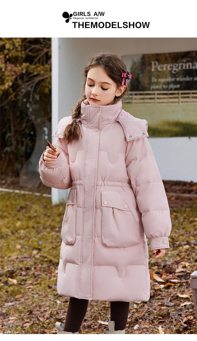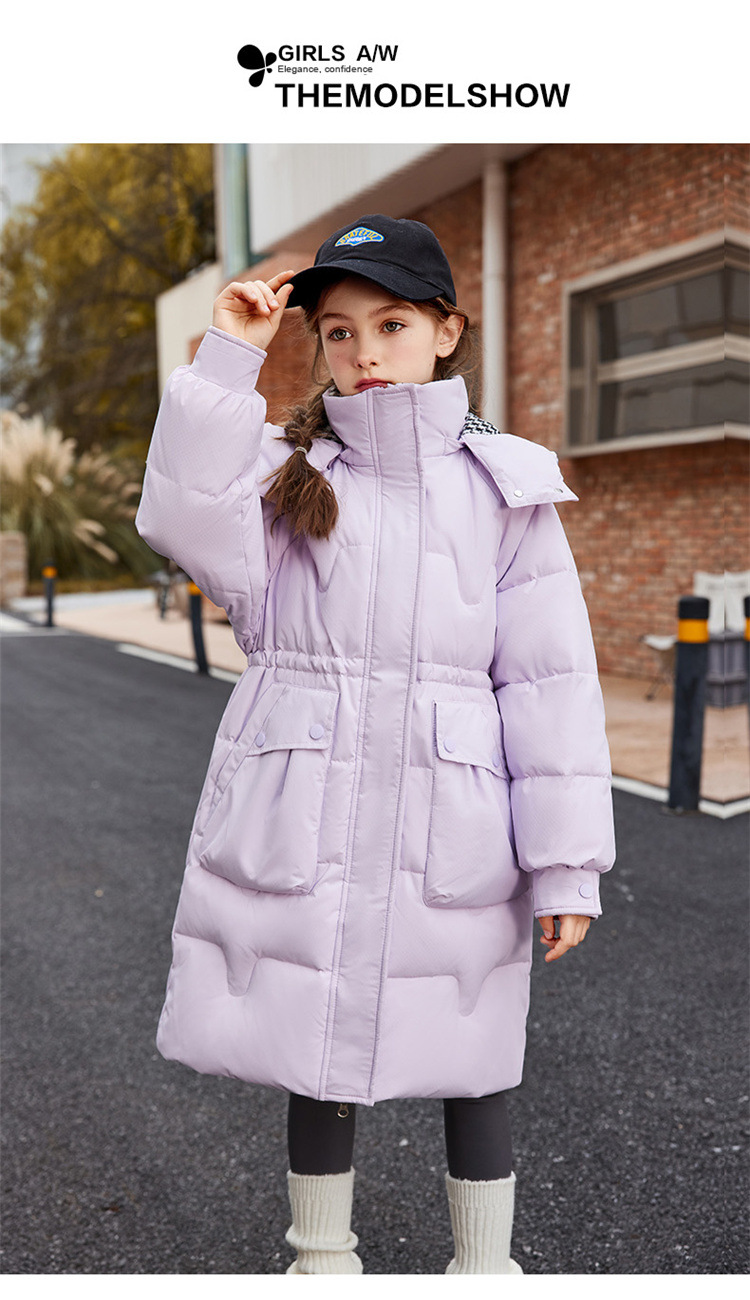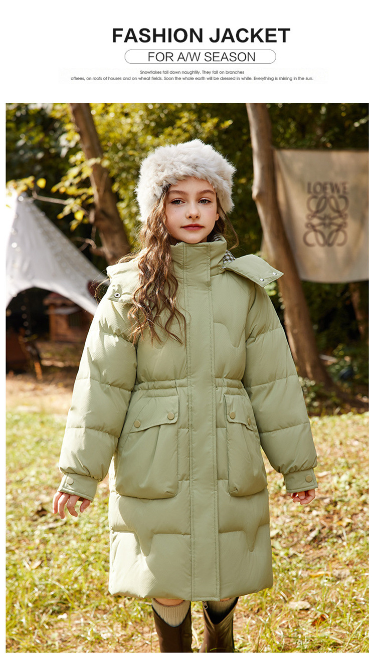 ABC 아동용 다운 재킷 여아 중간 길이 2024 새로운 스타일 화이트 오리 다운 중대형 아동용 겨울 두꺼운 재킷