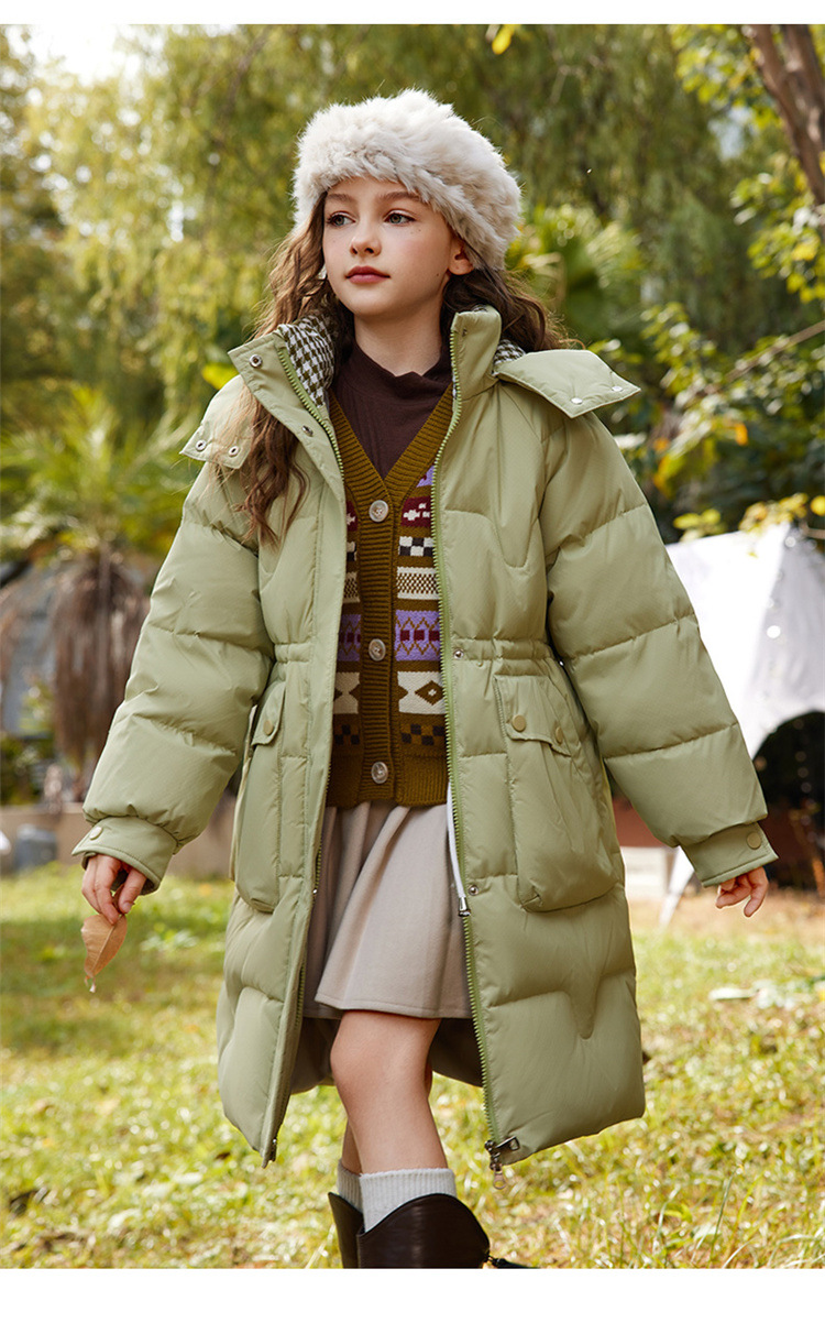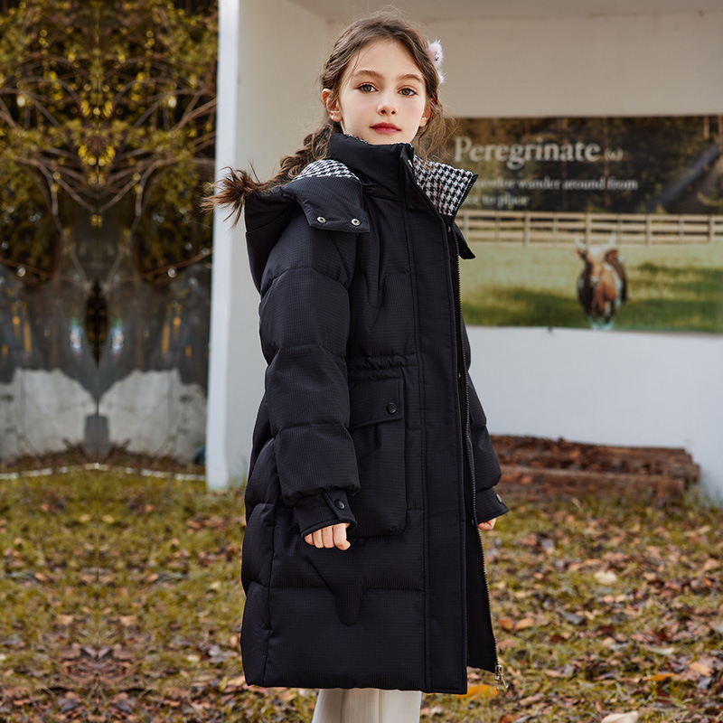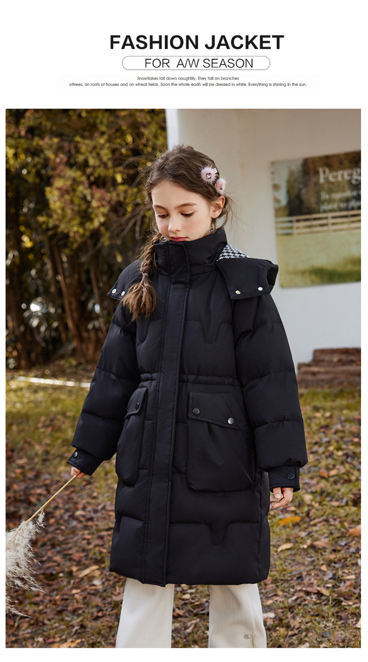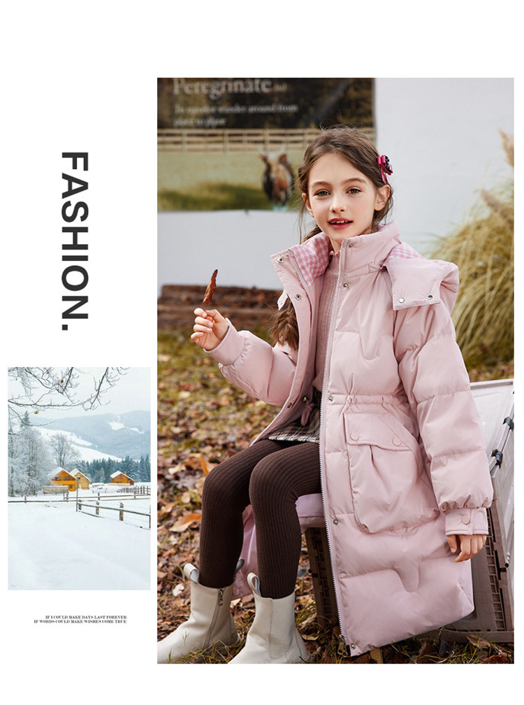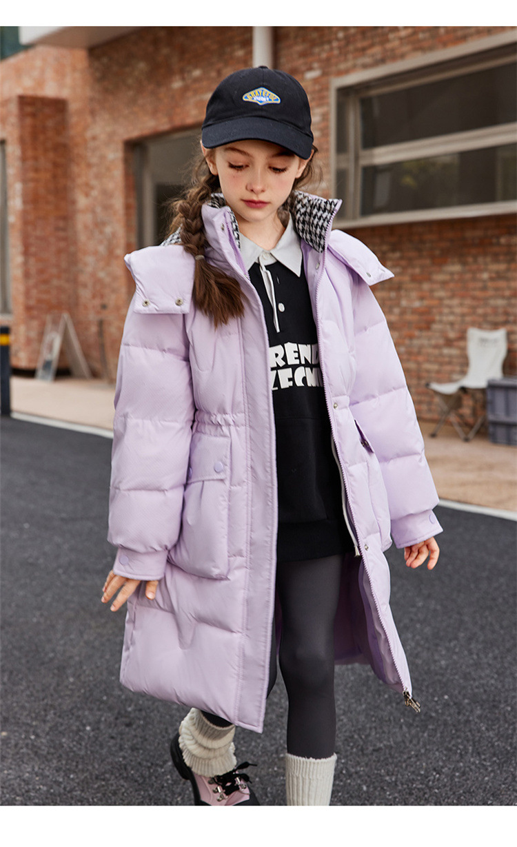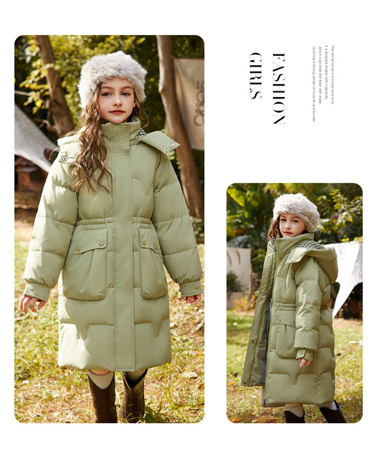 ABC 아동용 다운 재킷 여아 중간 길이 2024 새로운 스타일 화이트 오리 다운 중대형 아동용 겨울 두꺼운 재킷
