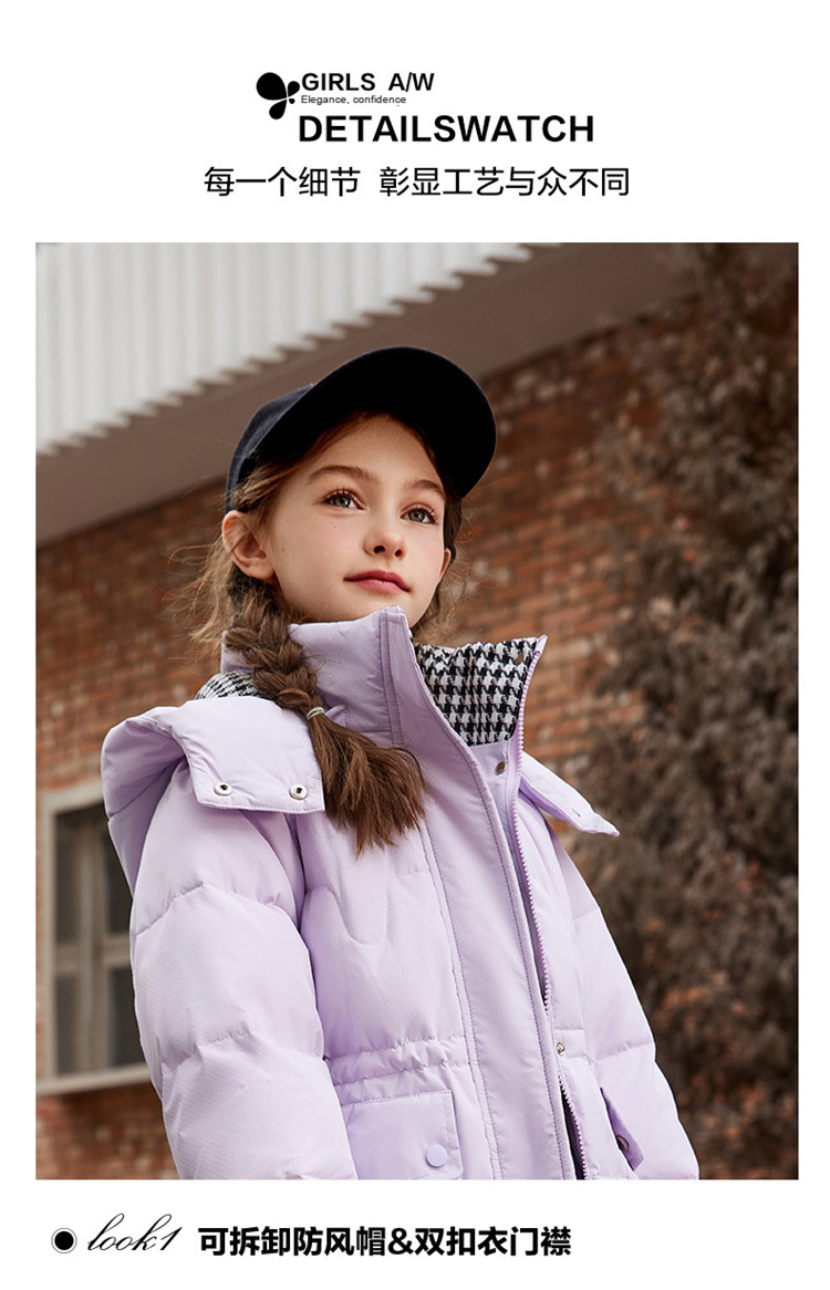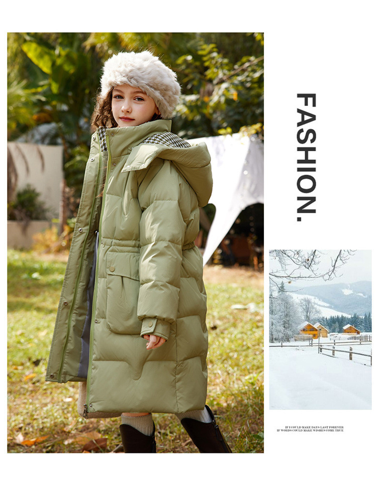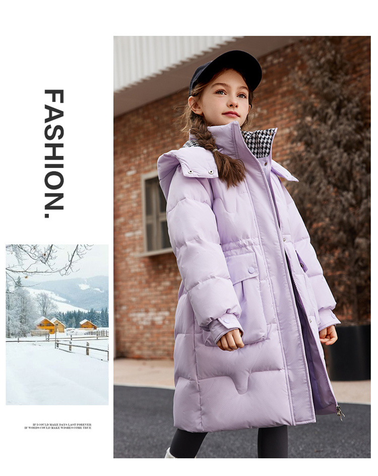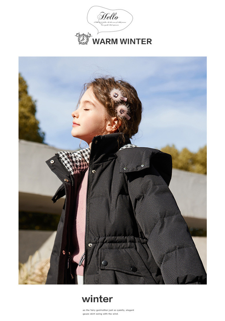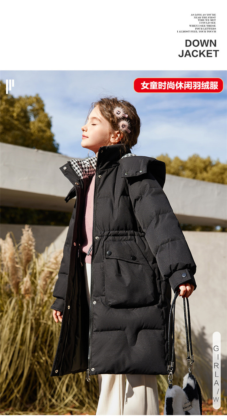 ABC 아동용 다운 재킷 여아 중간 길이 2024 새로운 스타일 화이트 오리 다운 중대형 아동용 겨울 두꺼운 재킷