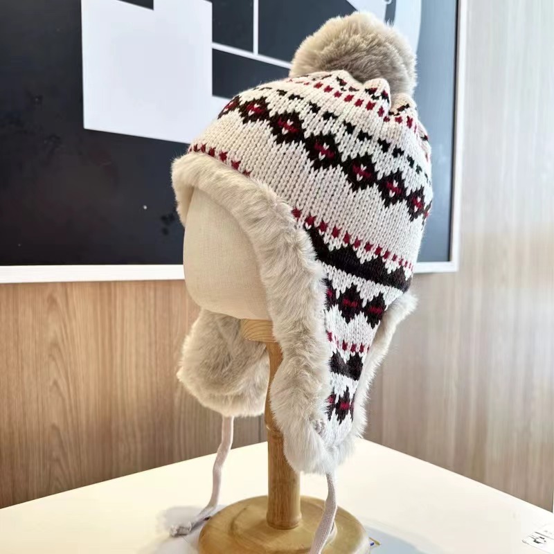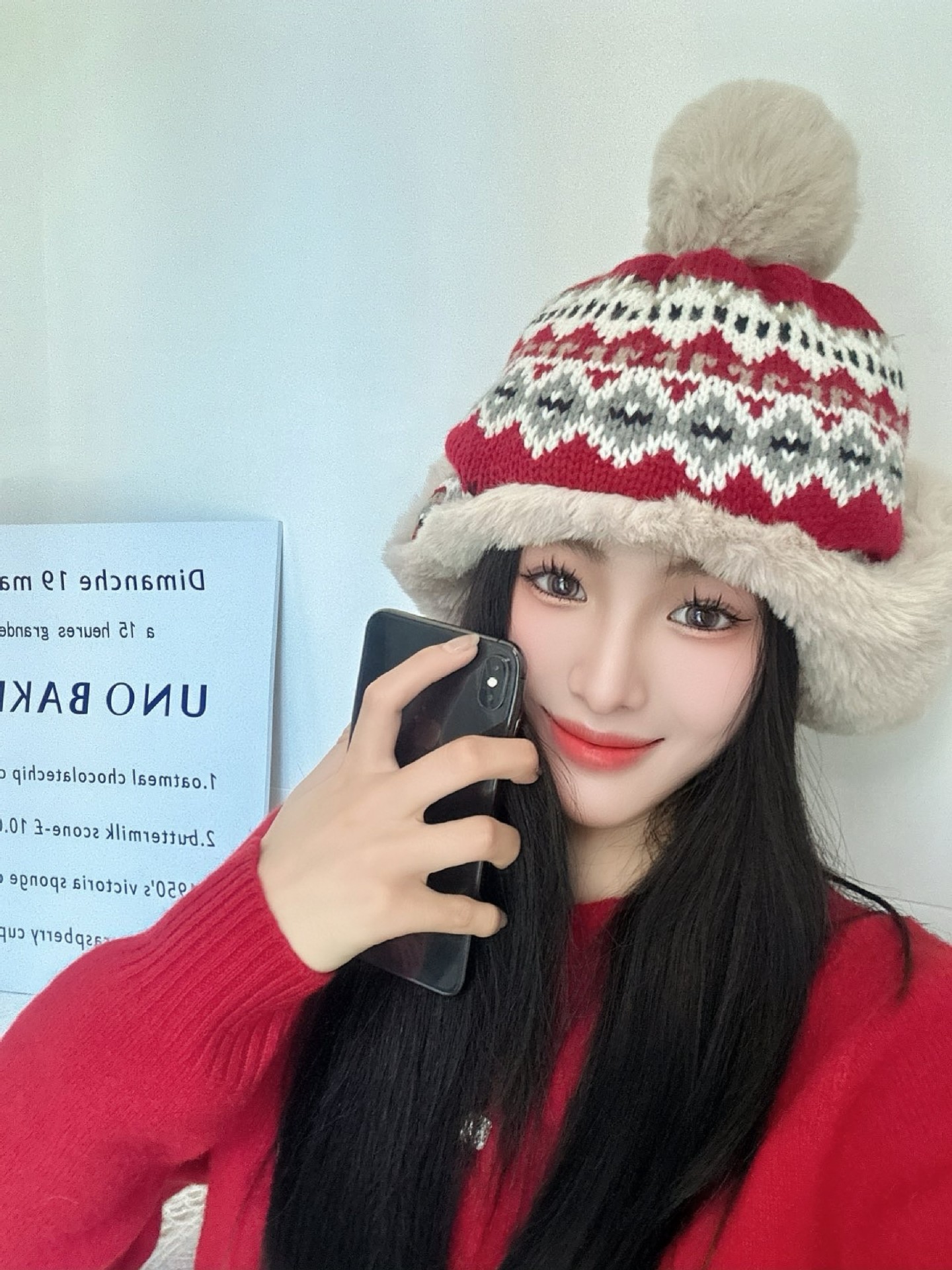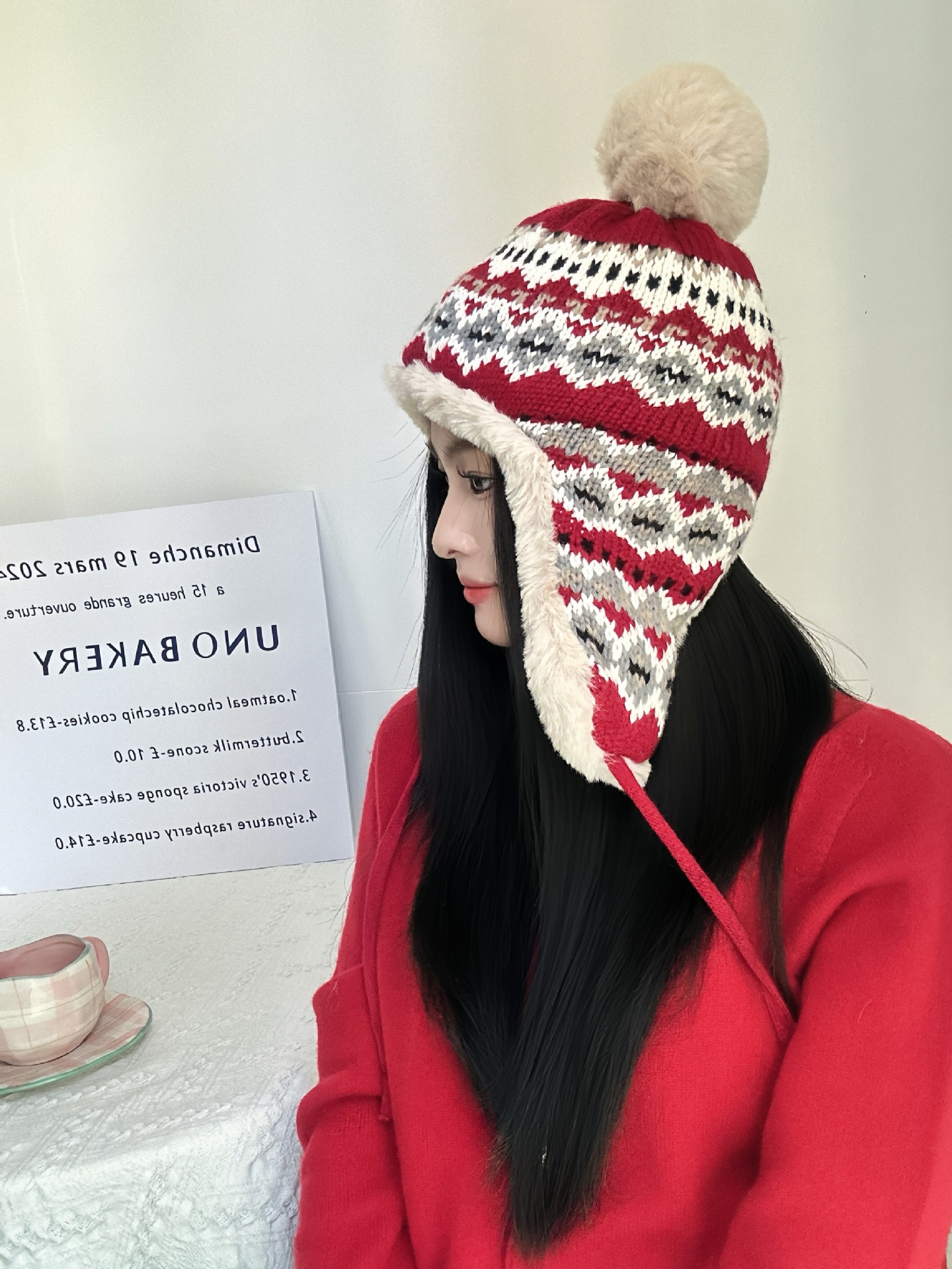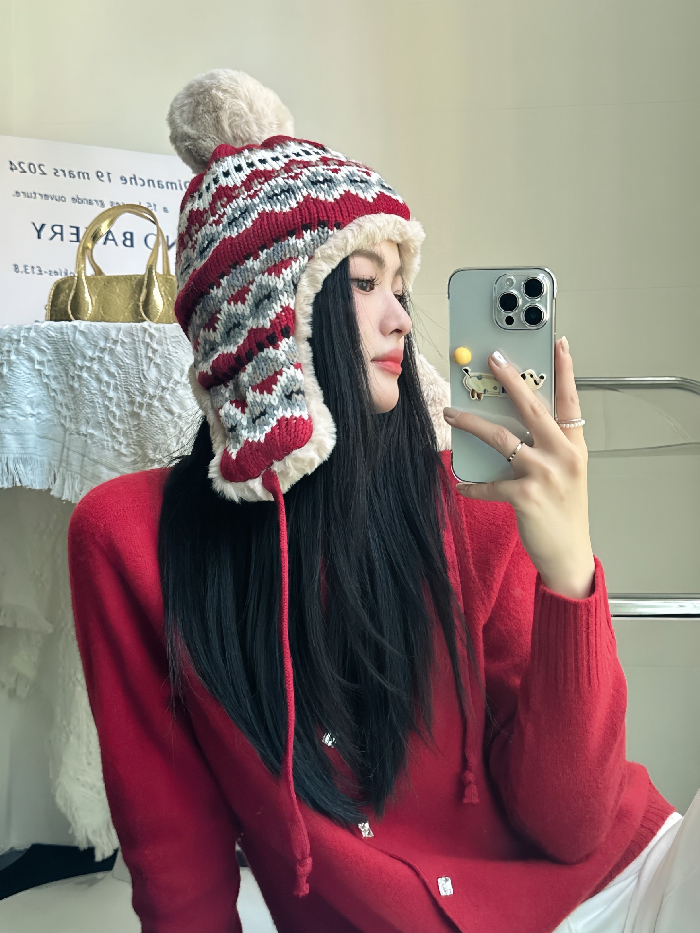 양모 모자 어린이의 가을과 겨울 두꺼운 따뜻한 얼굴 작은 귀 보호 솜털 모자 승마 냉증 풀오버 레이 펑 모자