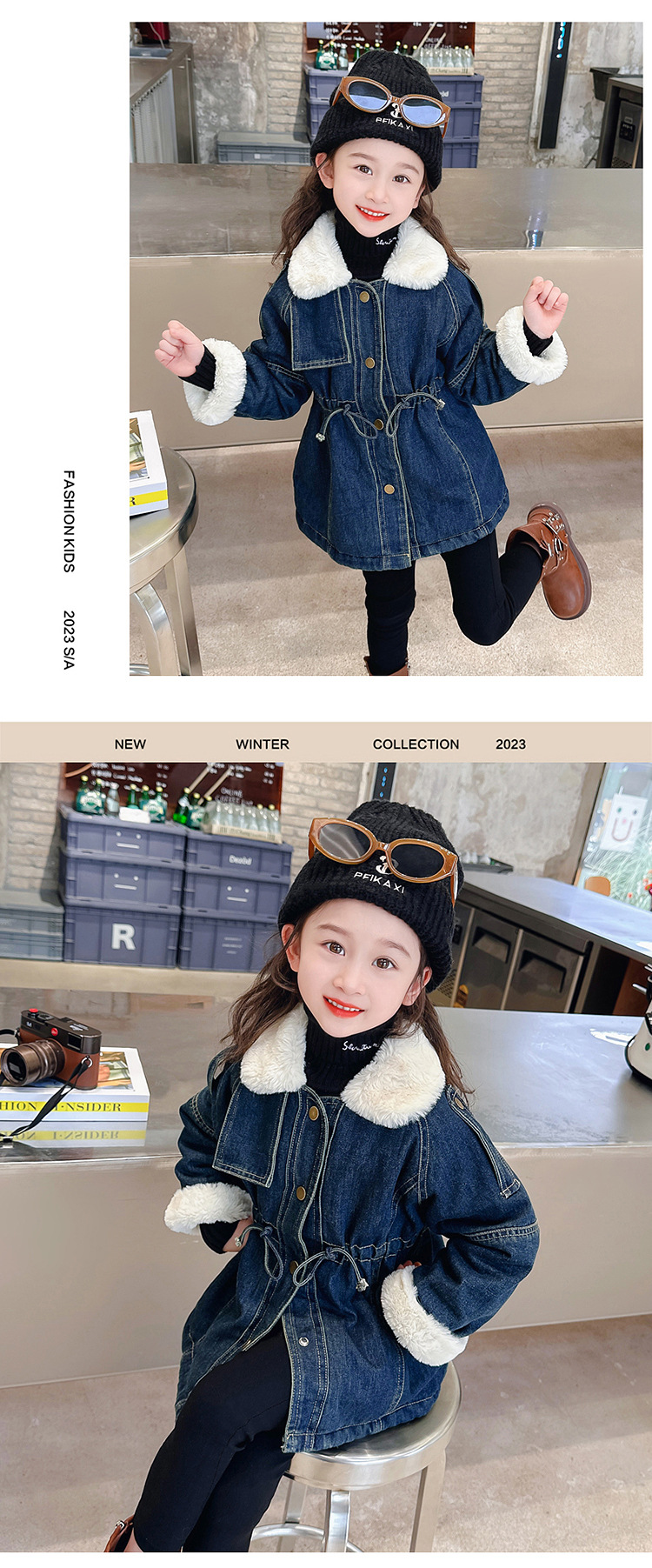 소녀 기모 데님 파카 코트 2024 가을과 겨울 새로운 아이들의 두꺼운 아기의 두꺼운 따뜻한 면화 코트스토어 가기