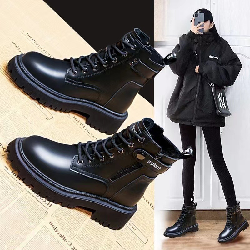 폭발 마틴 부츠 여성 영국 스타일 2024 가을/겨울 새 스타일 작은 두꺼운 바닥 다크 브라운 기모 부츠 오토바이 부츠스토어 가기