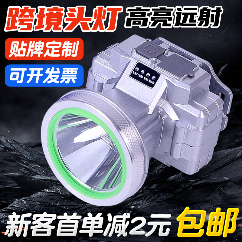 국경 간 도매 LED 장거리 강광 헤드라이트, 긴 배터리 수명, 텔레스코픽 줌 조절 가능한 탐조등, 야외용 초고휘도 낚시등스토어 가기