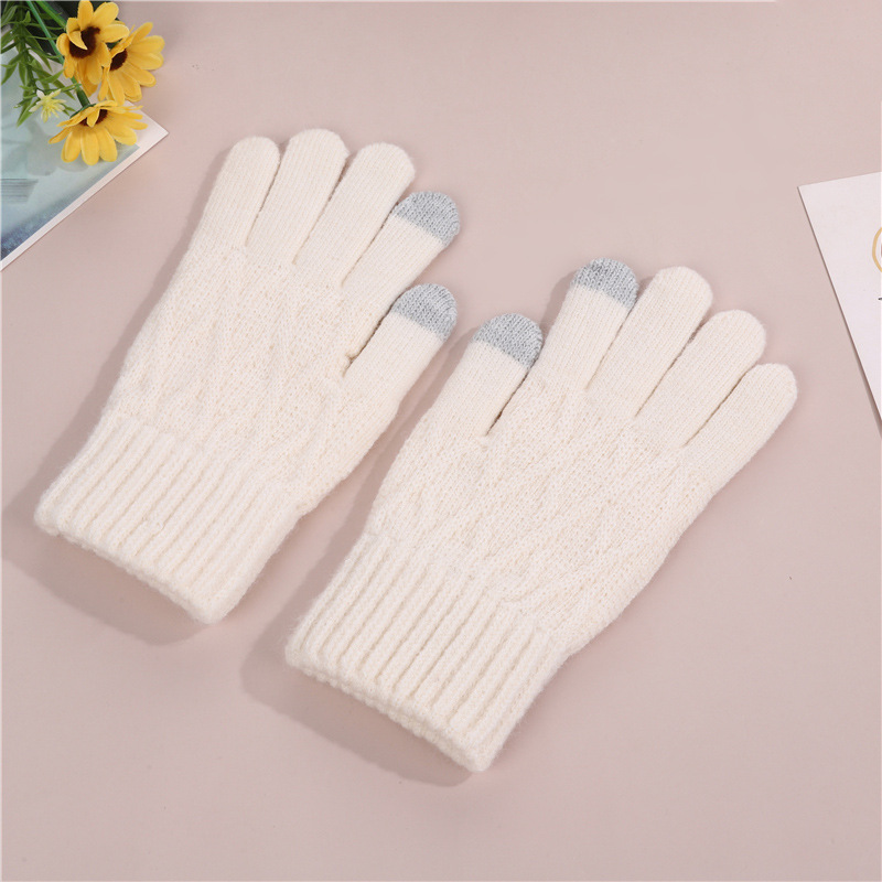 국경 간 기모 두꺼운 니트 장갑 따뜻한 감기 방지 야외 가을 겨울 터치 스크린 패션 야외 레저 장갑