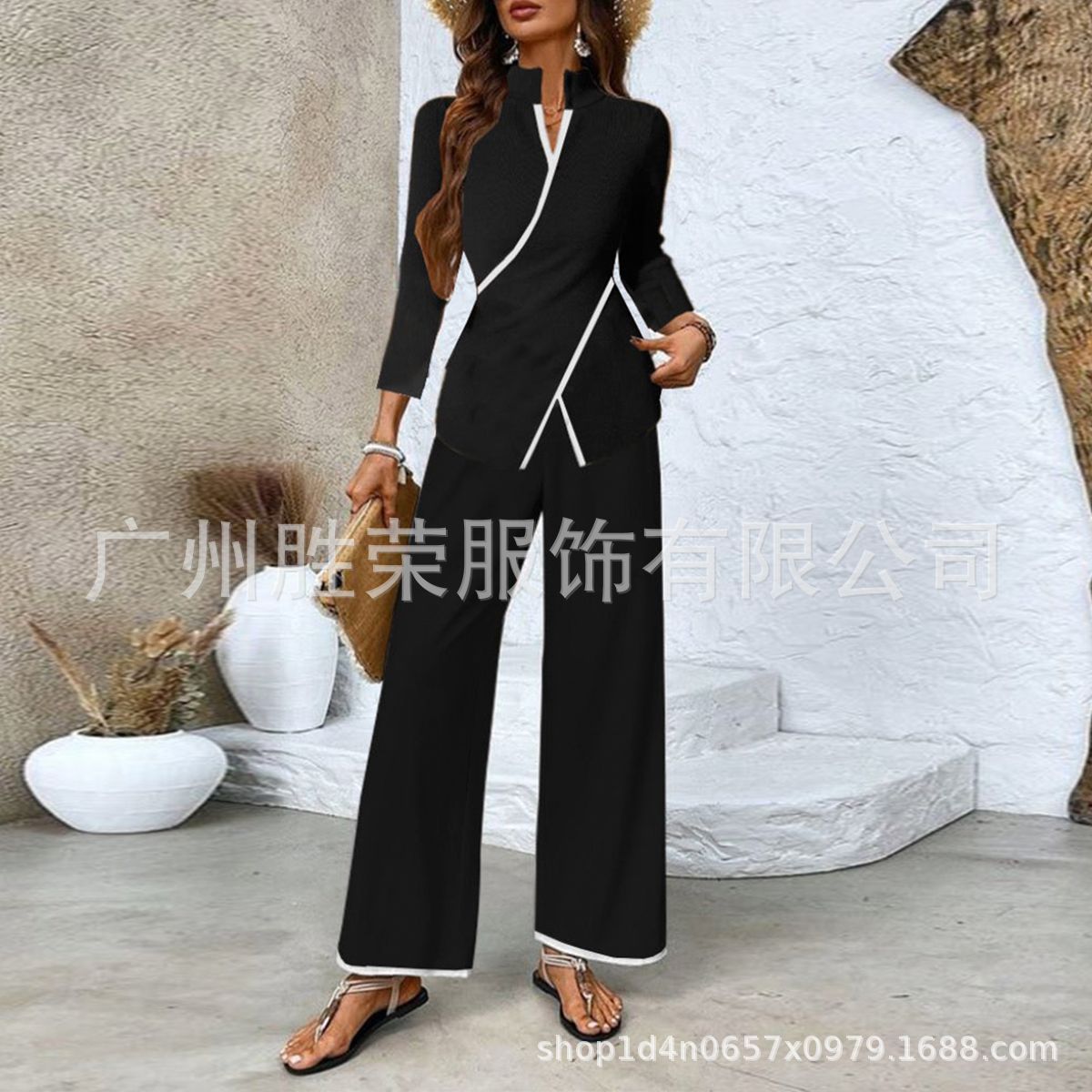 2024 새로운 재고 국경 대외 무역 유럽과 미국 여성 독립 역 뜨거운 단색 칼라 재킷 바지 세트
