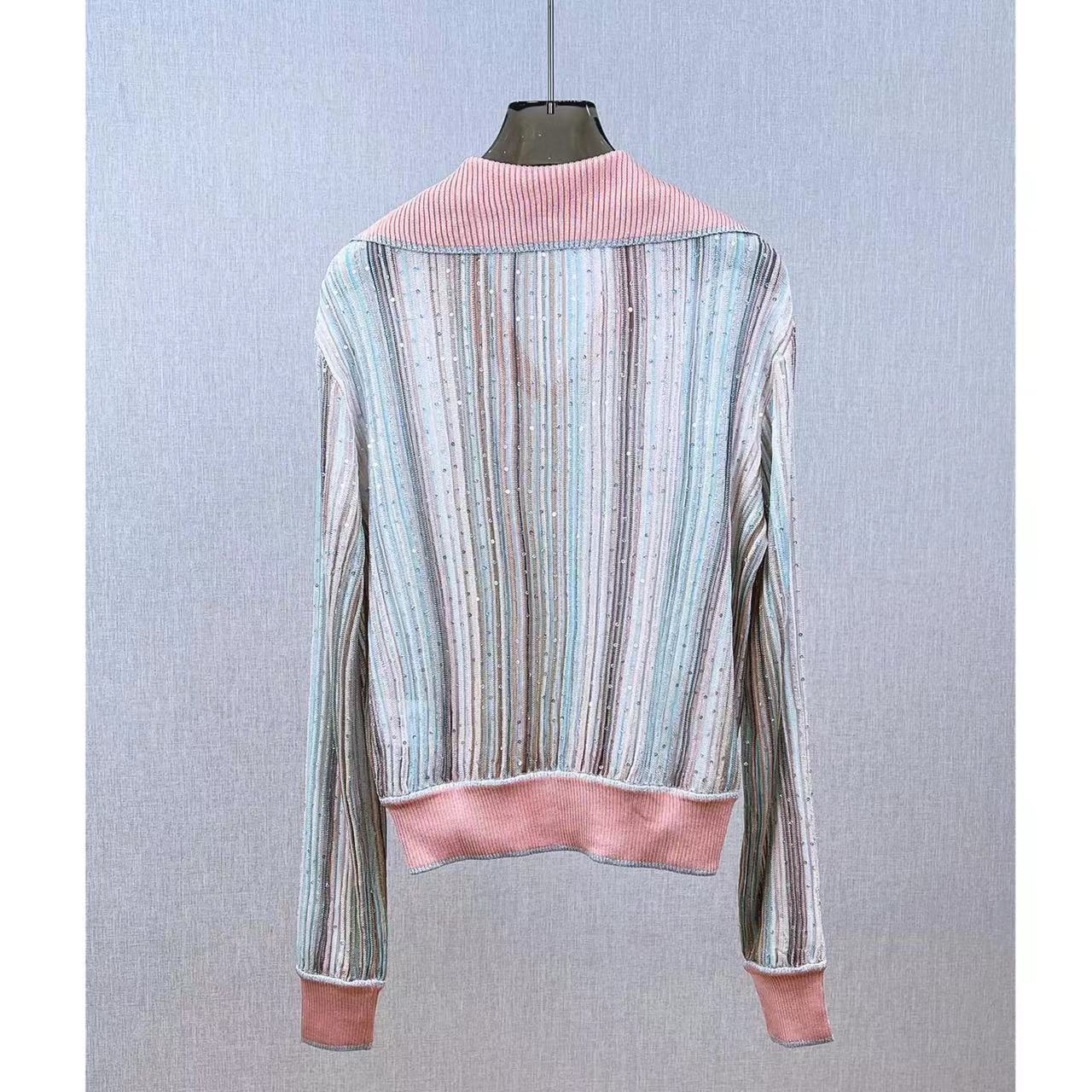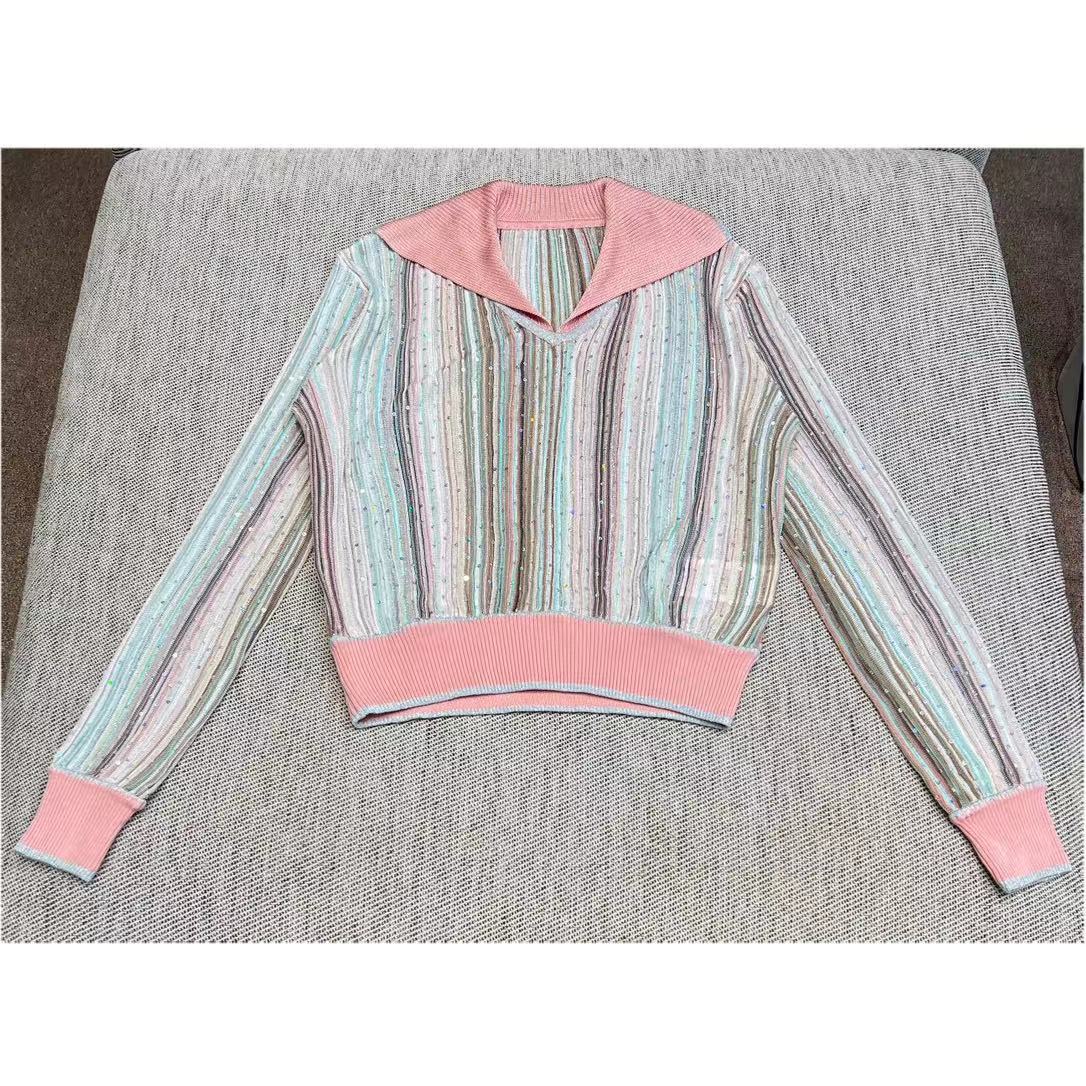 Miss 2024 Autumn New Metallic V-neck 긴팔 스웨터 여성의 패셔너블 슬림 핏 긴팔 풀오버 탑스토어 가기