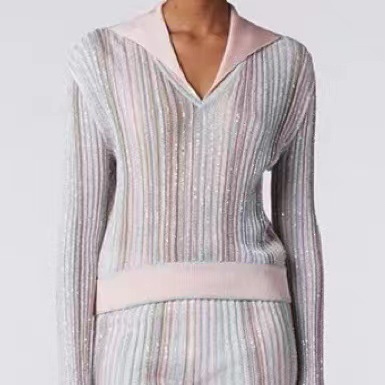 Miss 2024 Autumn New Metallic V-neck 긴팔 스웨터 여성의 패셔너블 슬림 핏 긴팔 풀오버 탑