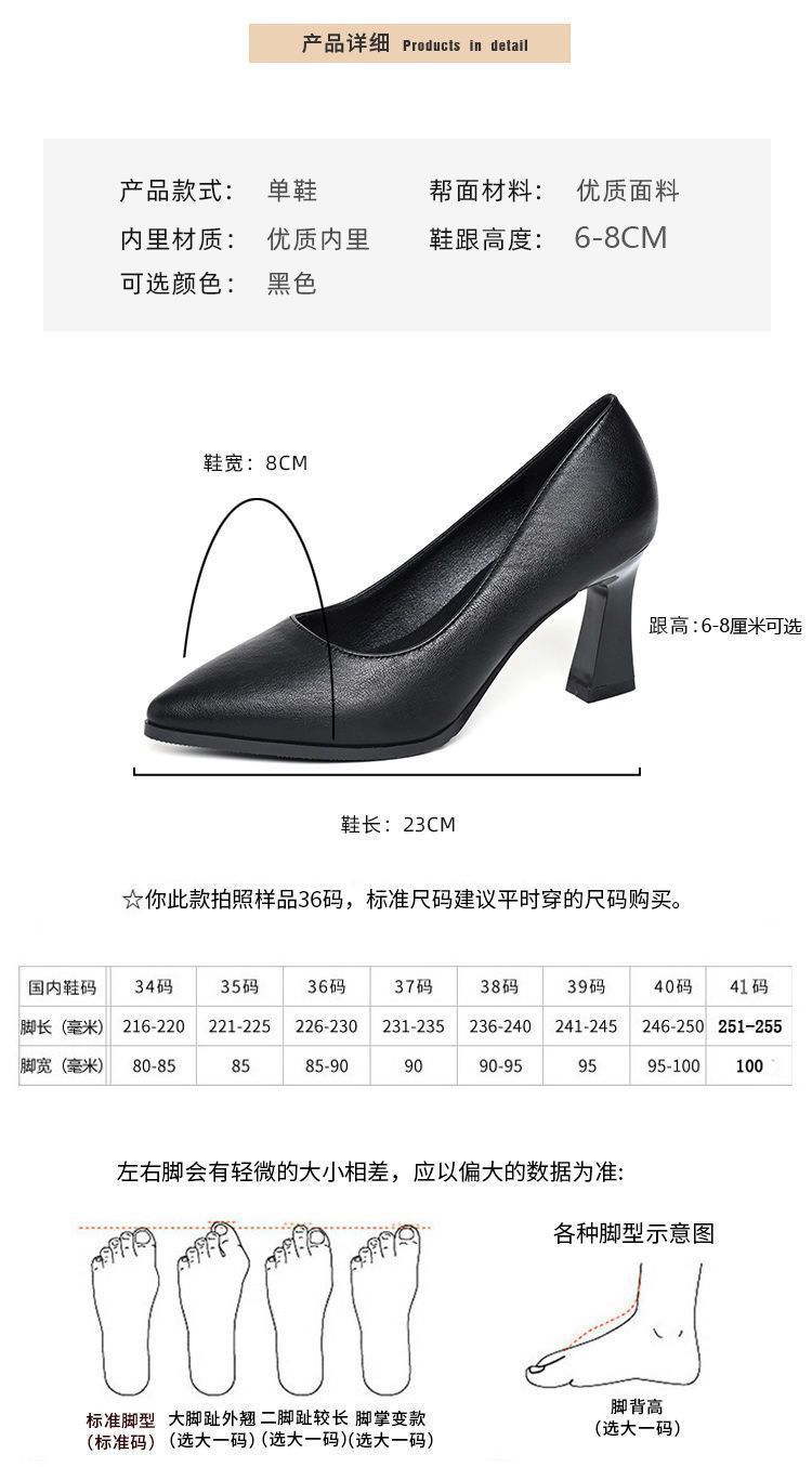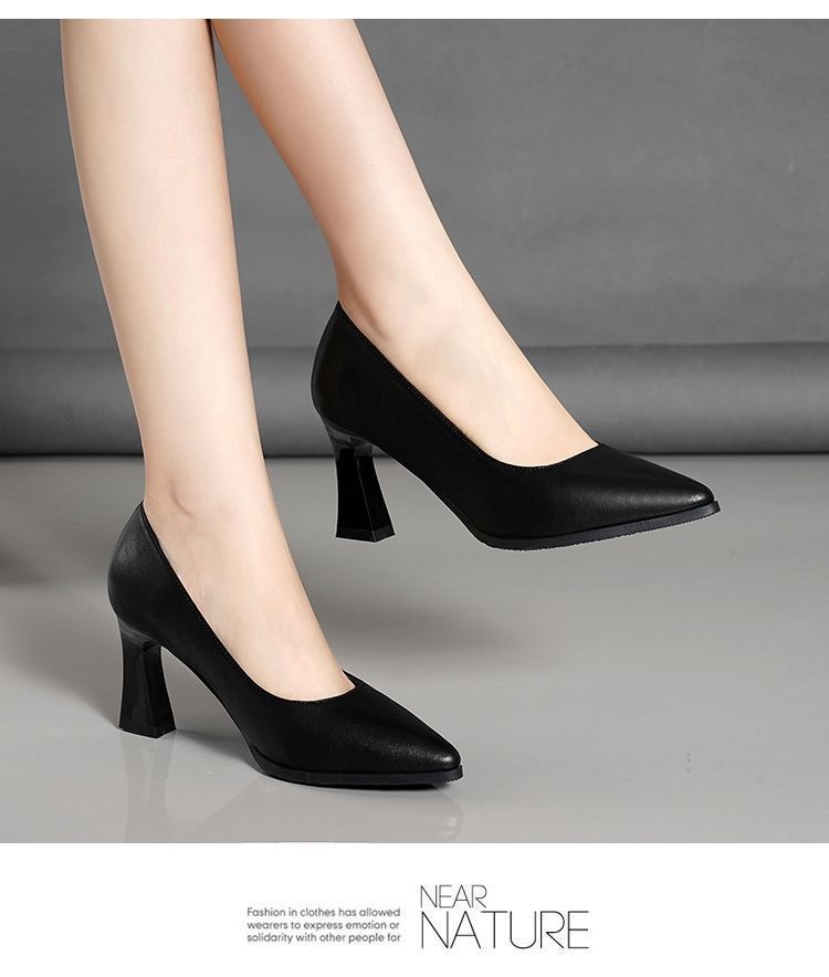 에티켓 뾰족한 하이힐은 피곤하지 않은 발 소프트 단독 편안한 커리어 인터뷰 신발 성인 행사 신발 여성 두꺼운 힐 블랙 가죽 신발스토어 가기