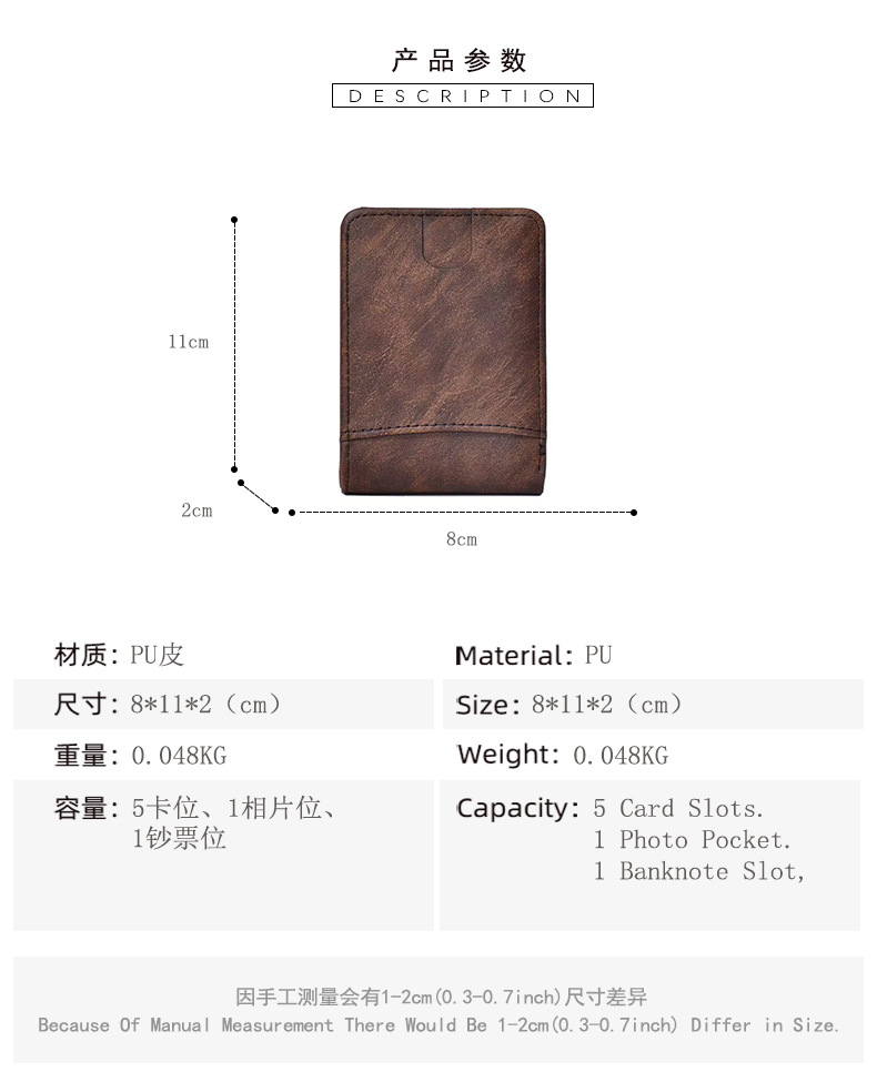 2024 레트로 캐주얼 남성 카드 가방 휴대용 울트라 얇은 카드 세트 멀티 카드 절묘한 PU 신용 카드 남성 지갑 짧은스토어 가기
