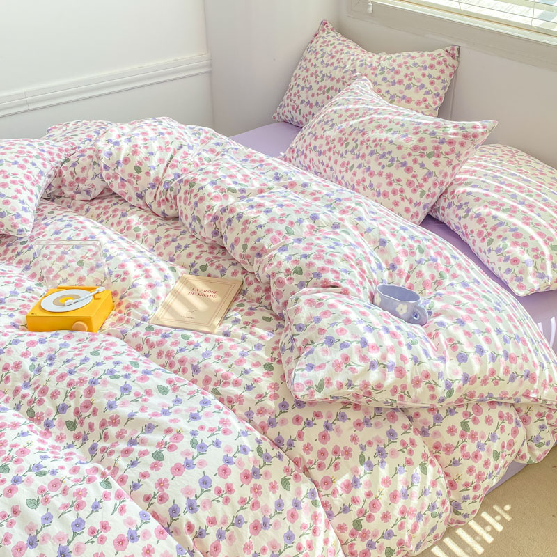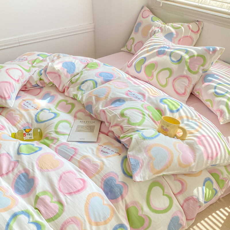 클래스 더블 레이어 원사 4 피스 침구 만화 귀여운 침대 시트 퀼트 커버 침대 모자 코튼 및 리넨 기숙사 3 피스 세트스토어 가기