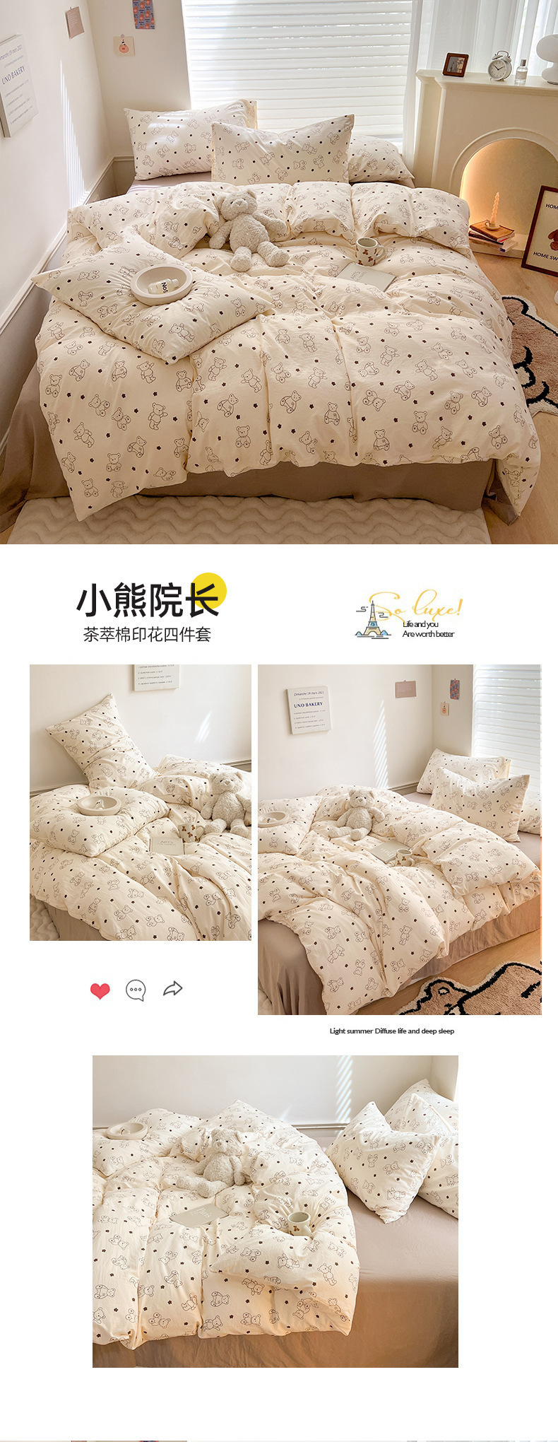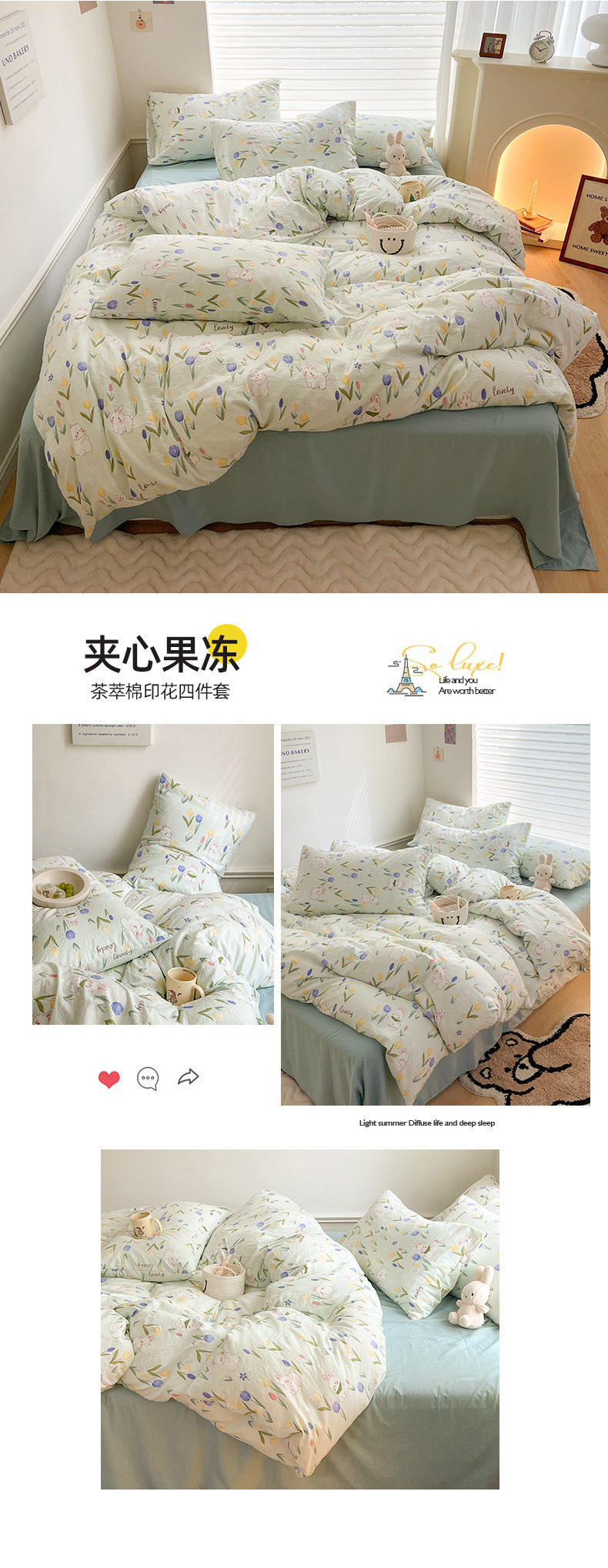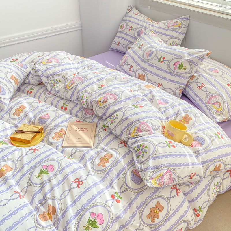 클래스 더블 레이어 원사 4 피스 침구 만화 귀여운 침대 시트 퀼트 커버 침대 모자 코튼 및 리넨 기숙사 3 피스 세트