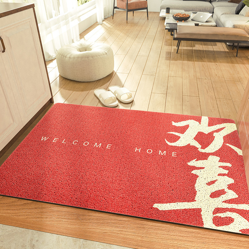 실크 링 플로어 매트 레드 중국 스타일 머드 스크레이핑 및 토양 저항 더럽고 입구에 대한 내마모성 미끄럼 방지 입구 바닥 매트스토어 가기