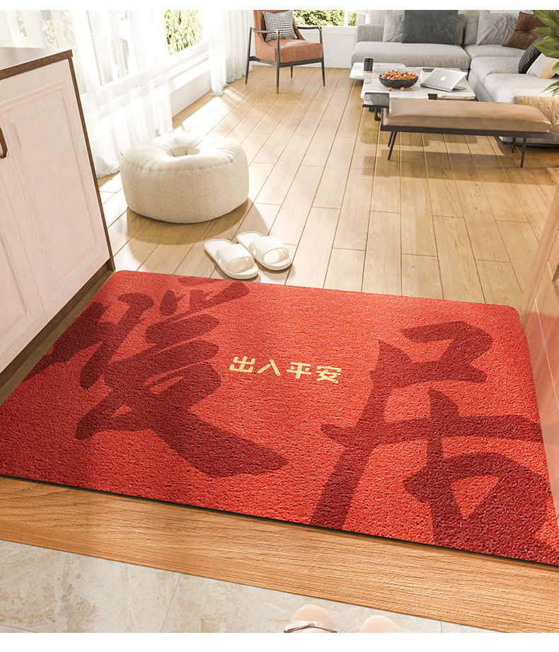 실크 링 플로어 매트 레드 중국 스타일 머드 스크레이핑 및 토양 저항 더럽고 입구에 대한 내마모성 미끄럼 방지 입구 바닥 매트