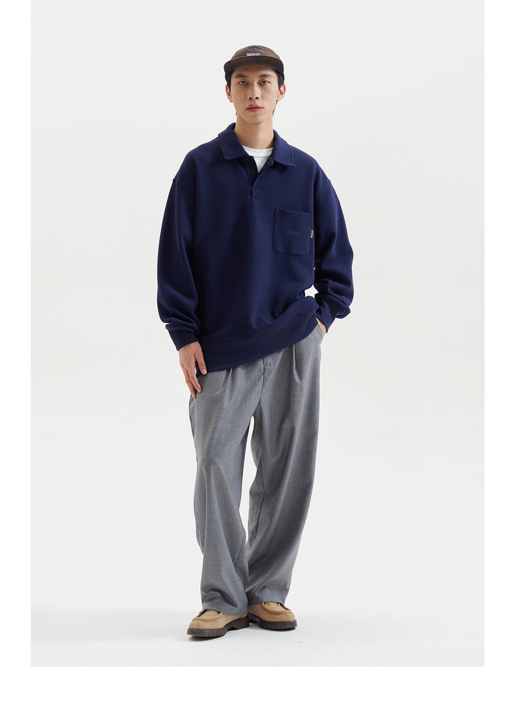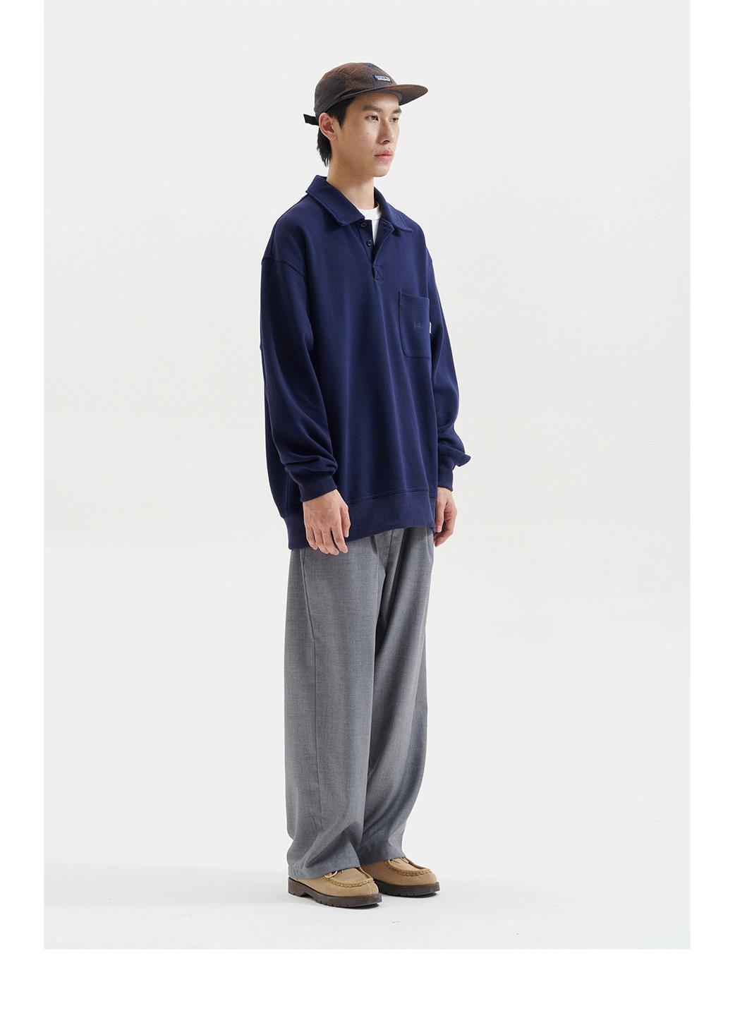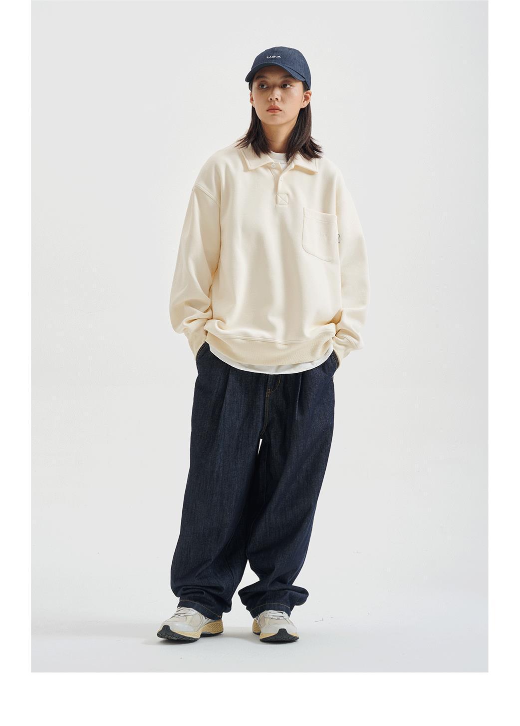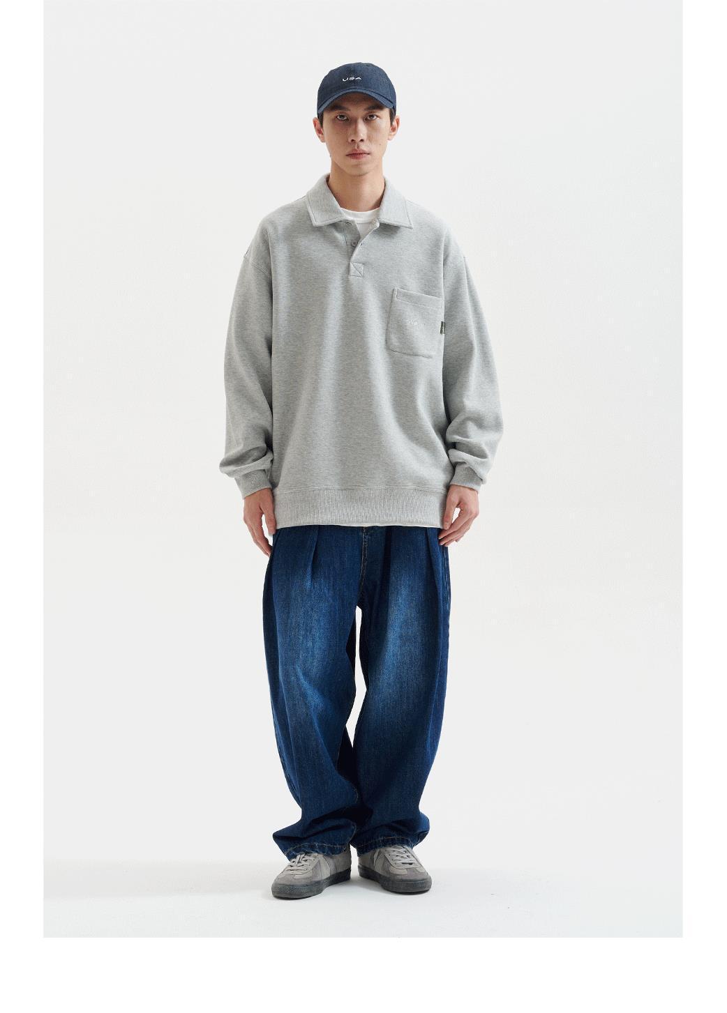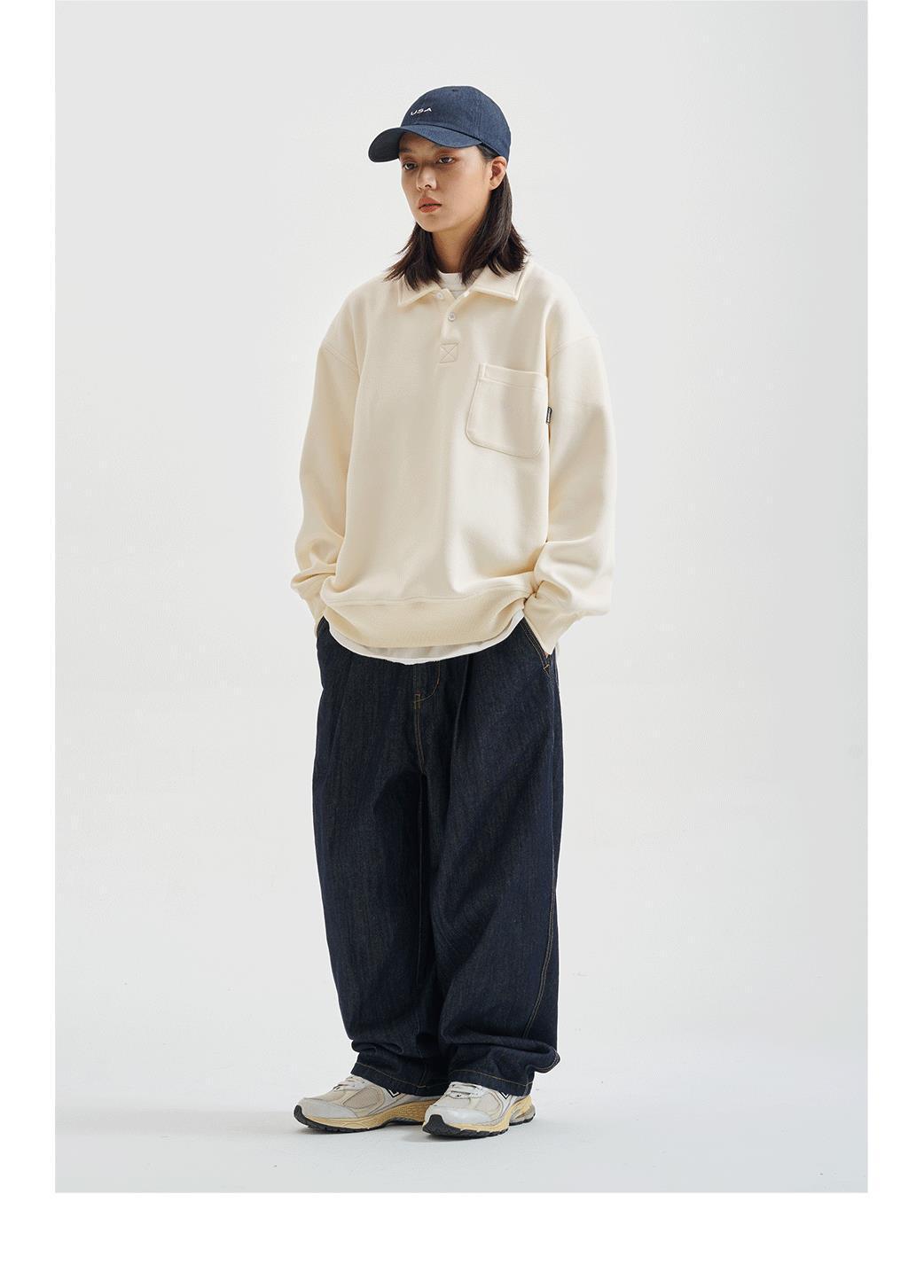 2024 봄과 가을 새로운 레트로 일본 긴팔 폴로 칼라 남자 느슨한 올 매치 하프 오픈 칼라 스웨트 셔츠 커플을위한 트렌디스토어 가기