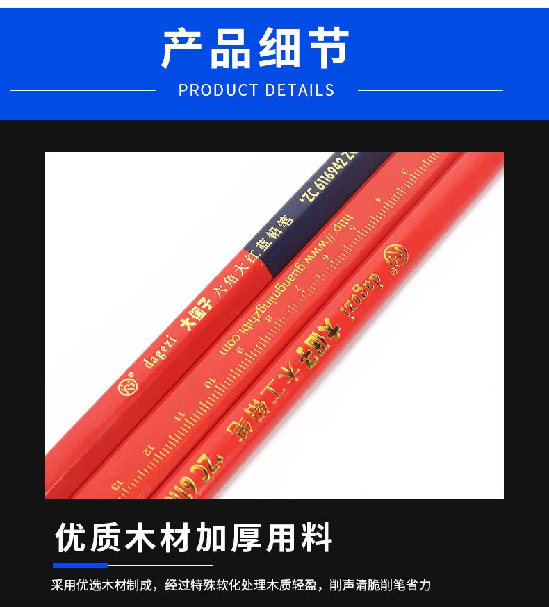• 0552-육각형 빨간색과 파란색 목수 연필