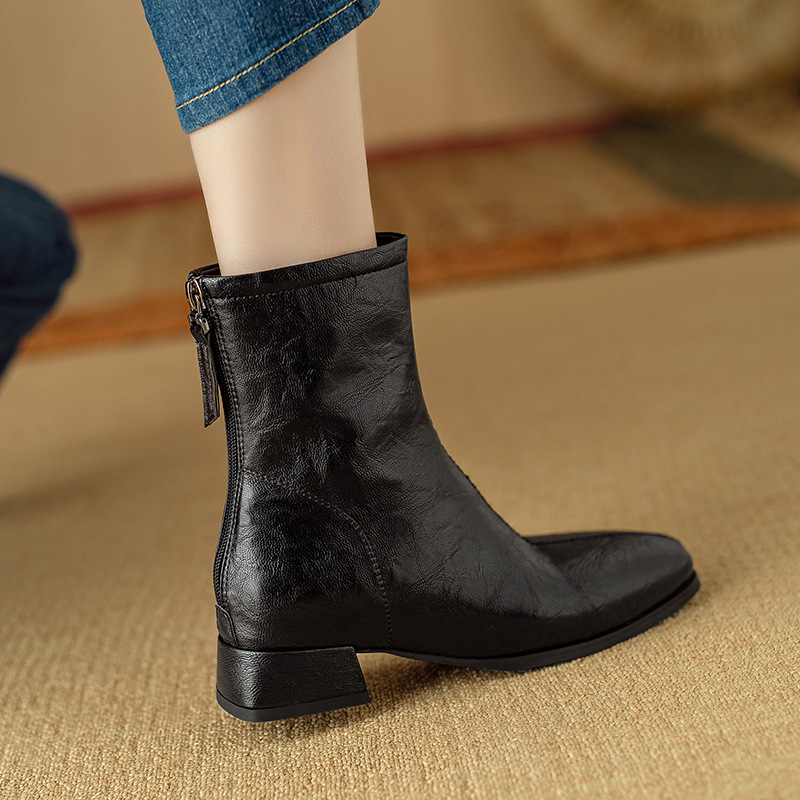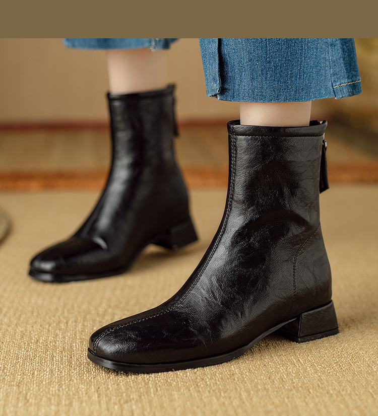 32-43 사이즈 부츠 스퀘어 헤드 두꺼운 힐 로우 힐 짧은 부츠 2024 가을과 겨울 새로운 여성 부츠 간단한 단일 부츠 크로스 테두리스토어 가기