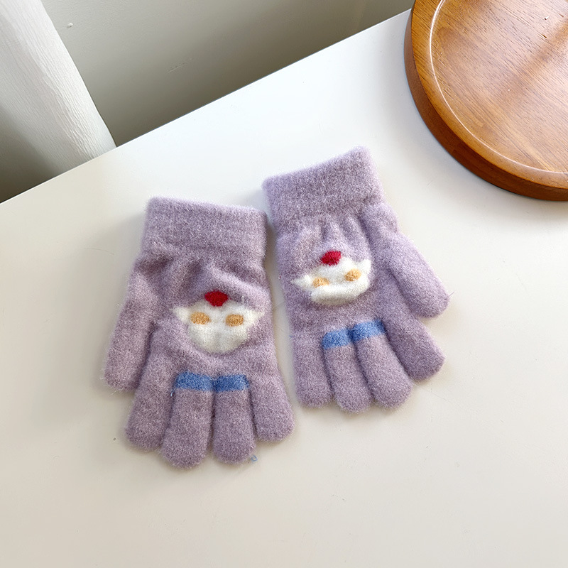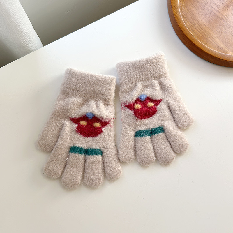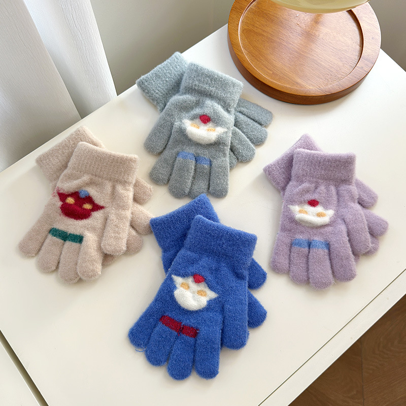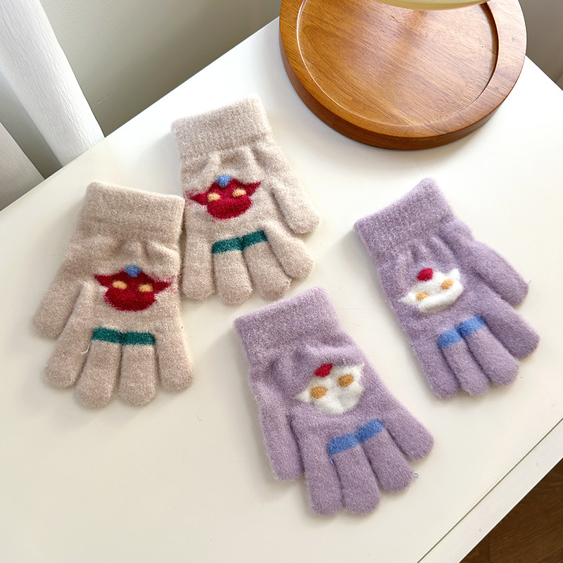 어린이 장갑 소년 귀여운 만화 손가락 두꺼운 학생 다섯 손가락 가을과 겨울 따뜻한 소녀의 양모 니트스토어 가기
