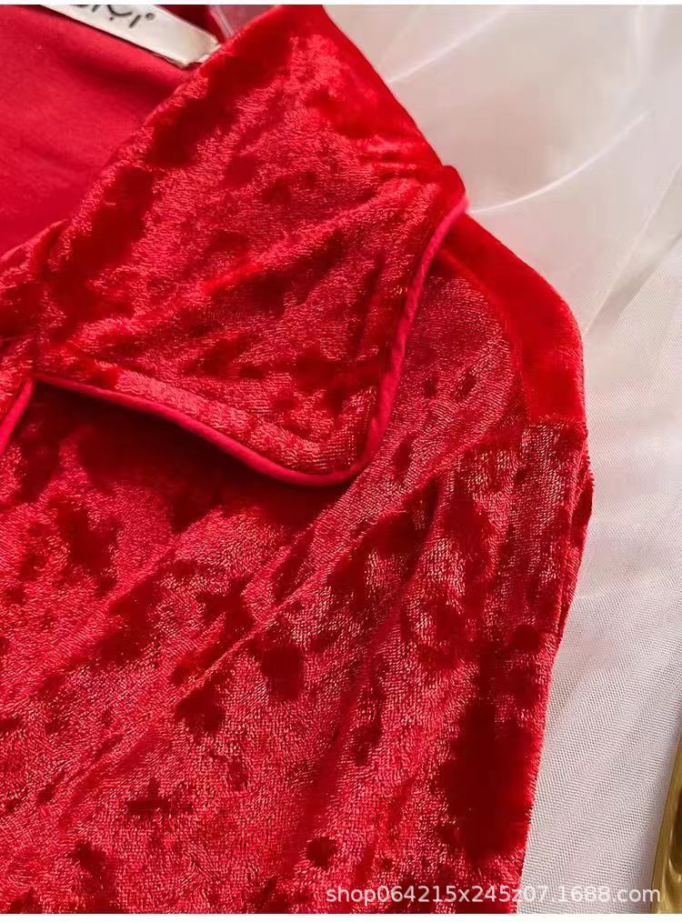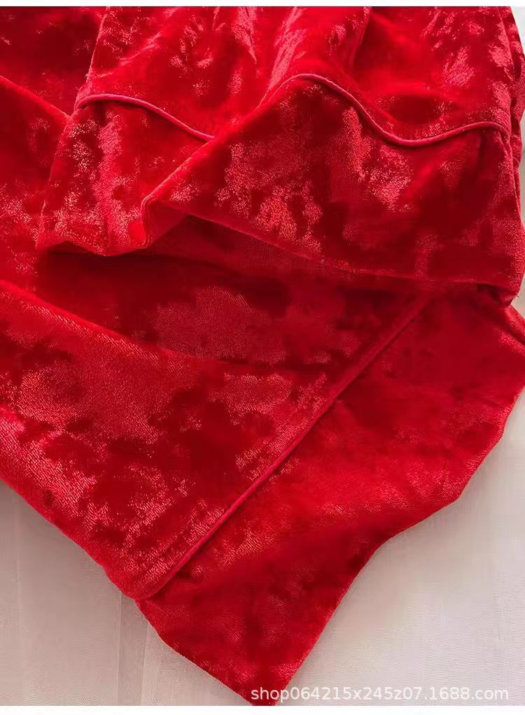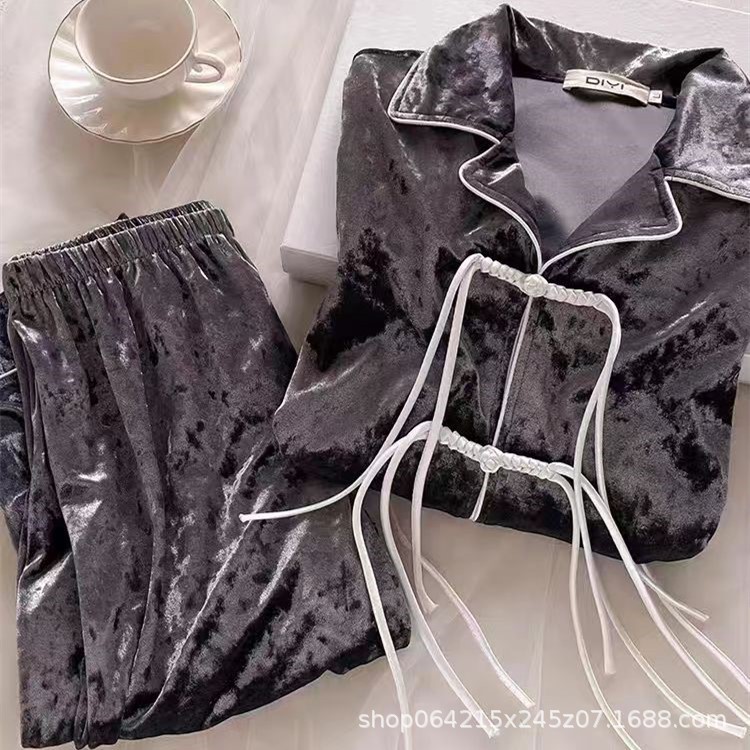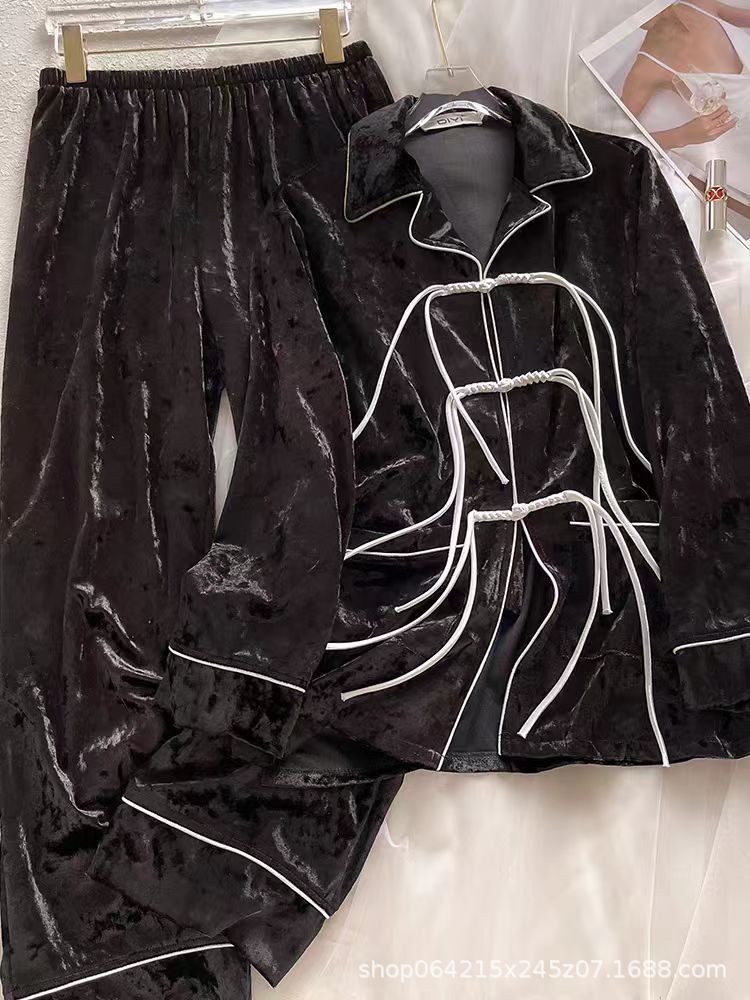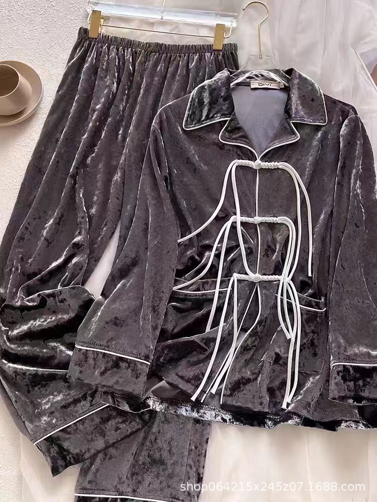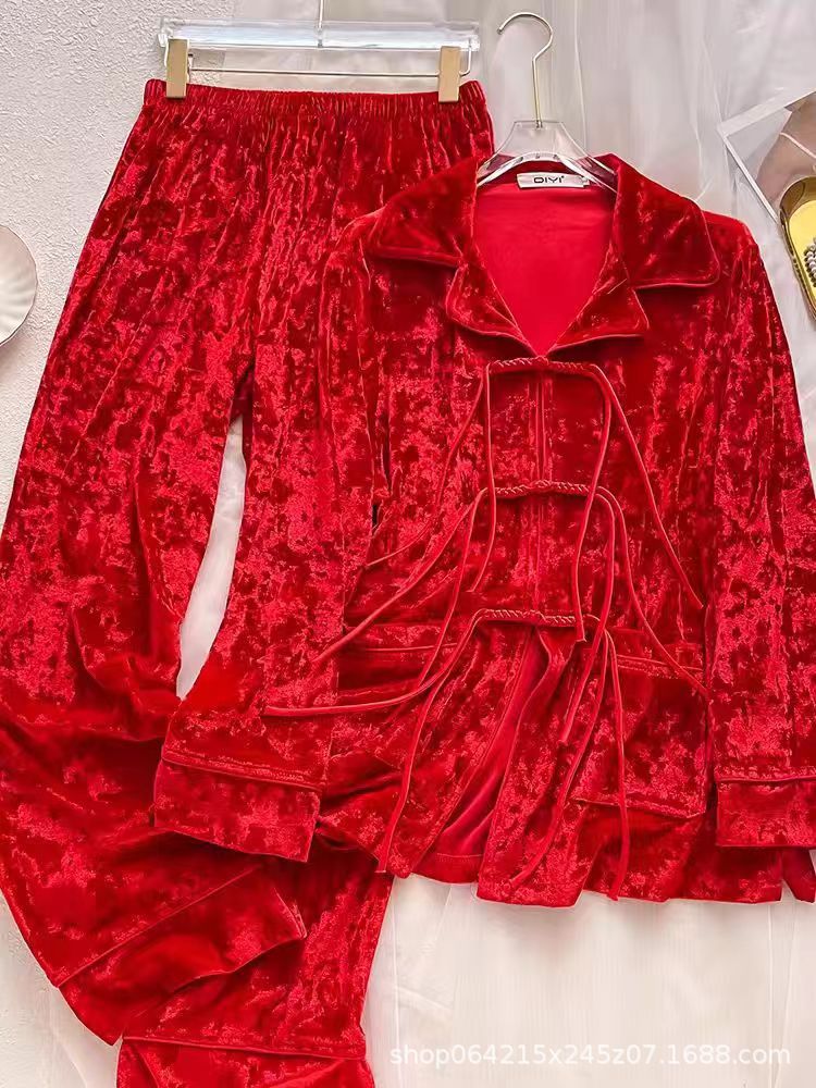 새로운 벨벳 중국 스타일 국가 스타일 달콤한 잠옷 여성의 봄 가을과 겨울 황금 벨벳 홈 의류 세트 레드 다이아몬드 벨벳 파자마스토어 가기