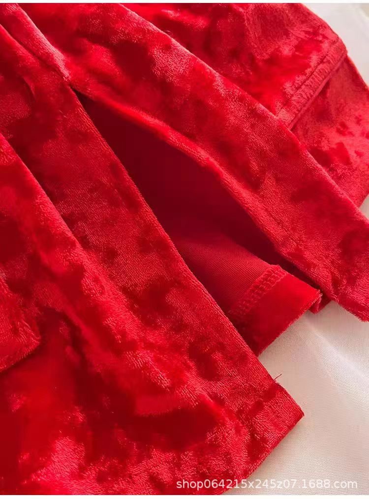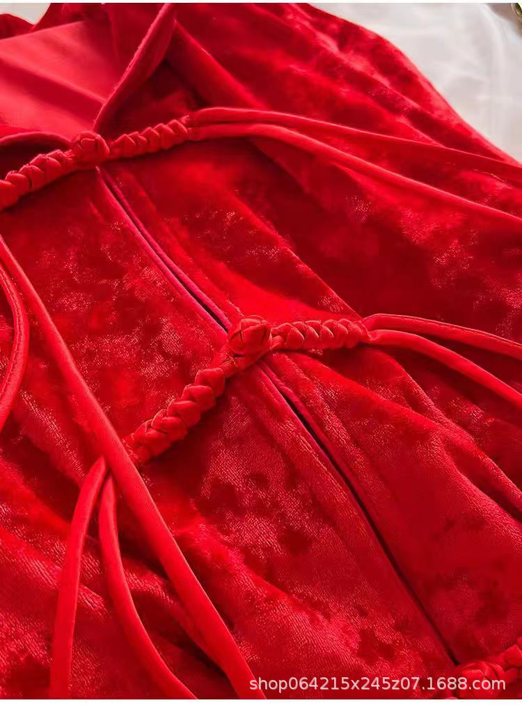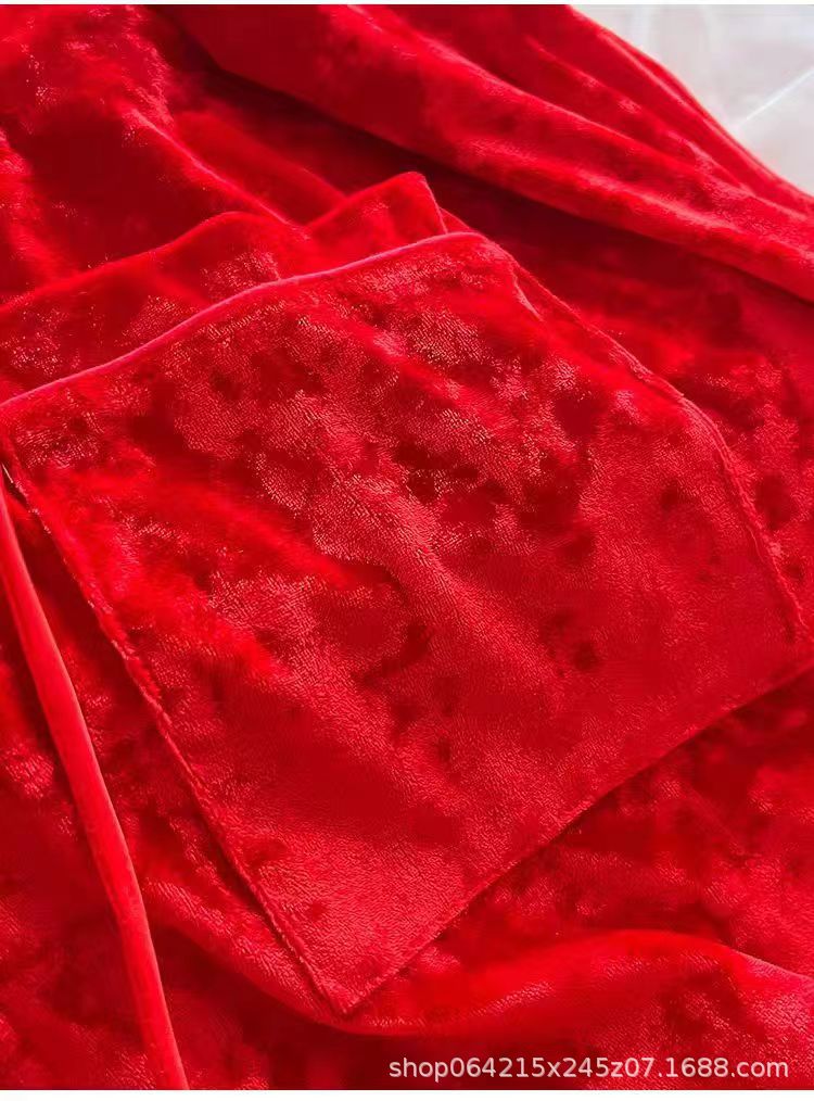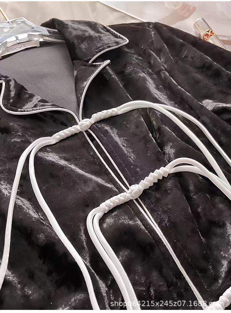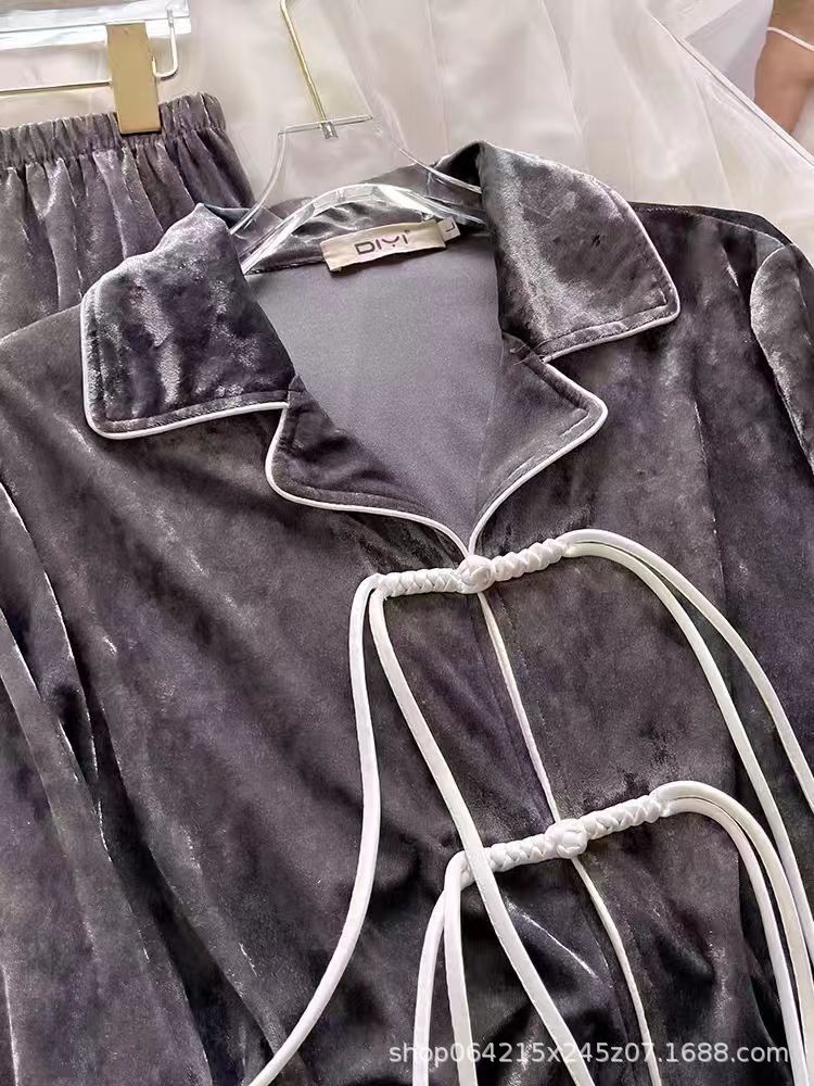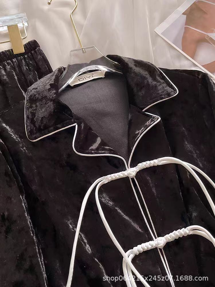새로운 벨벳 중국 스타일 국가 스타일 달콤한 잠옷 여성의 봄 가을과 겨울 황금 벨벳 홈 의류 세트 레드 다이아몬드 벨벳 파자마스토어 가기