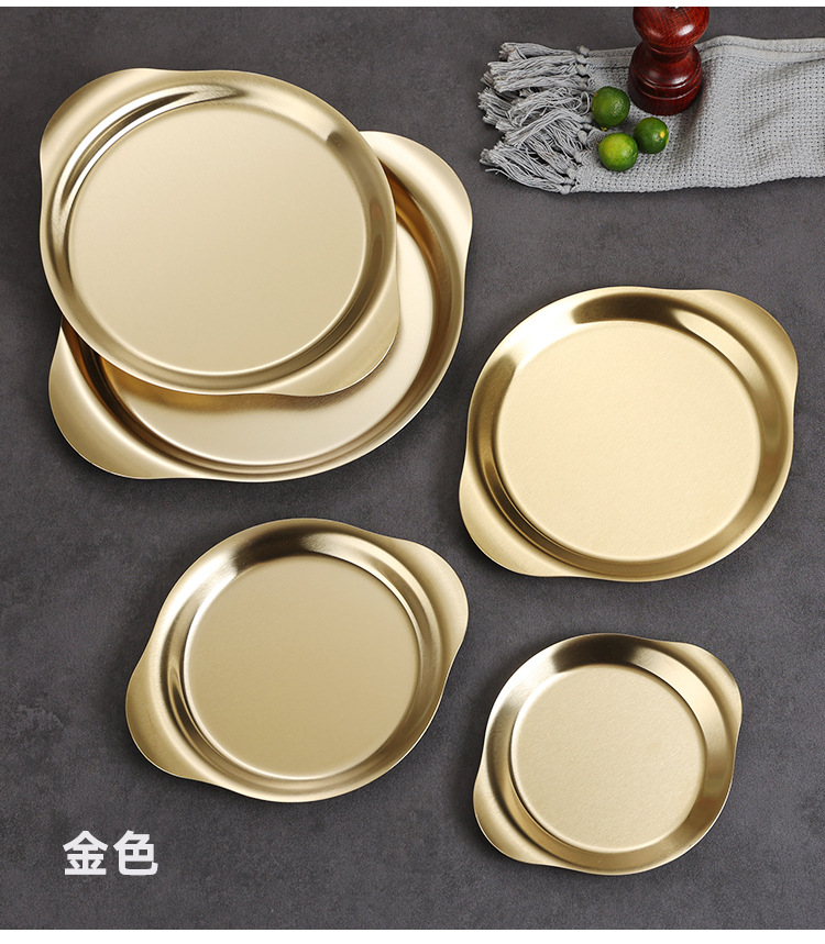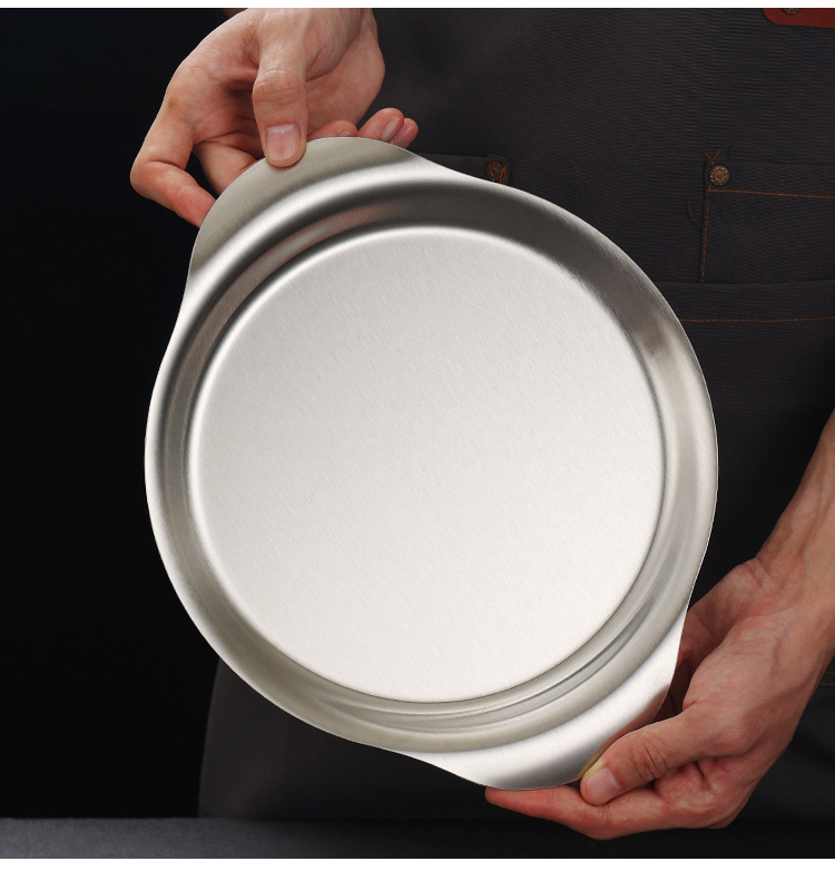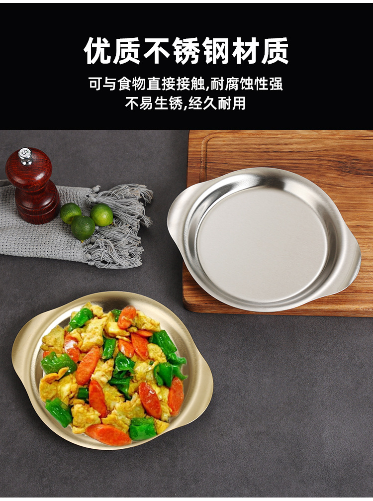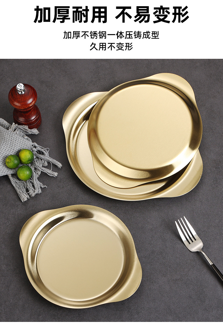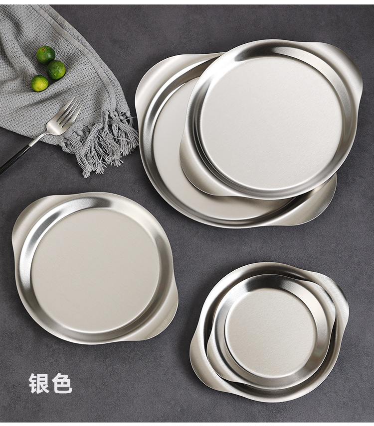 한국식 스테인레스 스틸 바이노럴 결합 된 파스타 플레이트 프라이드 치킨 스낵 플레이트 플랫 바닥 바베큐 딥 플레이트 바베큐 플레이트 바베큐 플레이트 트레이