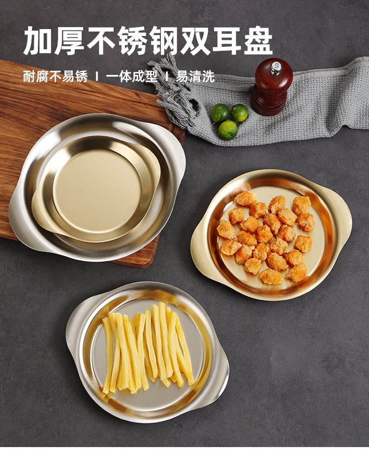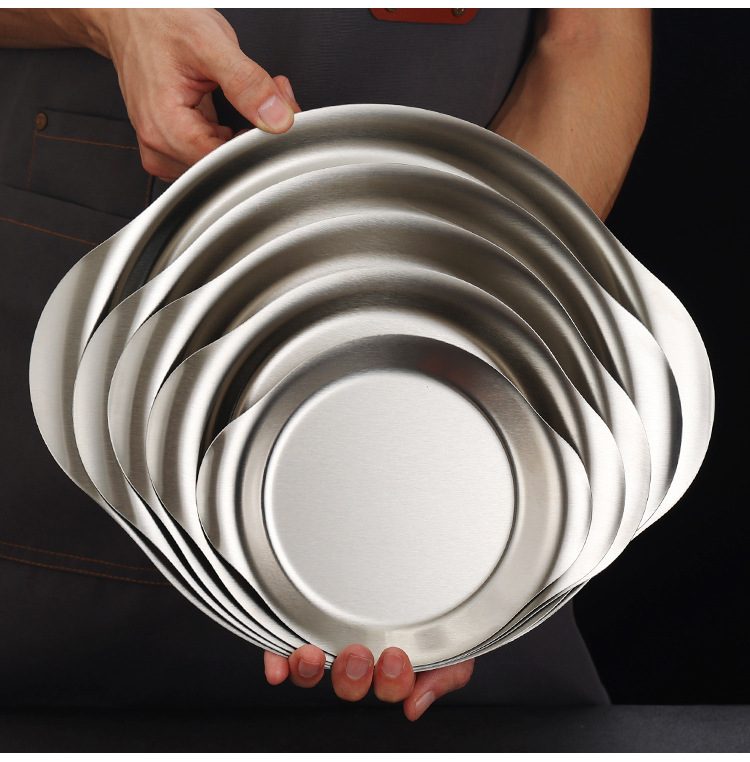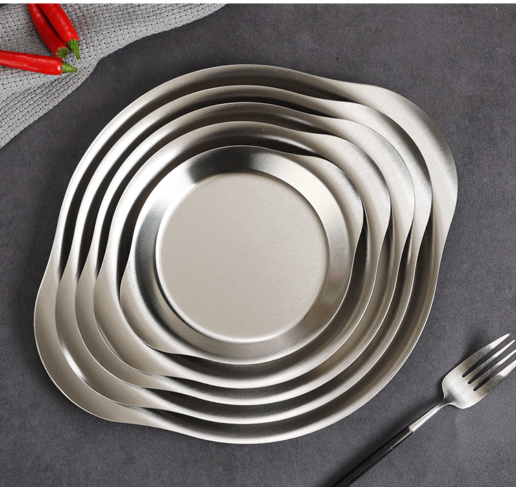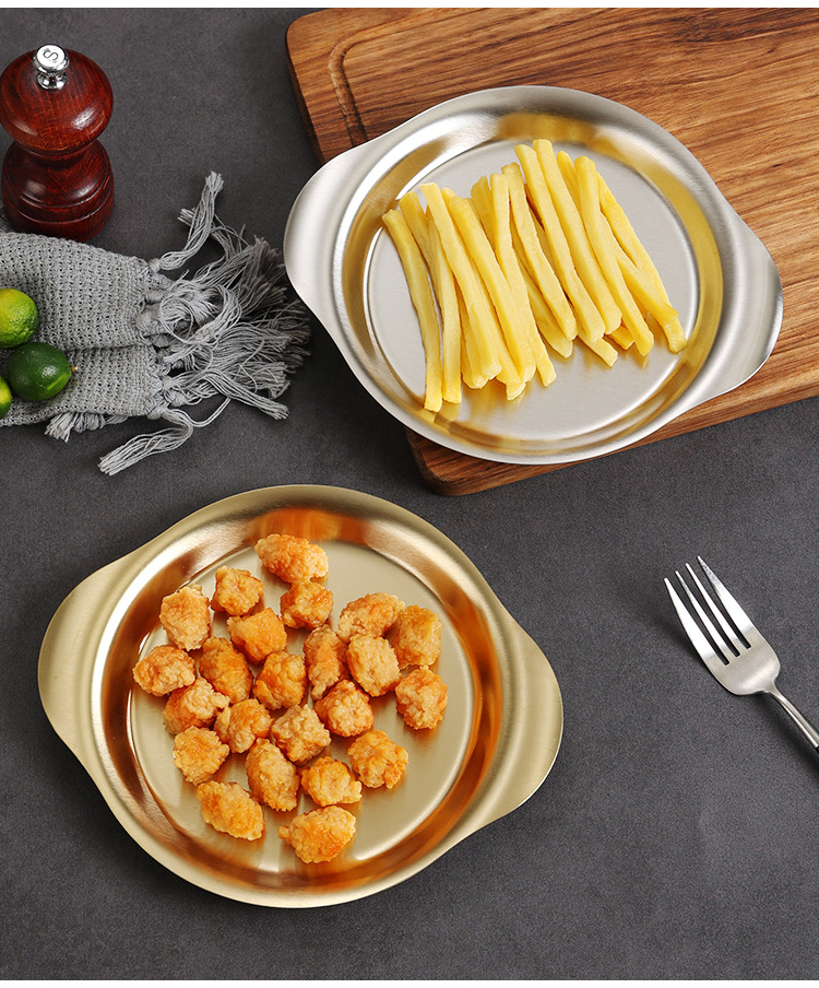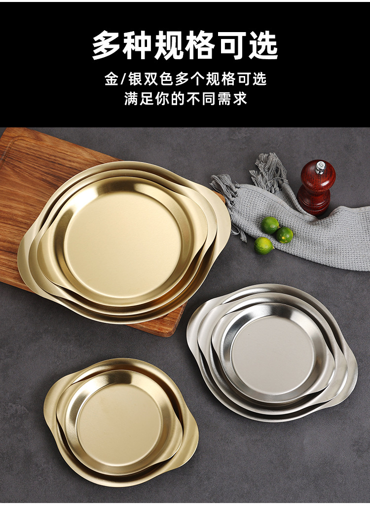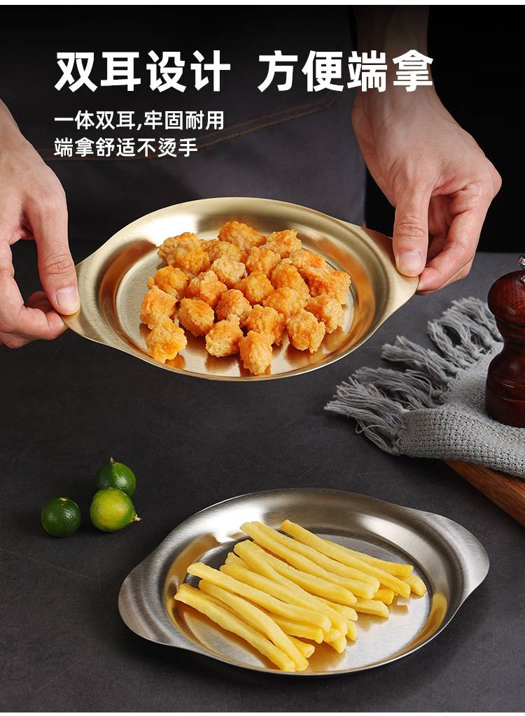 한국식 스테인레스 스틸 바이노럴 결합 된 파스타 플레이트 프라이드 치킨 스낵 플레이트 플랫 바닥 바베큐 딥 플레이트 바베큐 플레이트 바베큐 플레이트 트레이스토어 가기