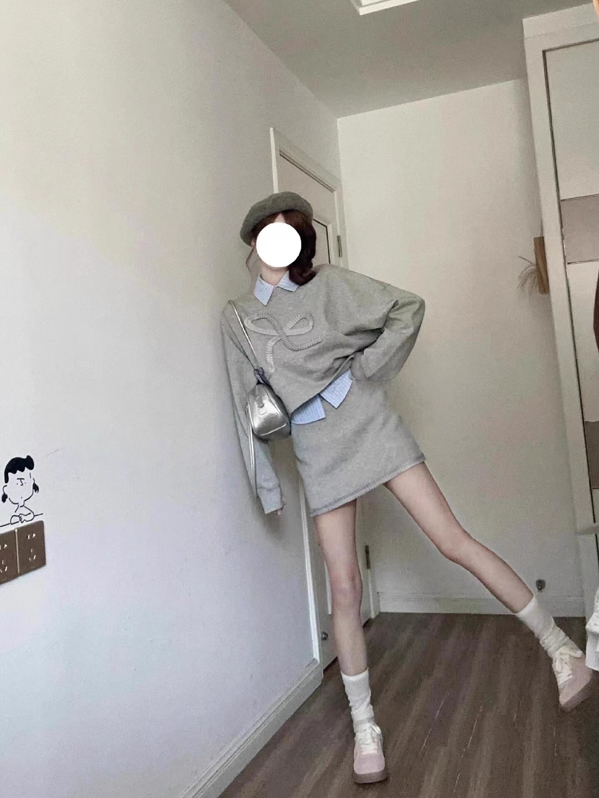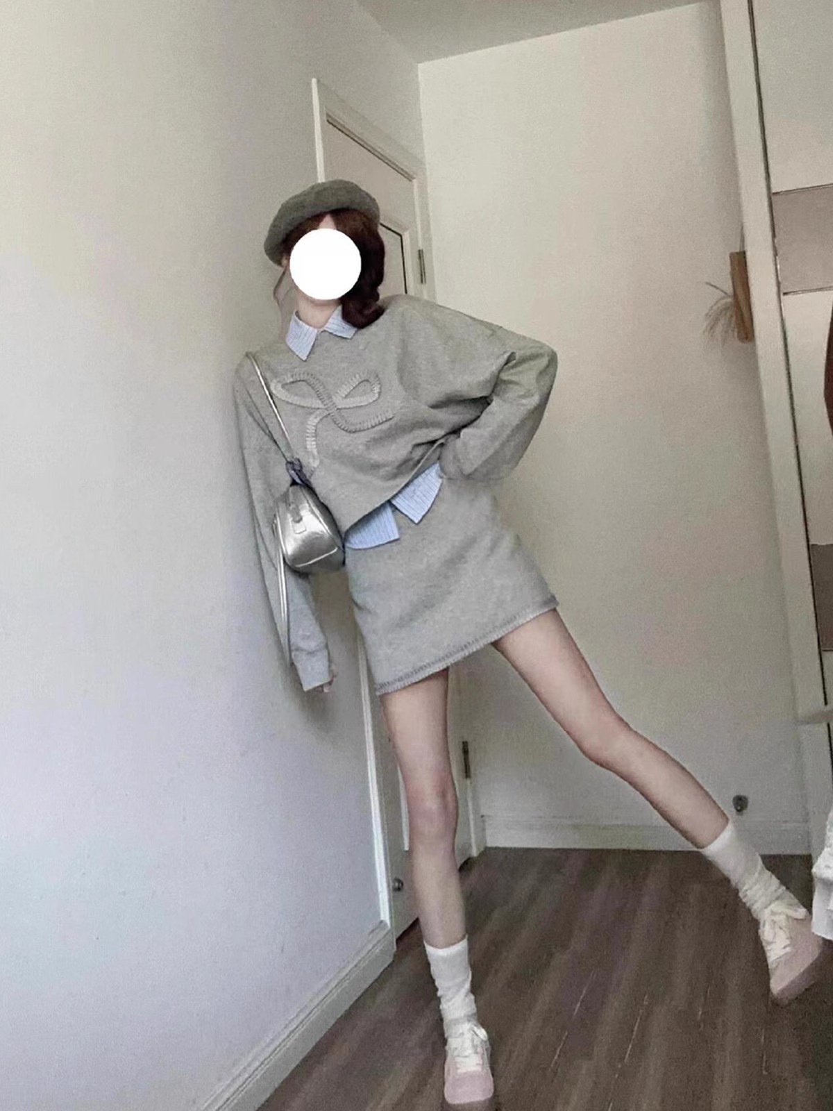 게으른 스타일 느슨한 긴팔 땀 세트 여성 가을 디자인 센스 힙 레이스 하프 길이 스커트 투피스 세트 여성 트렌디스토어 가기