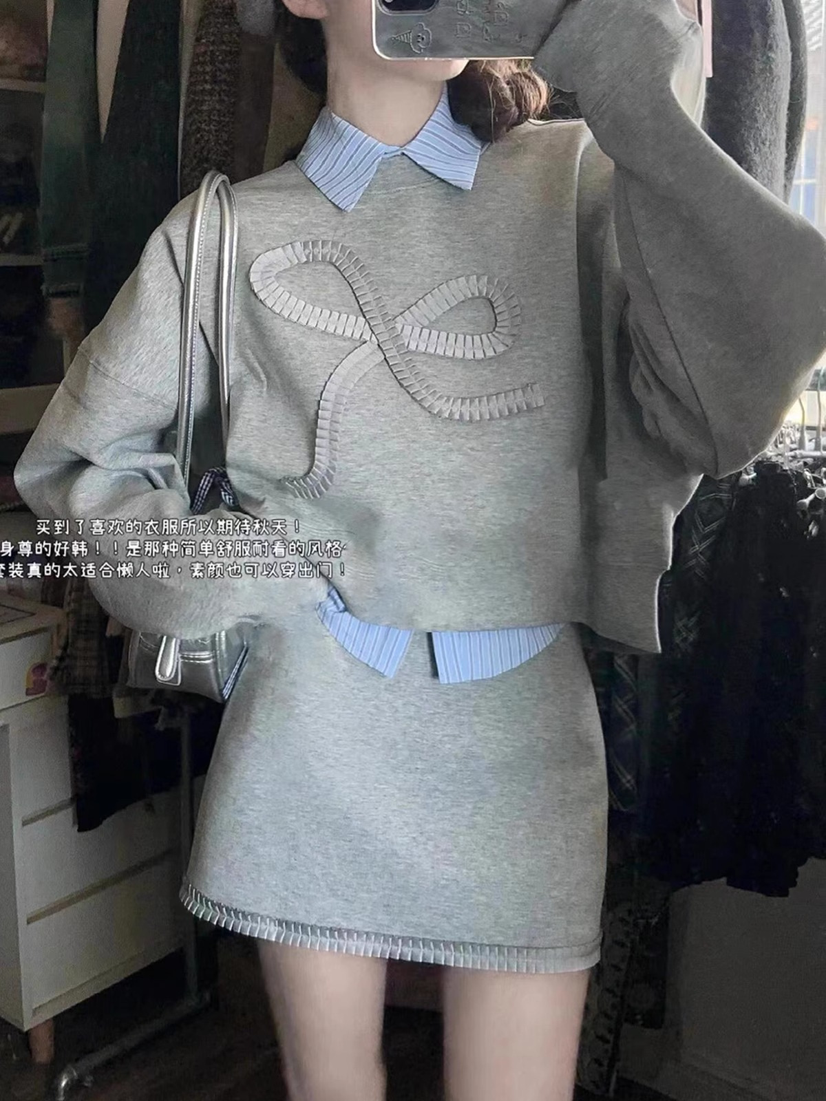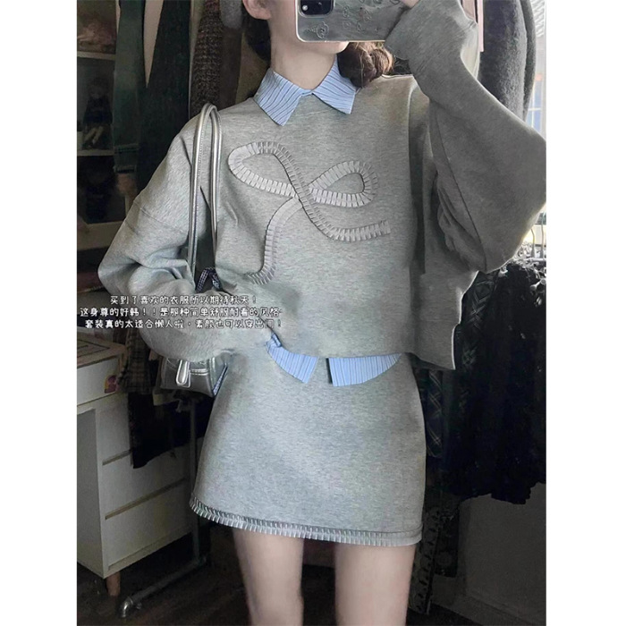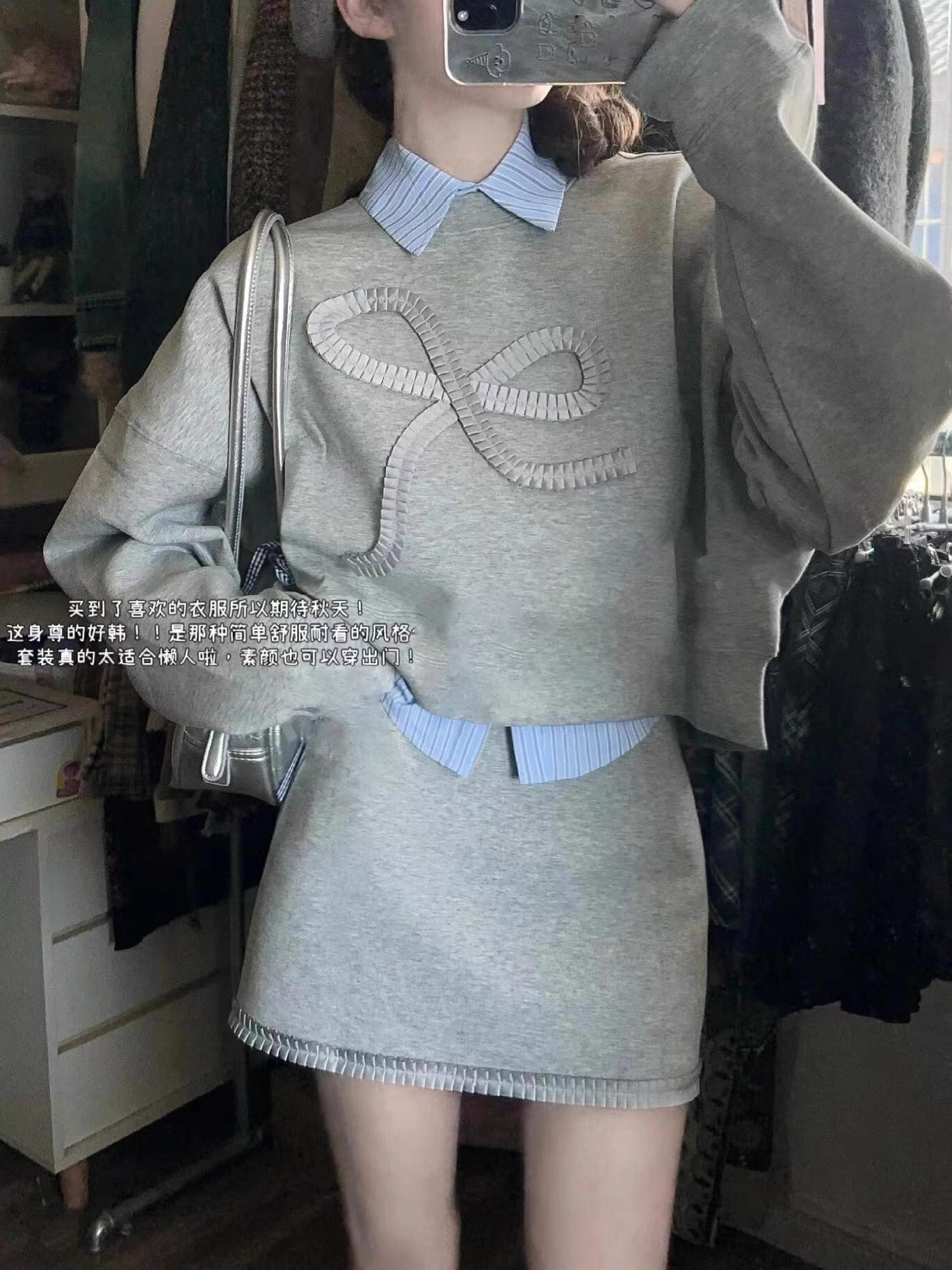 게으른 스타일 느슨한 긴팔 땀 세트 여성 가을 디자인 센스 힙 레이스 하프 길이 스커트 투피스 세트 여성 트렌디