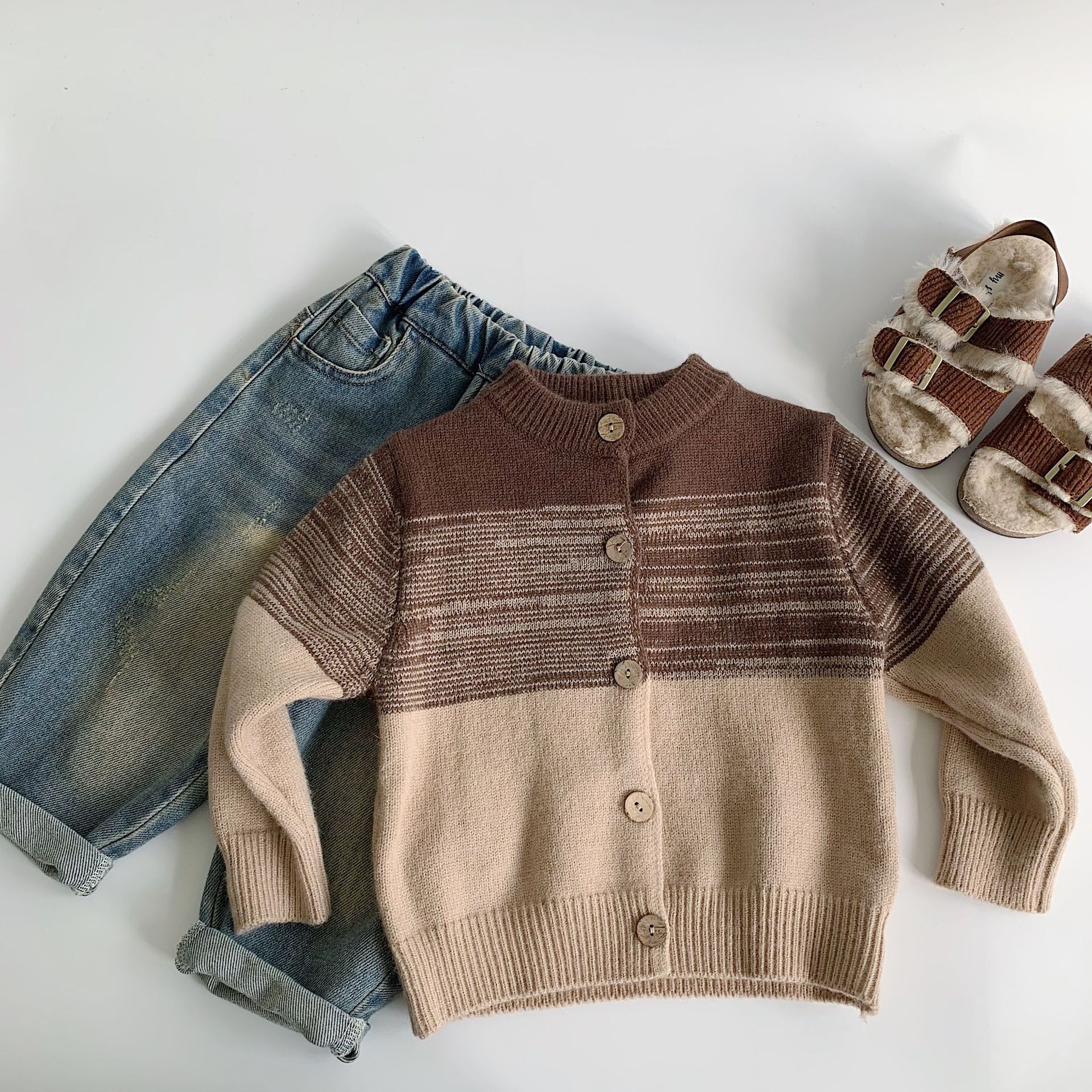 【재고정리, 반품불가 25위안】아동용 스웨터, 한국 스타일 라운드넥 니트웨어, 아동복, 가디건, 남아 여아용 코트스토어 가기