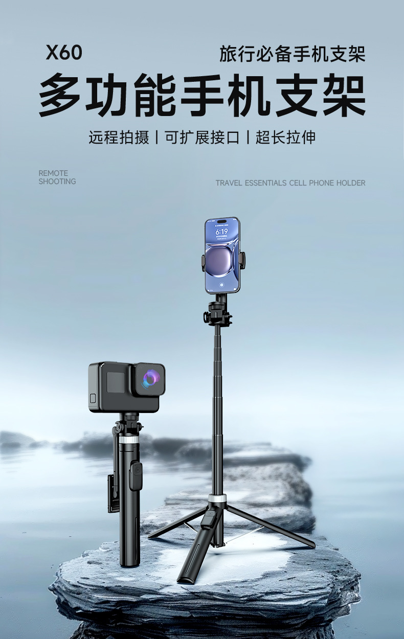 X60 휴대 전화 셀카 레버 착륙 1.8 미터 라이브 방송 브래킷 1/4 너트 주변 휴대 전화 카메라 안정 브래킷에 연결