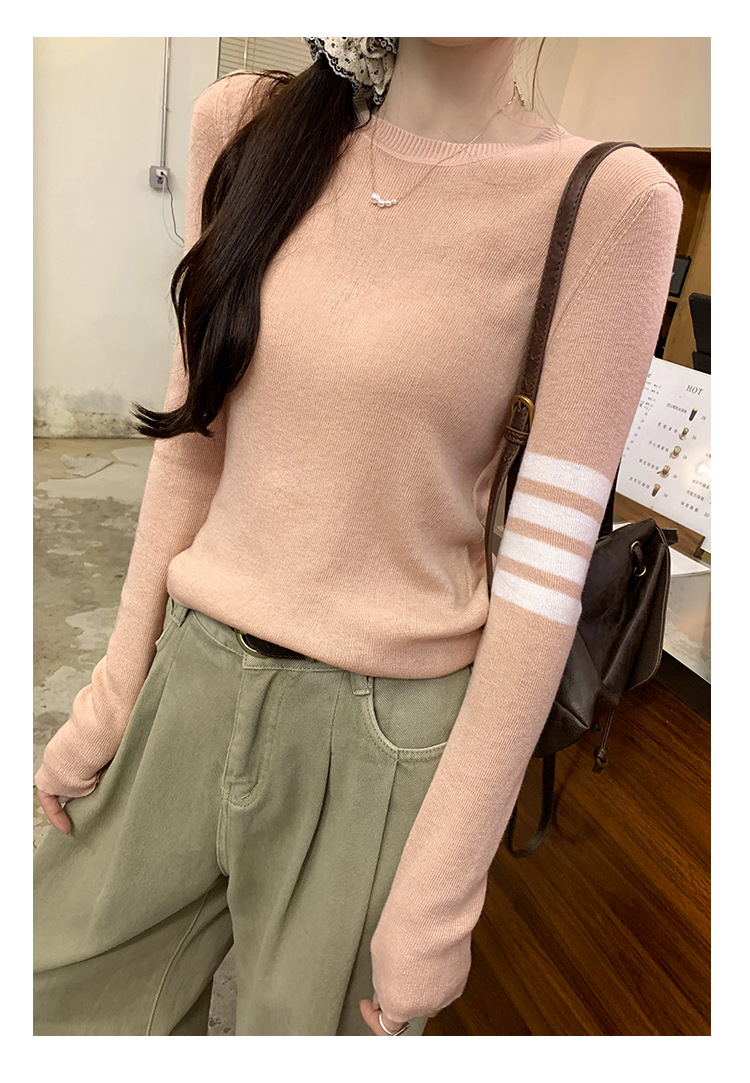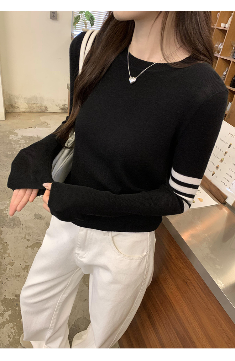 라운드 넥 컬러 매칭 스트라이프 긴 소매 풀오버 스웨터 여성의 2024 가을과 겨울 새로운 한국 대학 스타일 편안한 탑