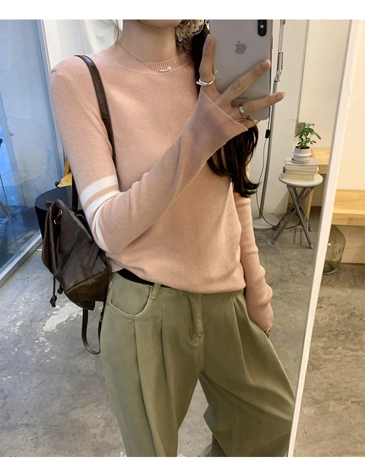 라운드 넥 컬러 매칭 스트라이프 긴 소매 풀오버 스웨터 여성의 2024 가을과 겨울 새로운 한국 대학 스타일 편안한 탑스토어 가기