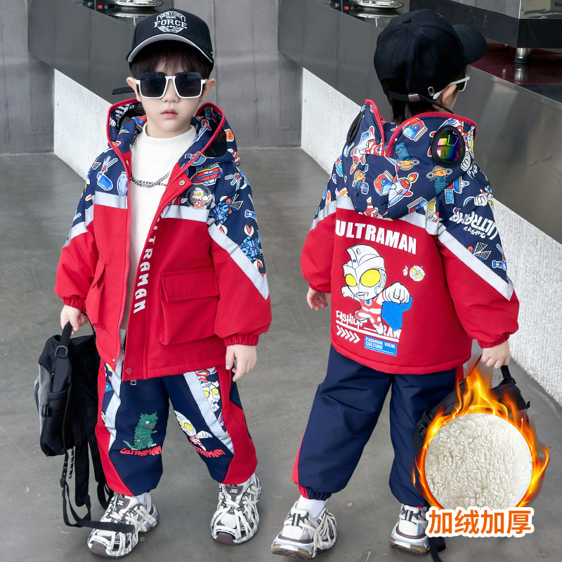 울트라맨 남아용 플리스 세트 2025 신상 멋진 겨울 아동 재킷 남아 의류 가을 겨울 패션스토어 가기