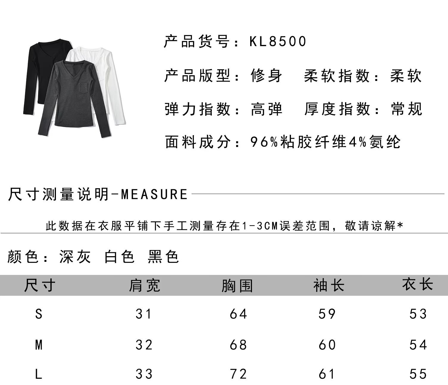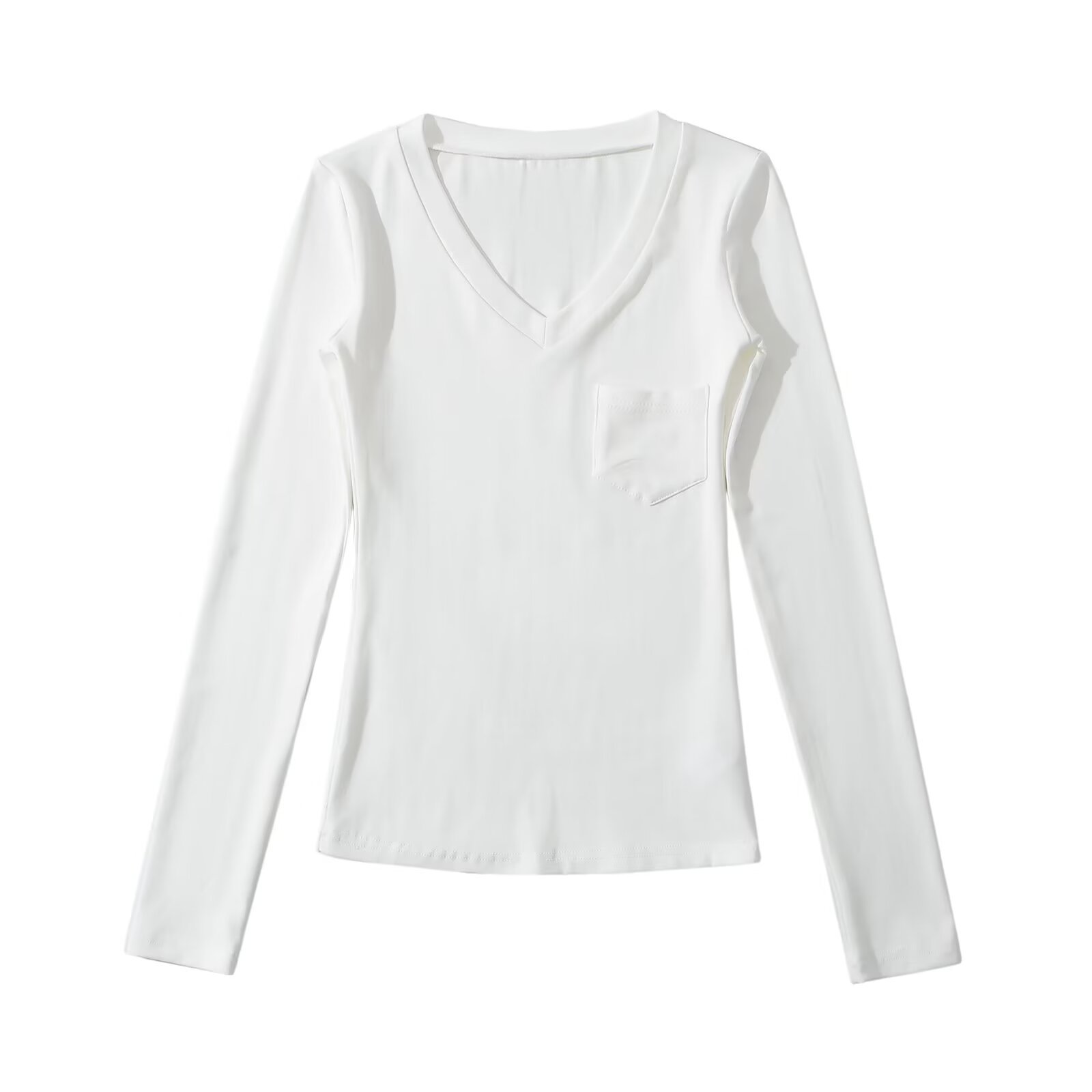 유럽과 미국의 순수한 욕망 스타일 가을 V-넥 긴팔 솔리드 컬러 코튼 타이트 티셔츠 가을과 겨울베이스 셔츠 슬림 룩 올 매치 탑스토어 가기