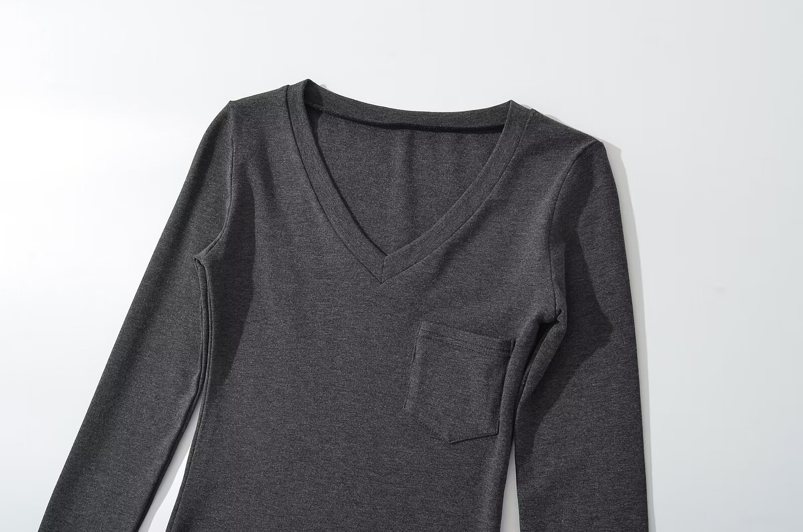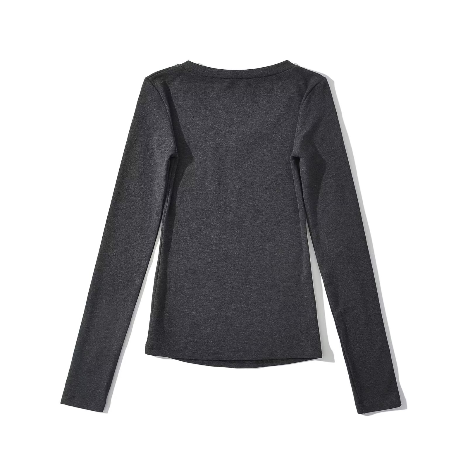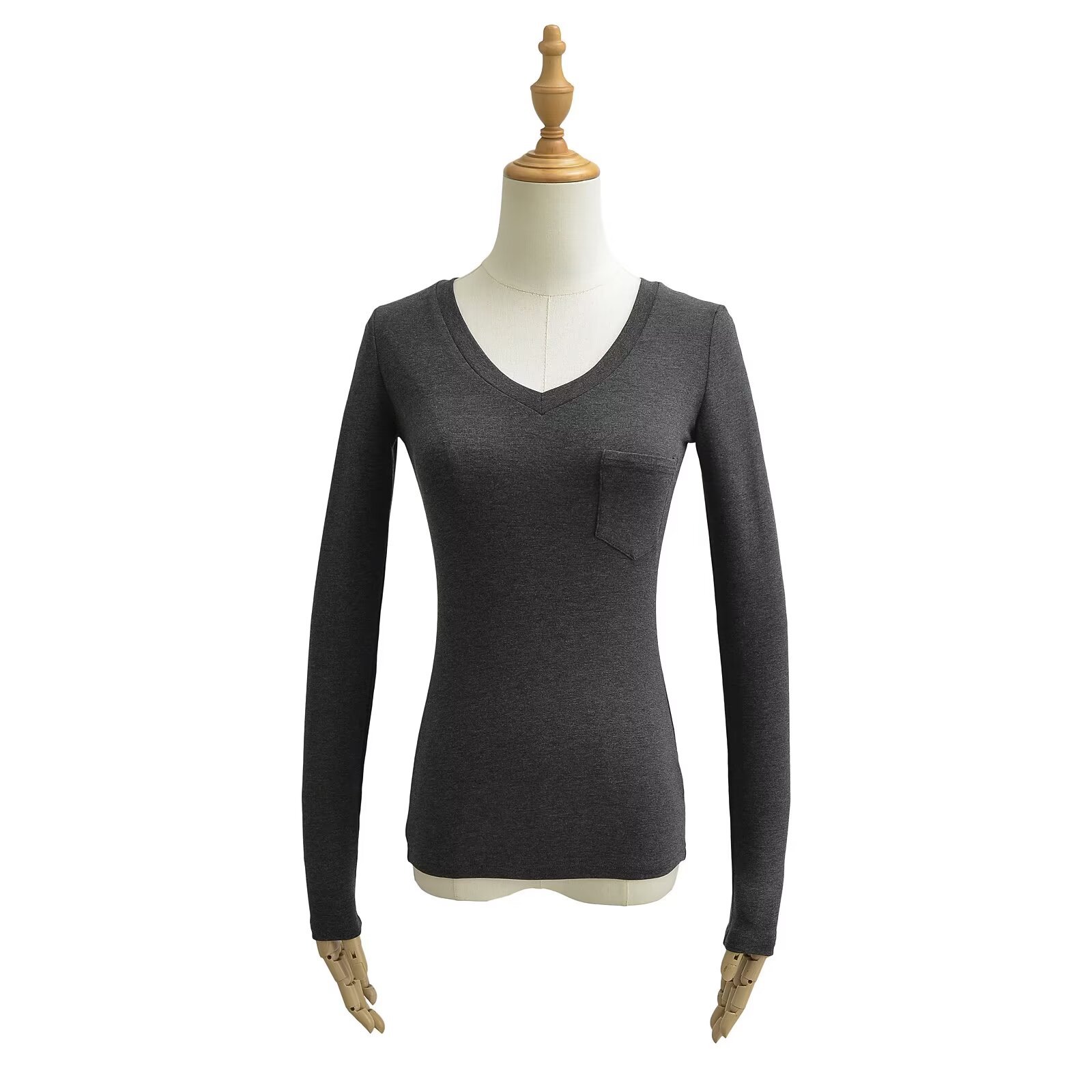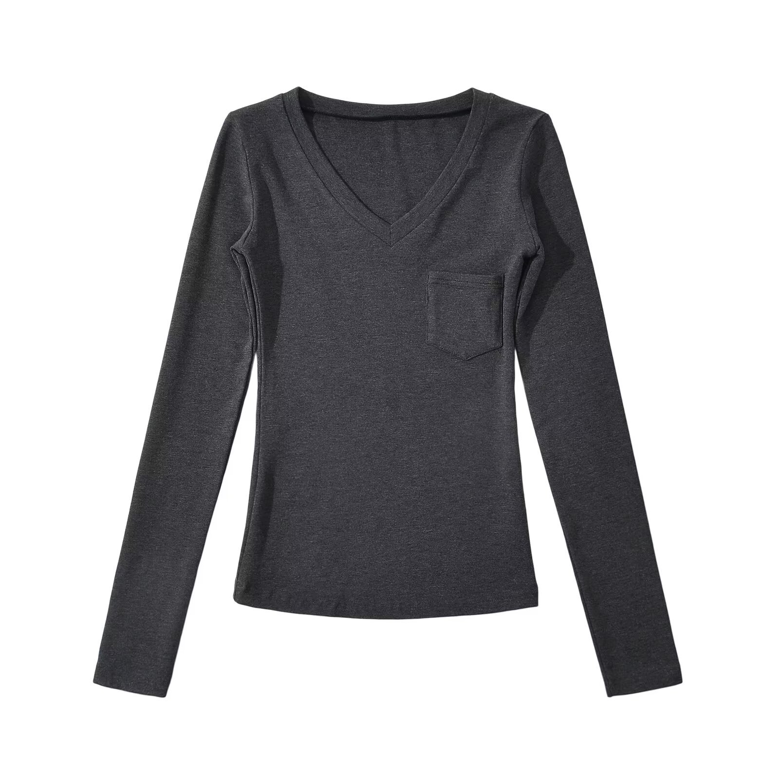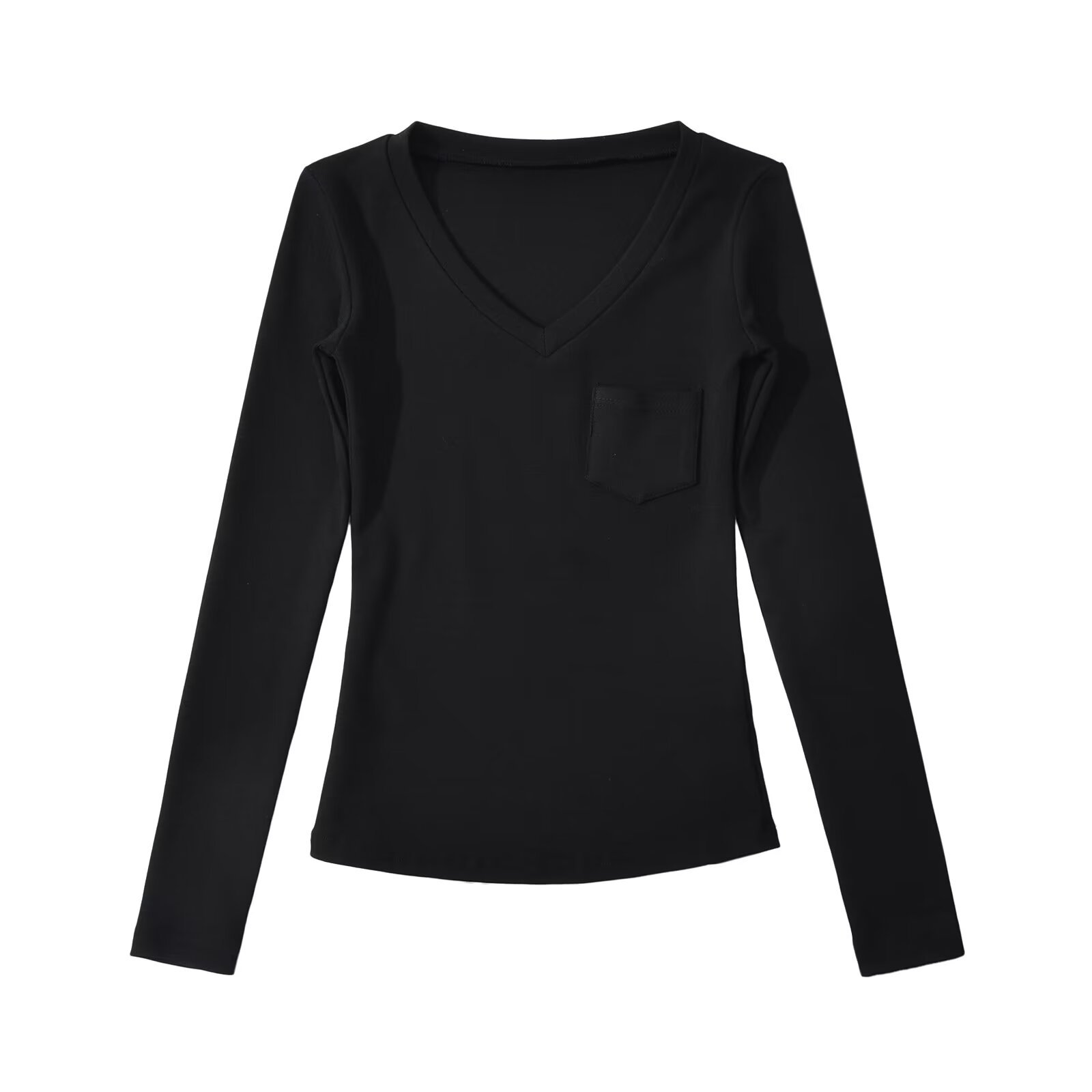 유럽과 미국의 순수한 욕망 스타일 가을 V-넥 긴팔 솔리드 컬러 코튼 타이트 티셔츠 가을과 겨울베이스 셔츠 슬림 룩 올 매치 탑