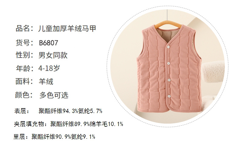어린이와 소녀를위한 새로운 어린이 면화 조끼 소년 양모 면화 조끼 중학교 유니폼 유물 겨울 따뜻한 Ware스토어 가기