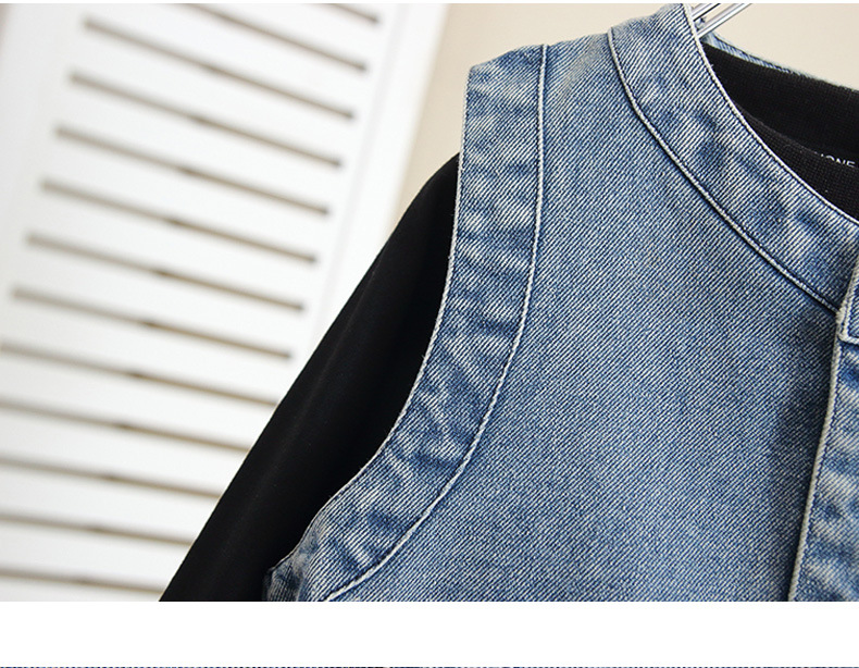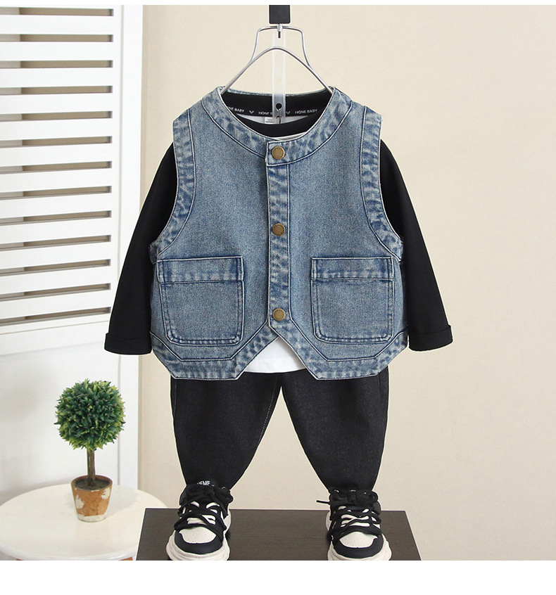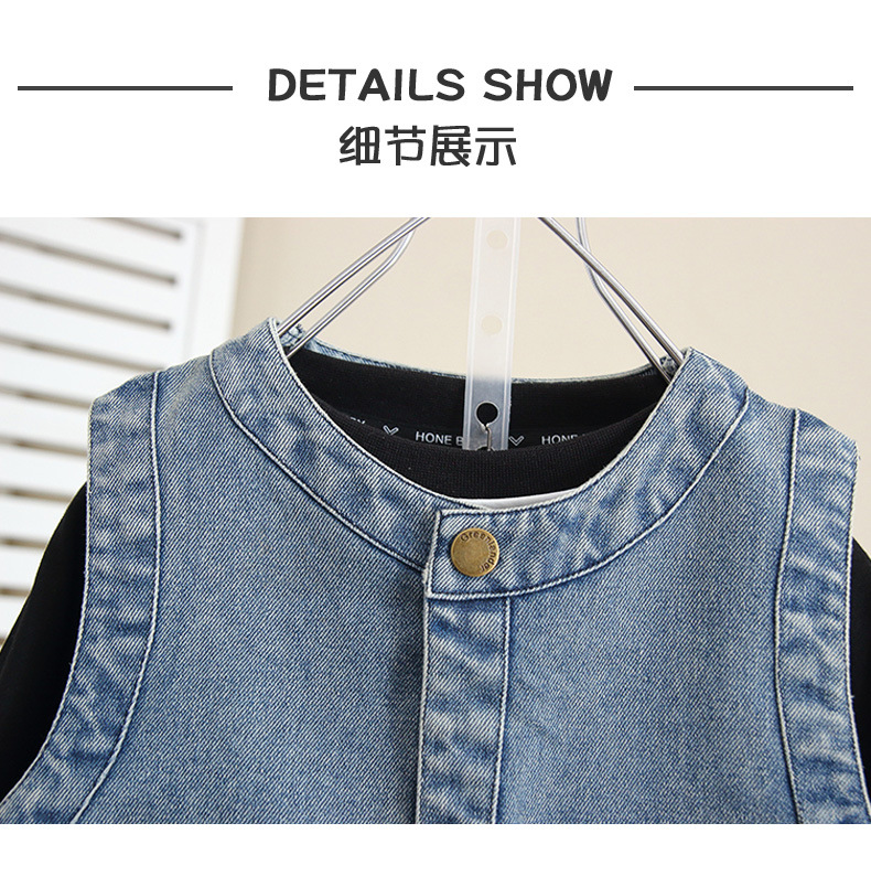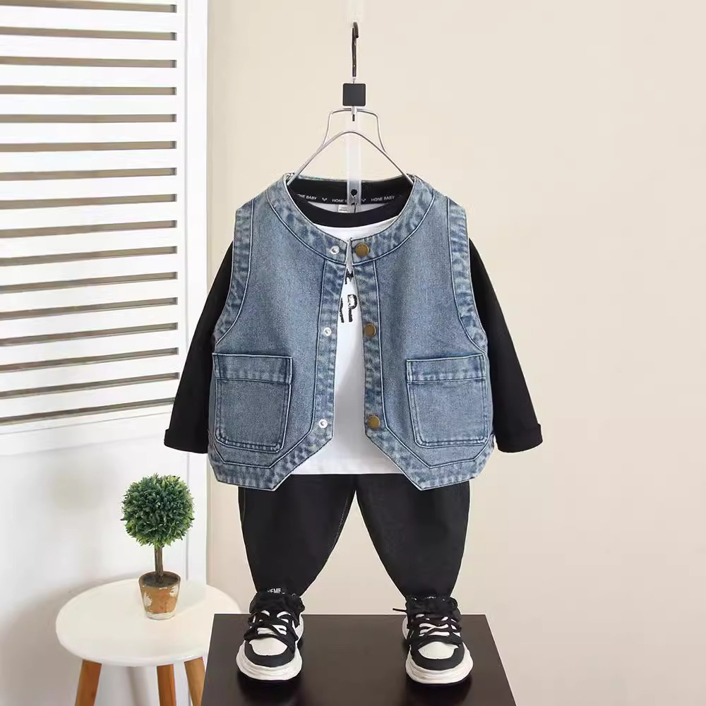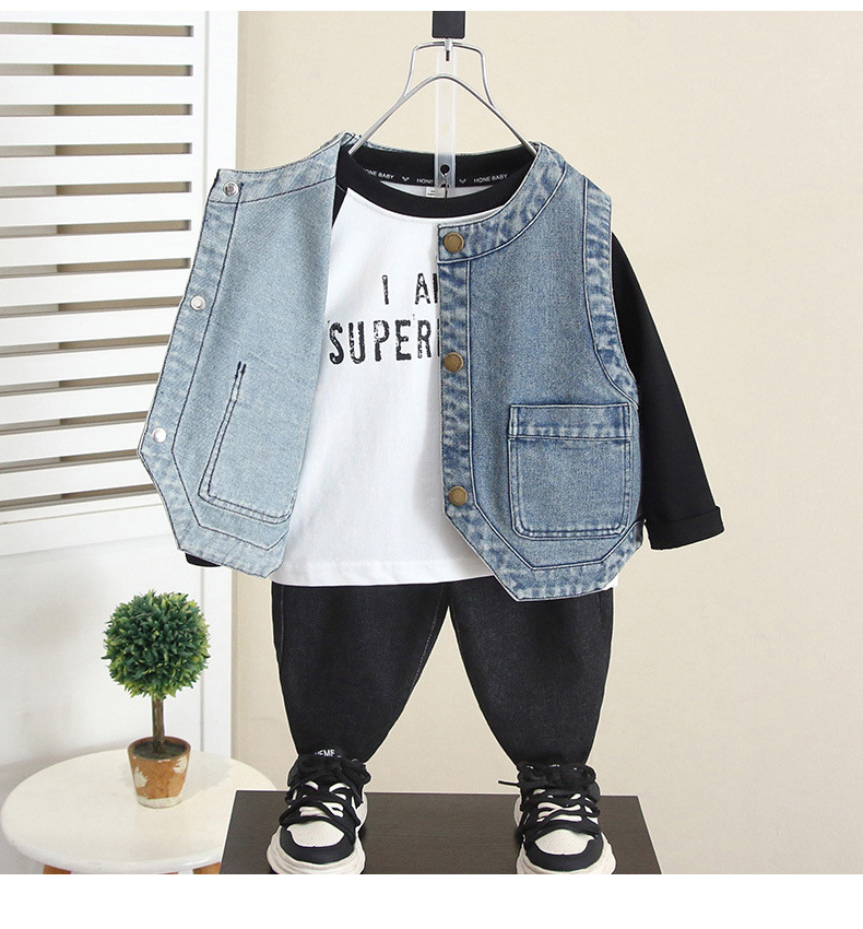 6260 소년 데님 조끼 봄과 가을 2024 새로운 어린이 유행 잘 생긴 외부 조끼 아기 가을 탑 착용