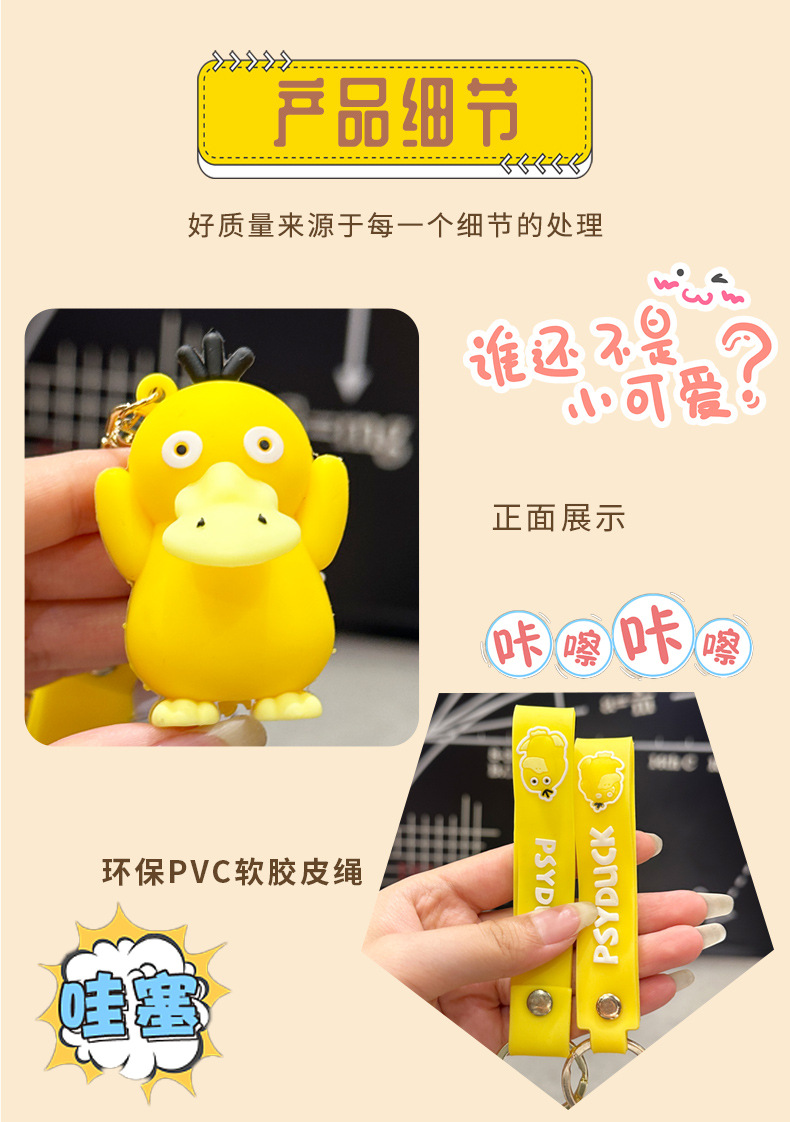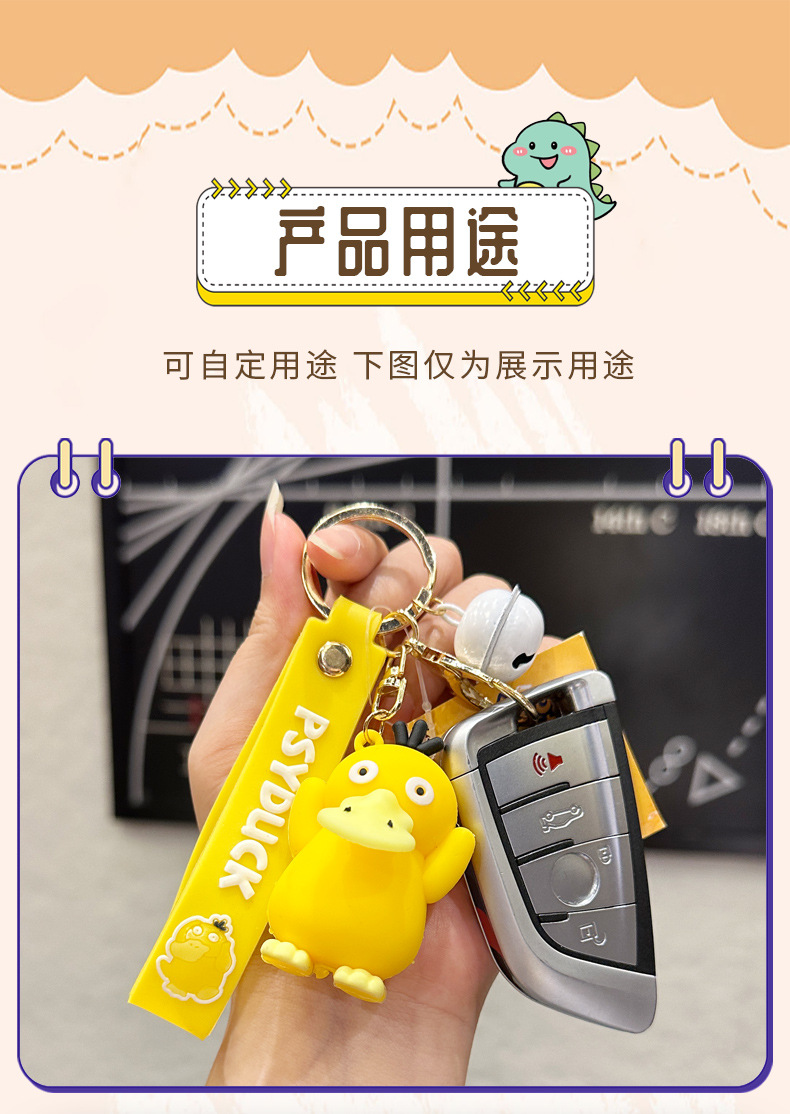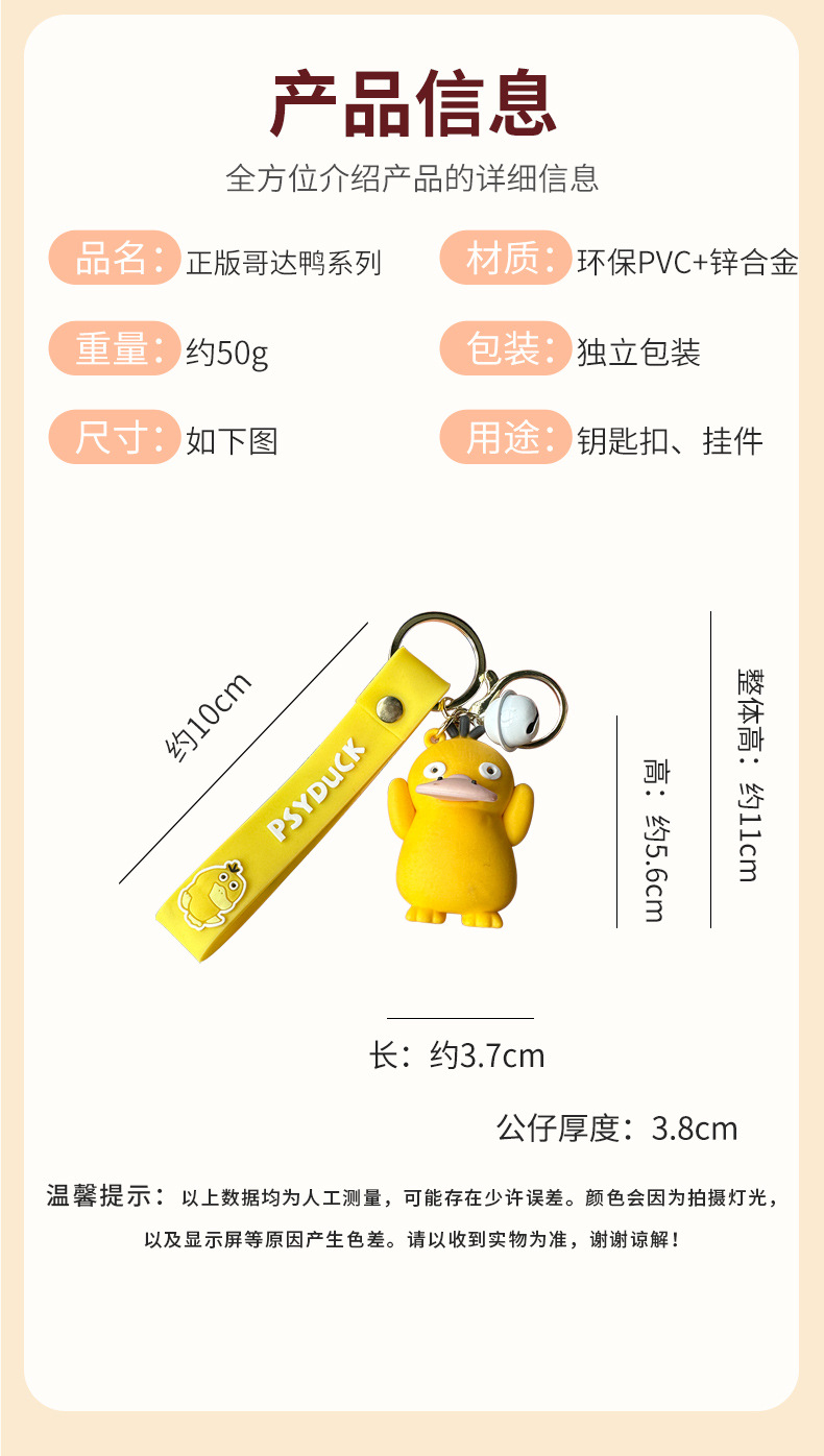정품 인터넷 인기있는 귀여운 노란 오리 창조적 인 PVC 3 차원 만화 커플 자동차 키 체인 학생 가방 펜던트