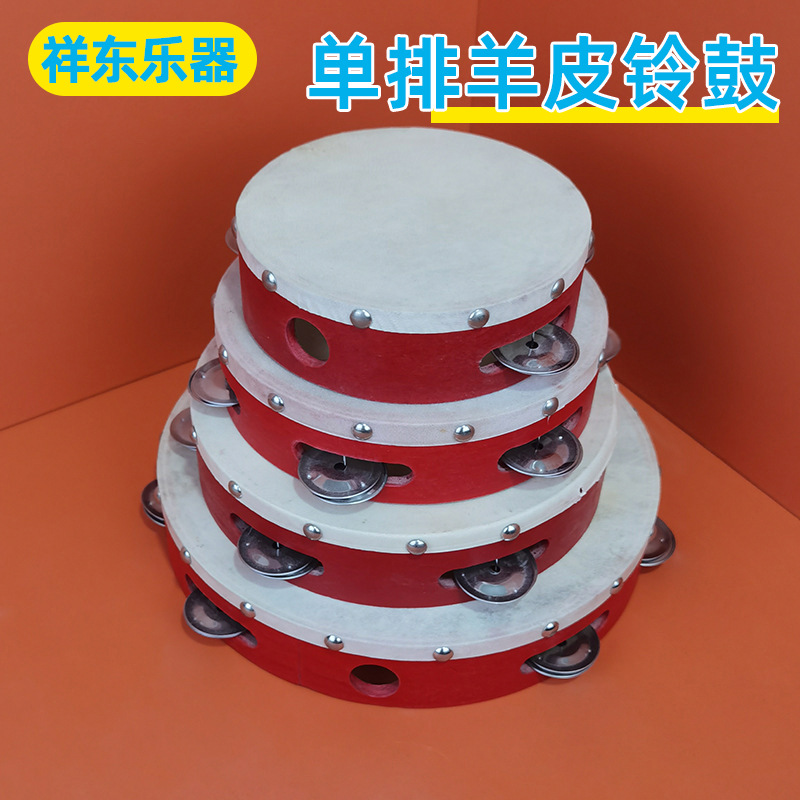 양가죽 버블 네일 탬버린 4-10 인치 레드 탬버린 오르프 악기 어린이 음악 교육 지원 싱글 행 탬버린스토어 가기