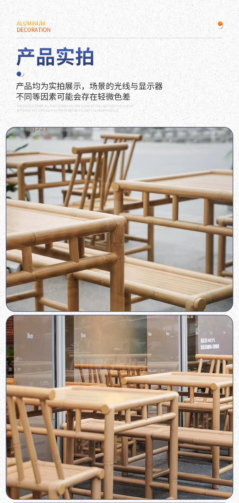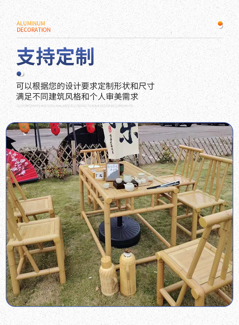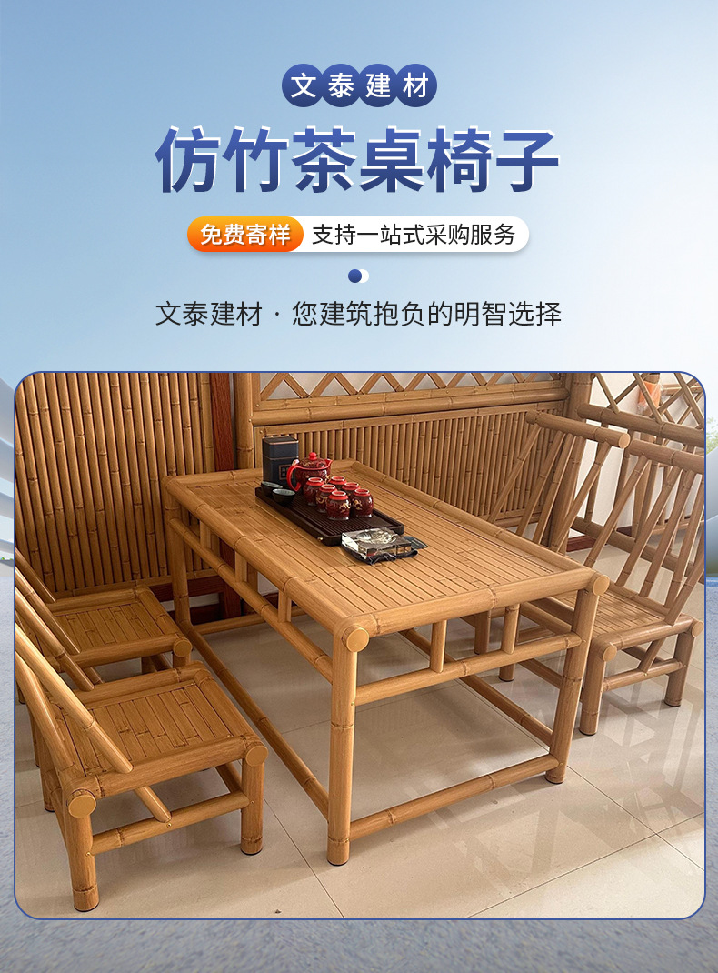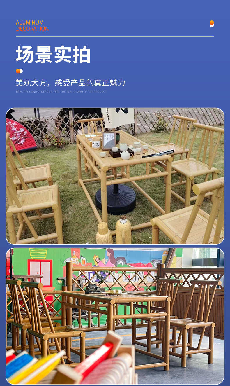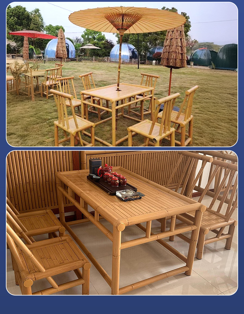 야외 사각 테이블 차 테이블 대나무 가구 레트로 정원 대나무 테이블과 의자 세트 대나무 의자 구식 대나무 테이블스토어 가기