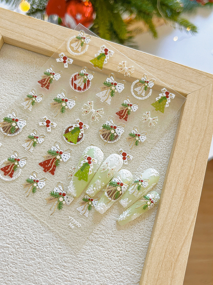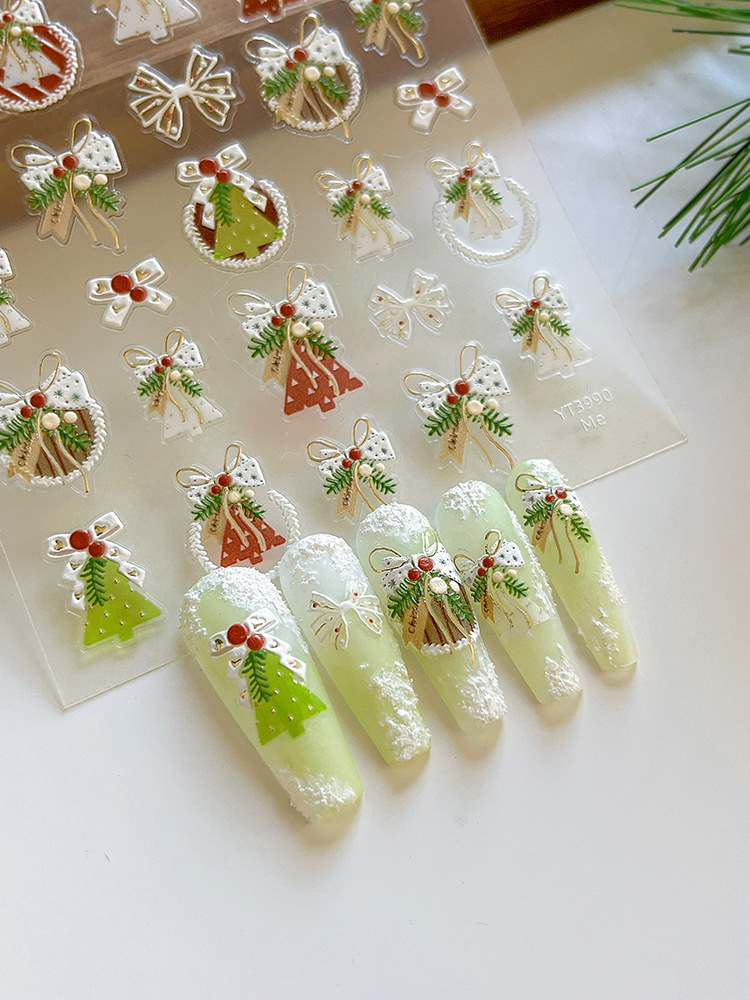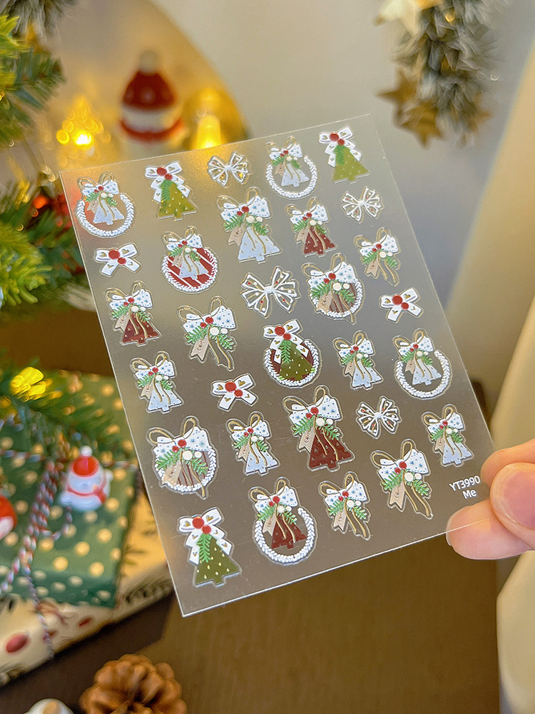 YITU 개미 그림 크리스마스 시리즈 화환 벨 네일 아트 스티커 스테레오 구호 크리스마스 트리 네일 장식 YT3990